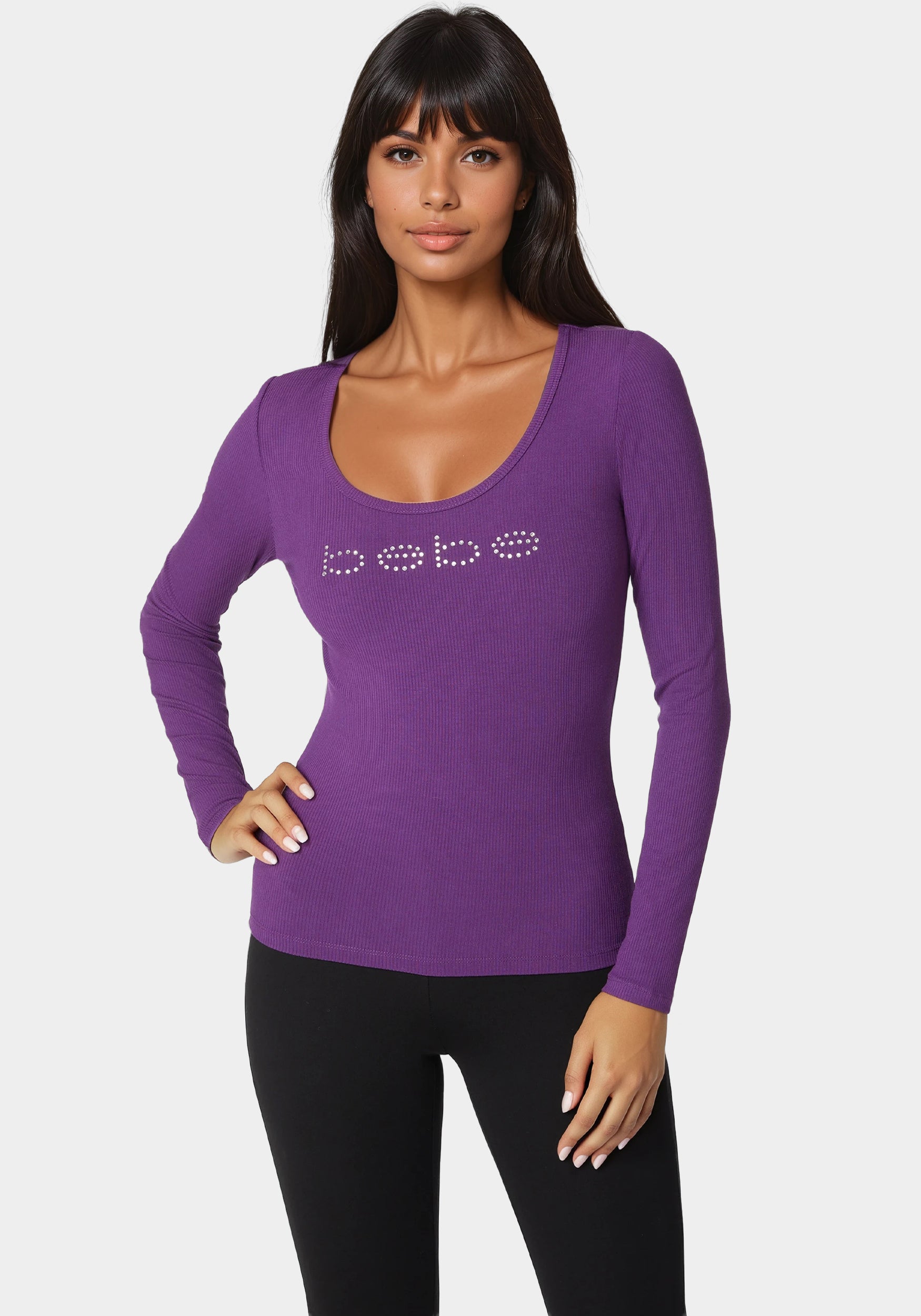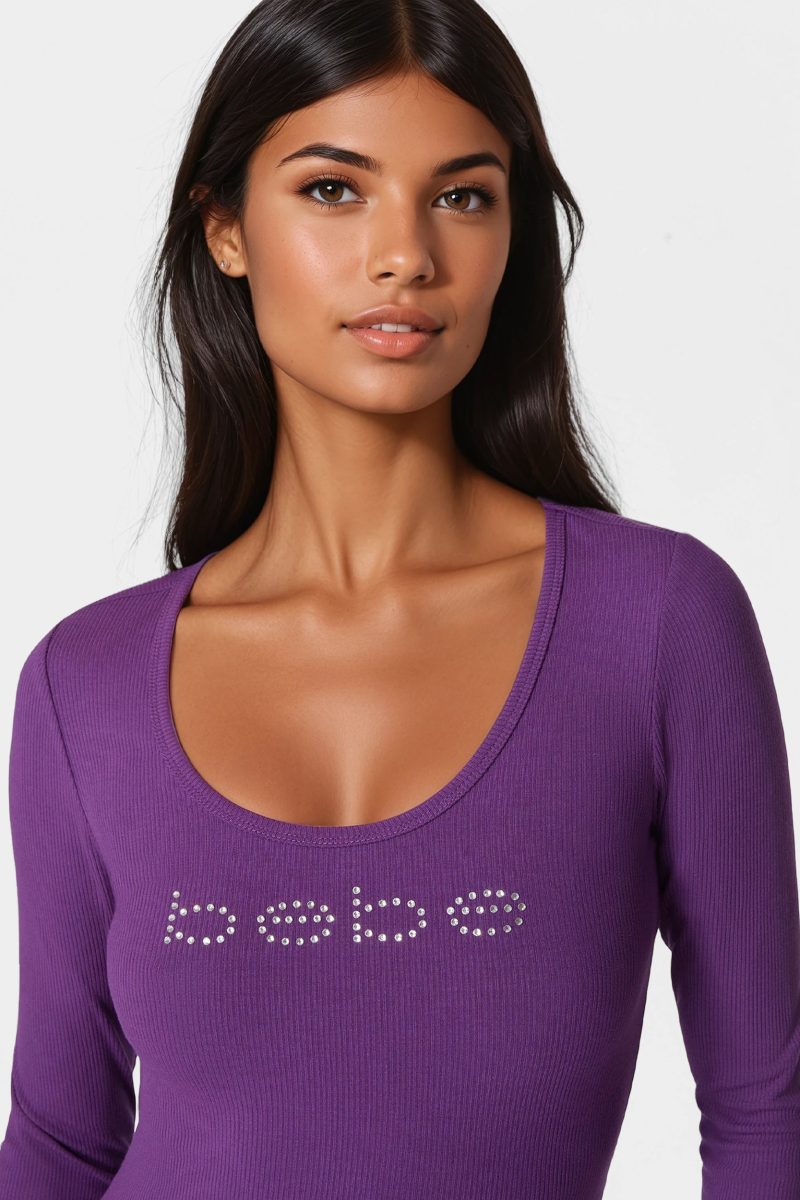 Be the first to review “Bebe Logo Long Sleeve Scoop Neck Single Stone Rib Top” Cancel reply