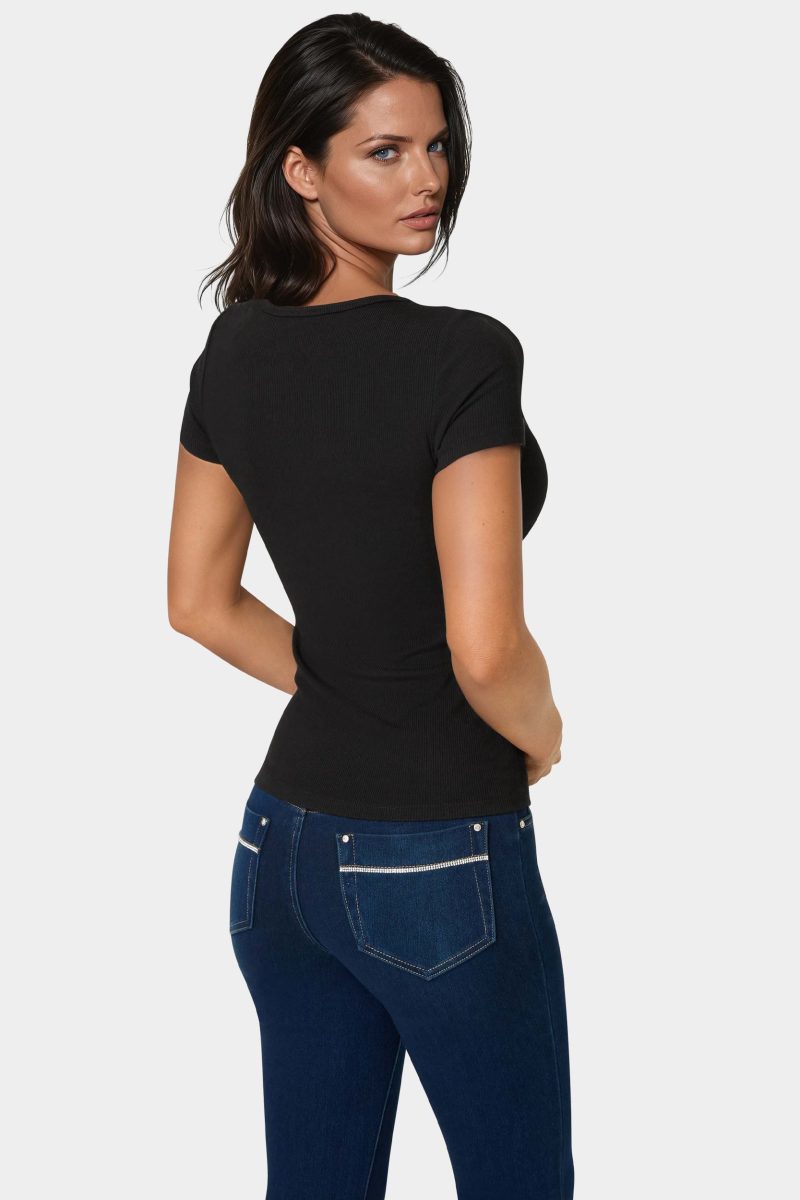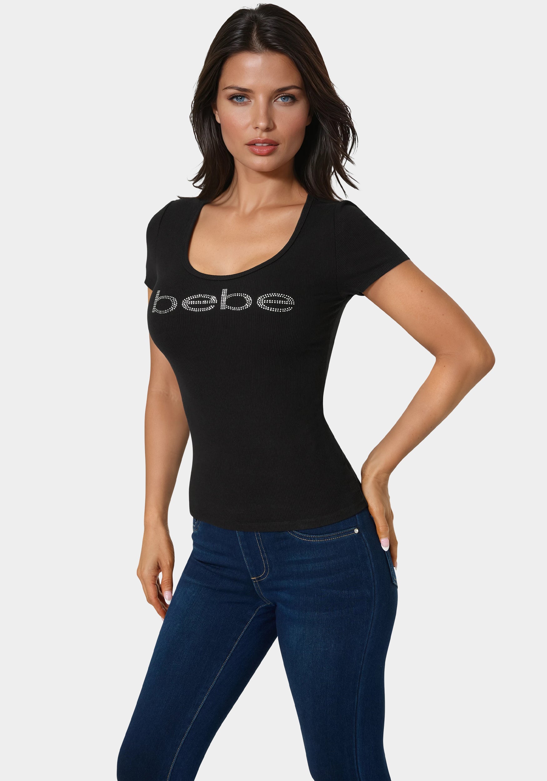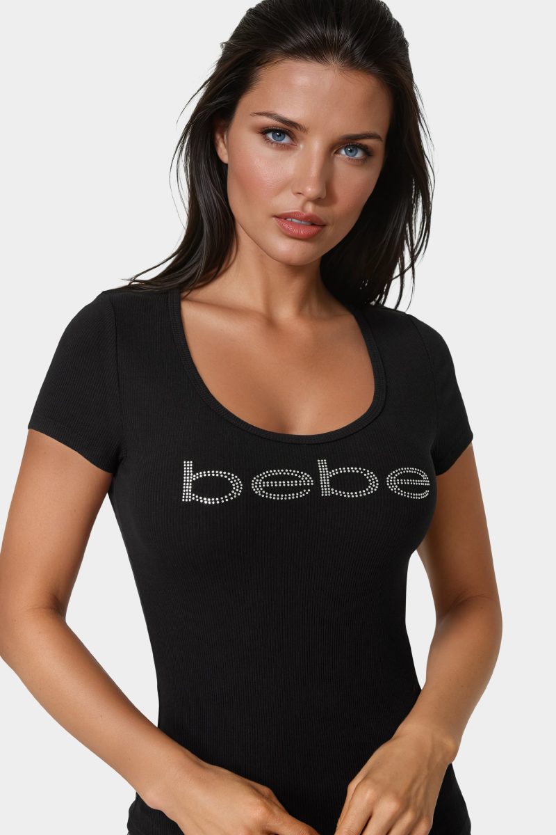 Bebe Logo Short Sleeve Round Neck Rib Top