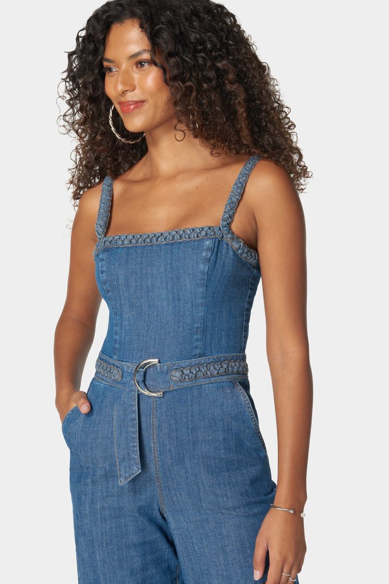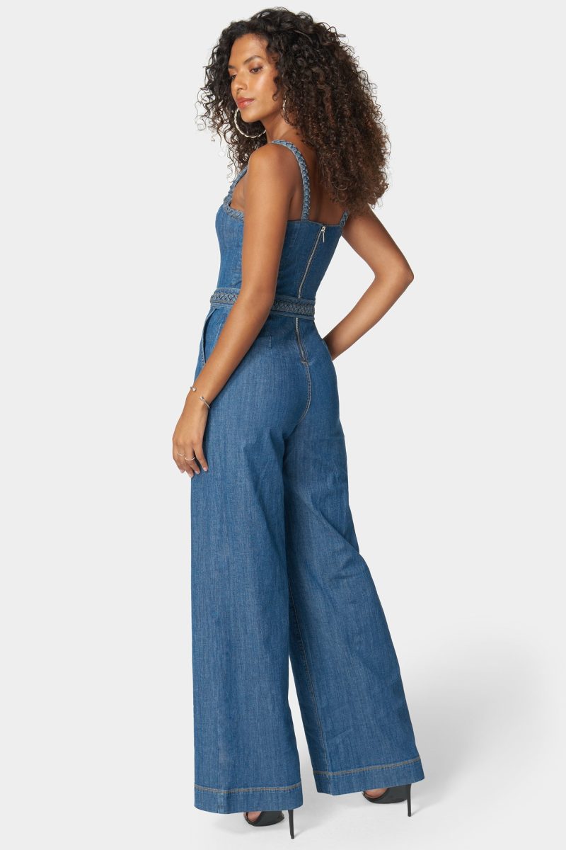 Braided Detail Ultra Wide Leg Denim Jumpsuit