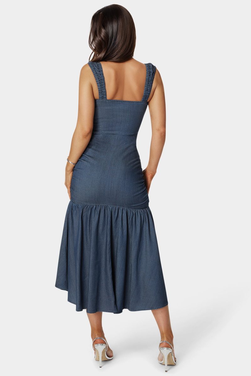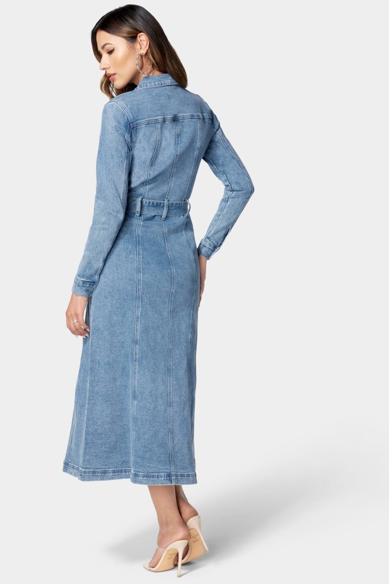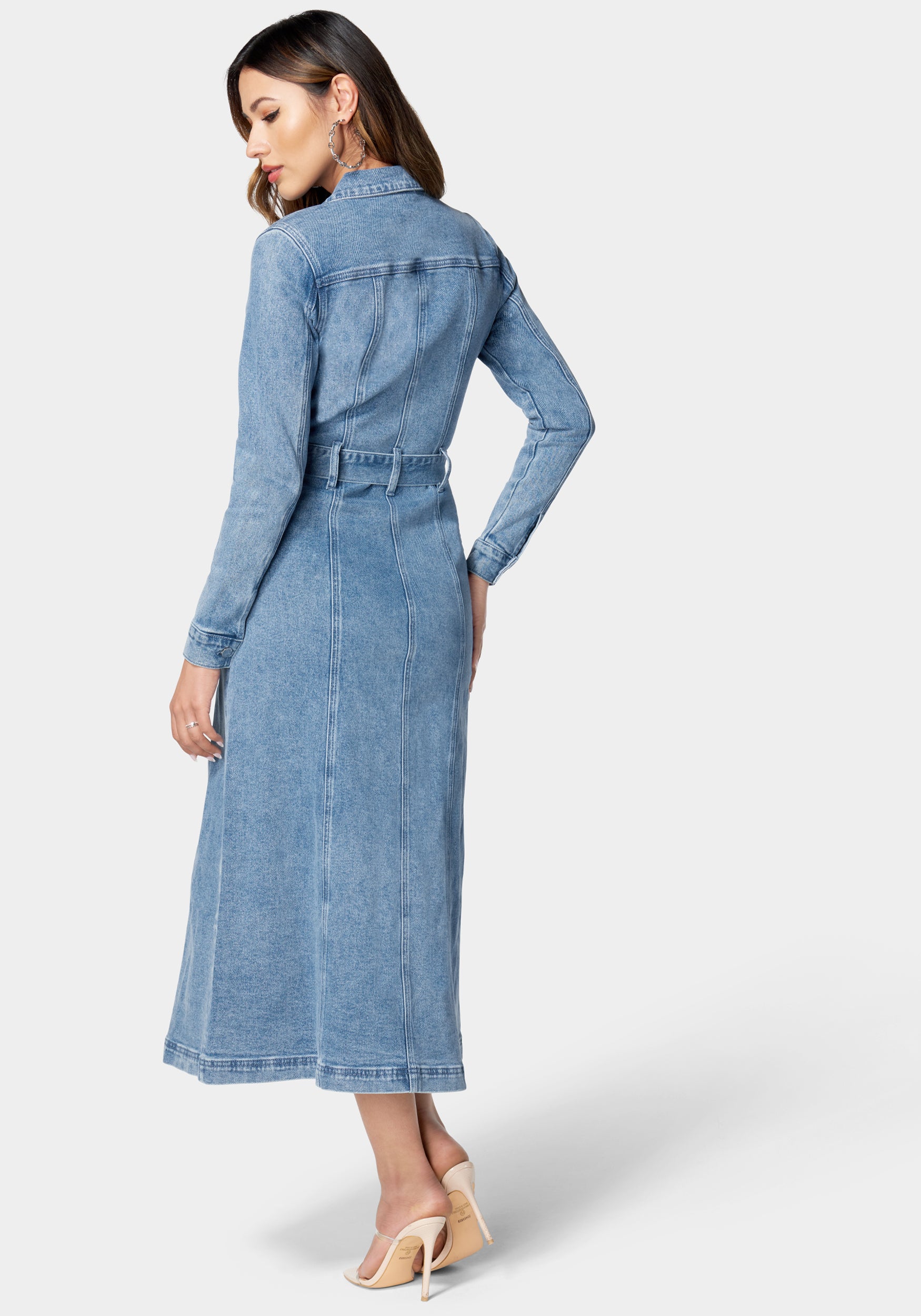 Upgrade your seasonal wardrobe with our heritage denim button down long dress. Ideal for summer and fall. this transitional piece features a flattering silhouette and ultra versatile daytime look. effortlessly complementing any style.