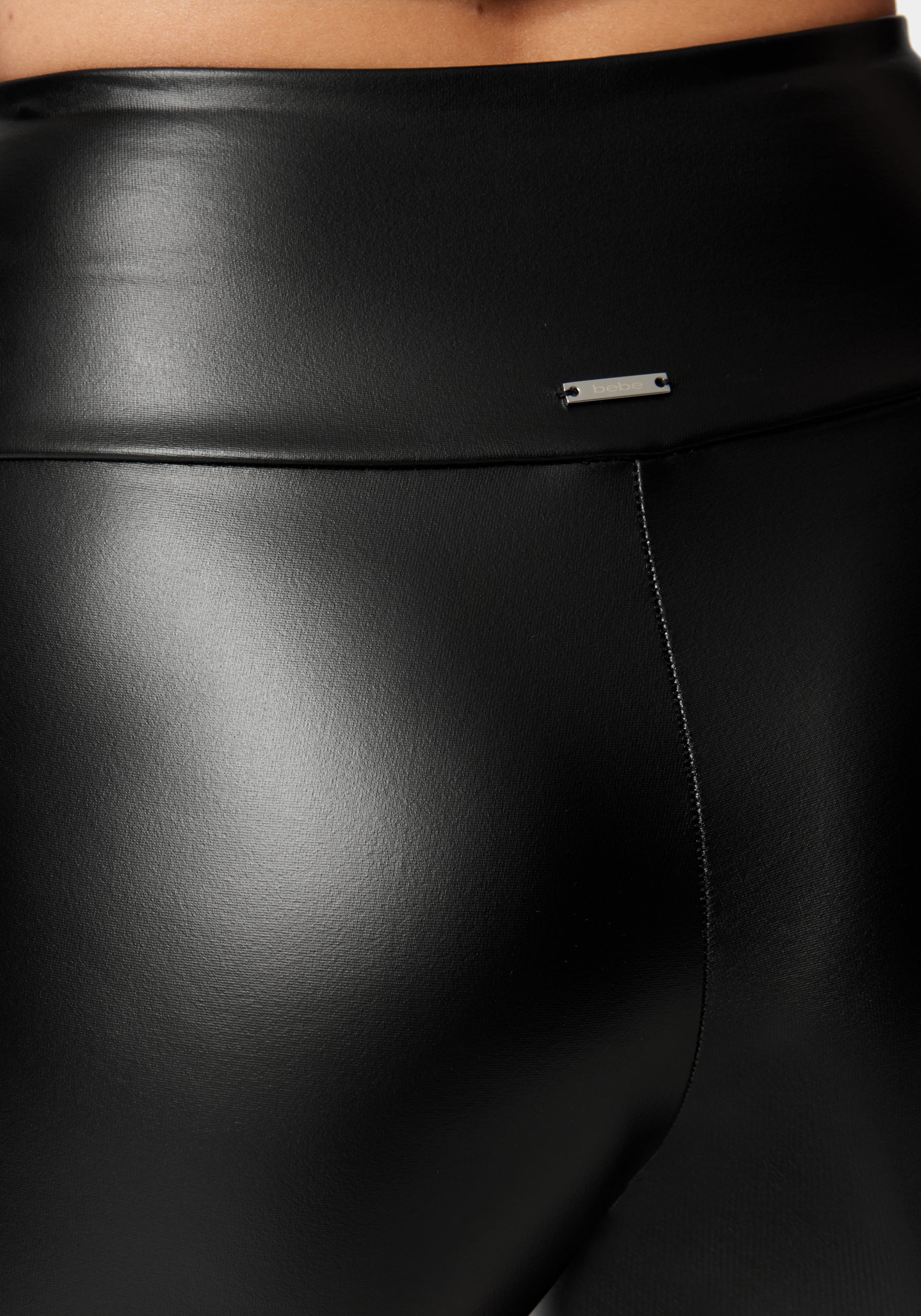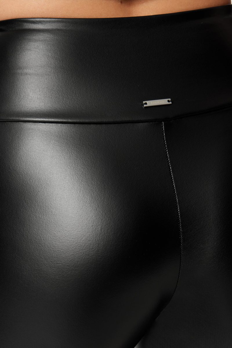 This vinyl-coated knit biker short offers endless sultry appeal its shiny finish. smoothing waistband. and curve-hugging fit. Pair with the matching Coated Knit Ruffle Sleeve Top for a fun. casual look.