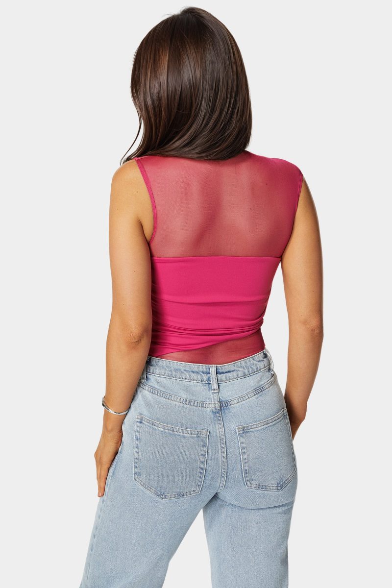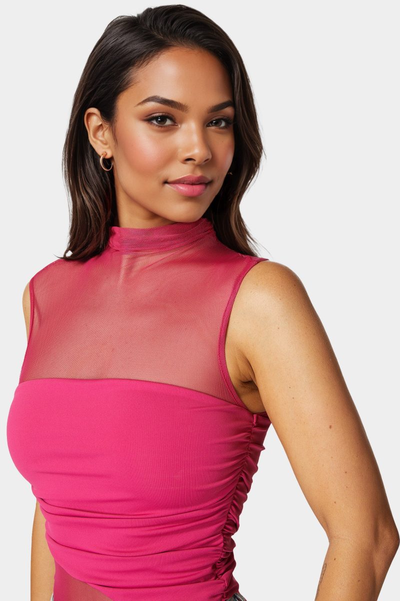Barely-there mesh and bold color make this bodysuit a statement from every angle. It’s sultry. sculpted. and ready for whatever the night brings.