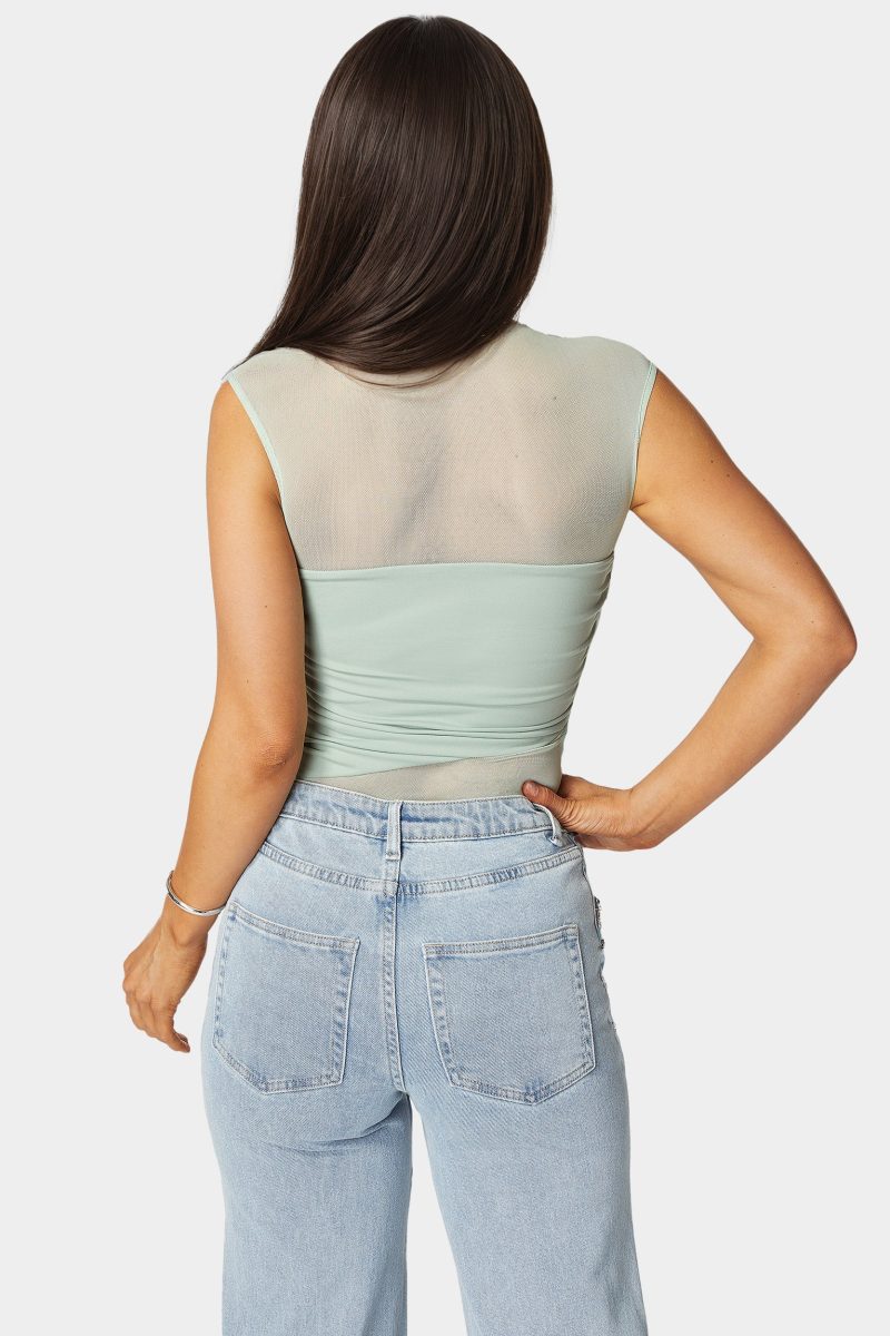 Barely-there mesh and bold color make this bodysuit a statement from every angle. Itís sultry. sculpted. and ready for whatever the night brings.