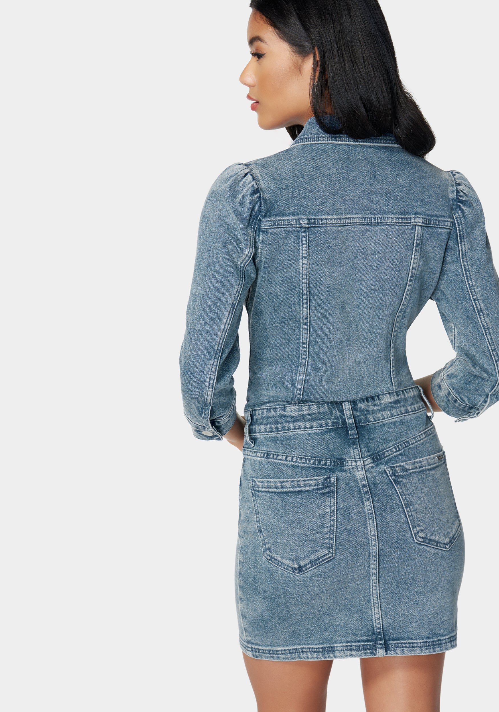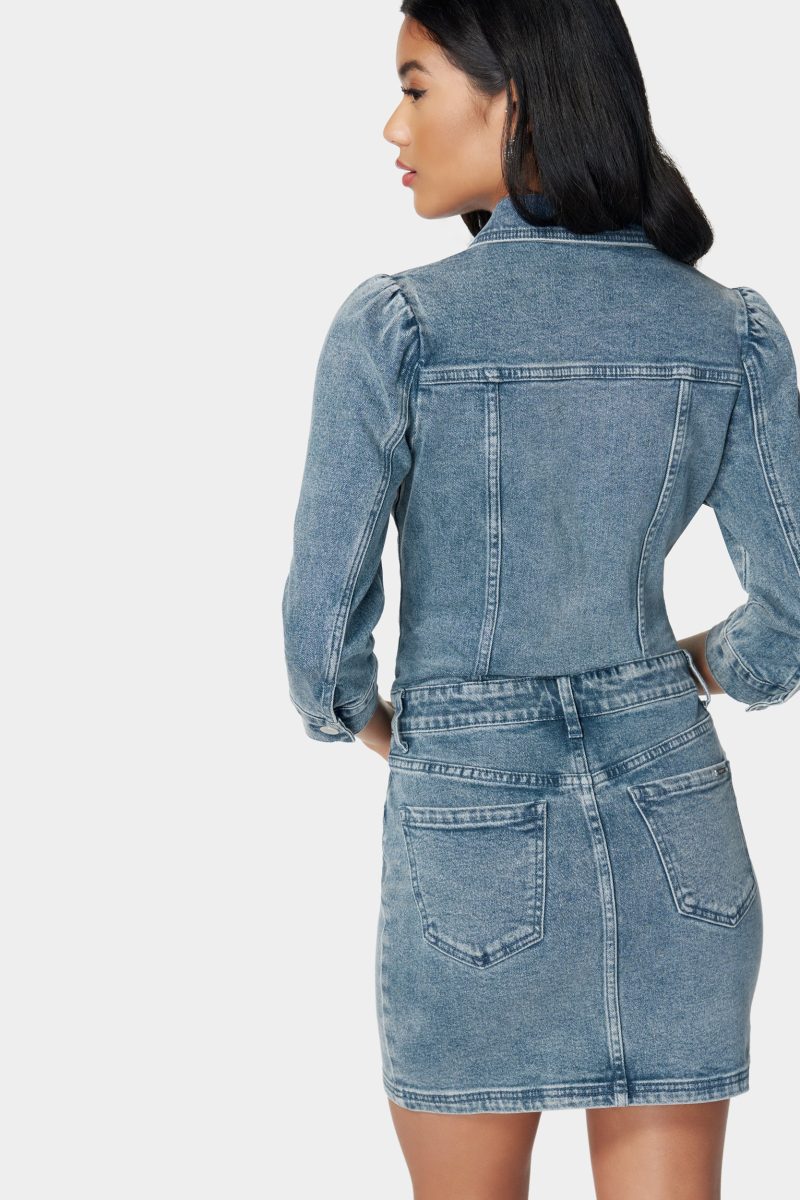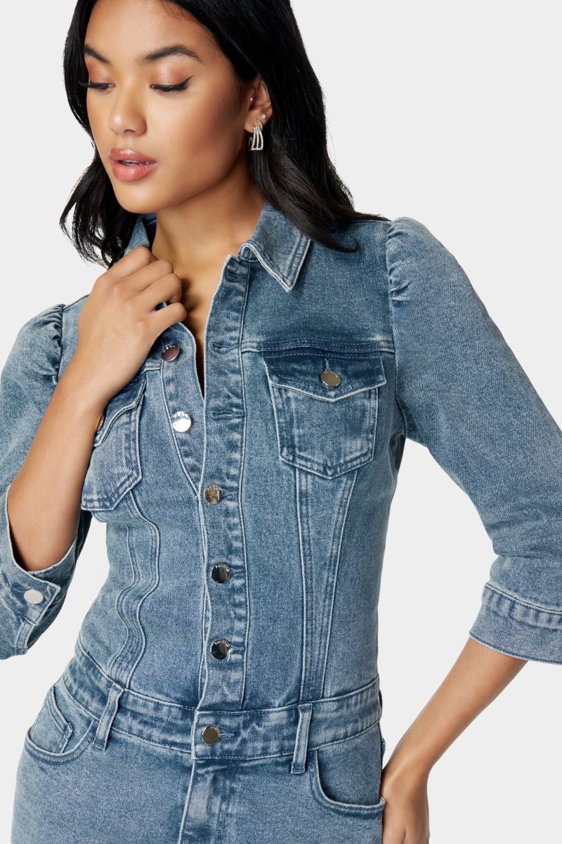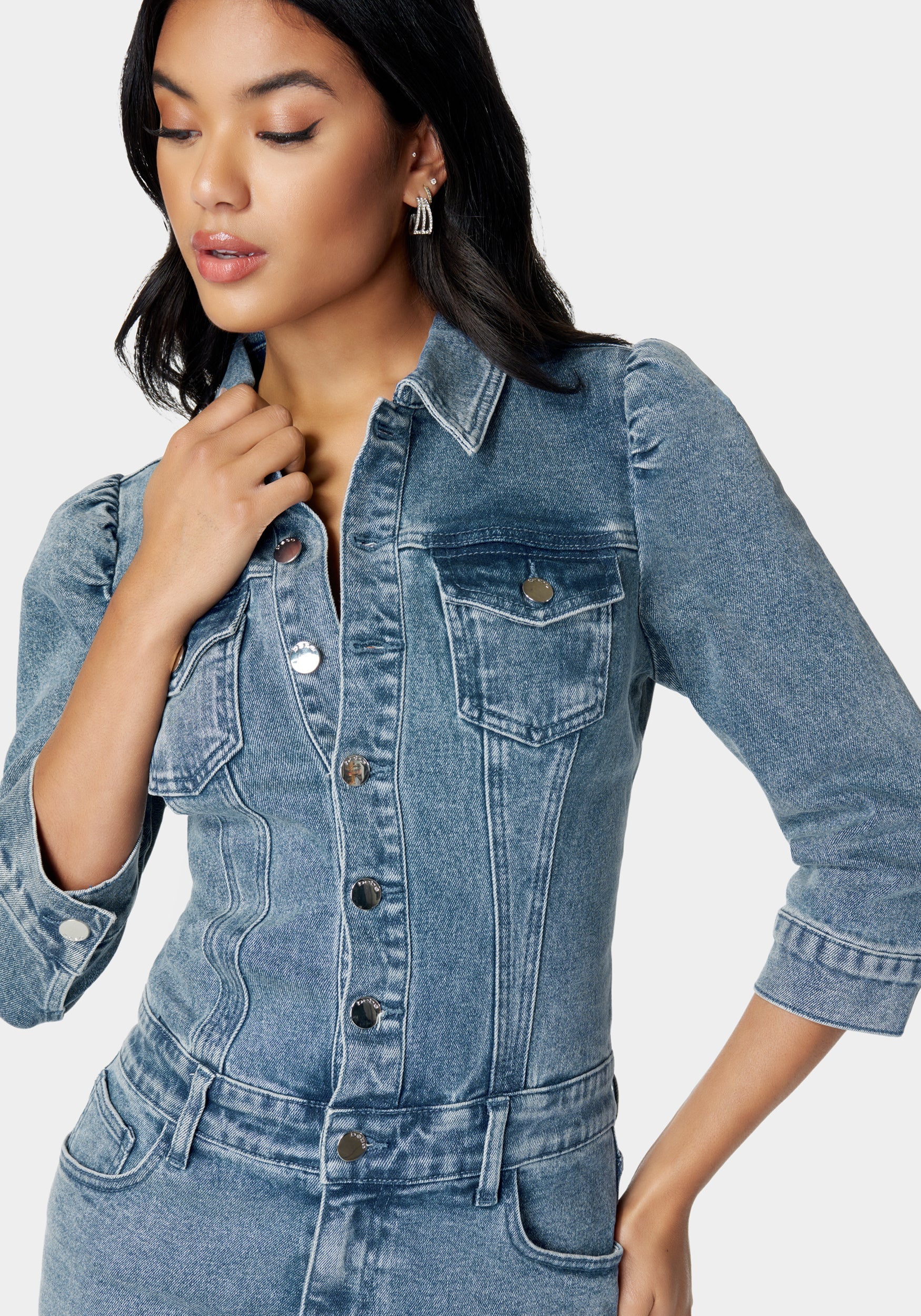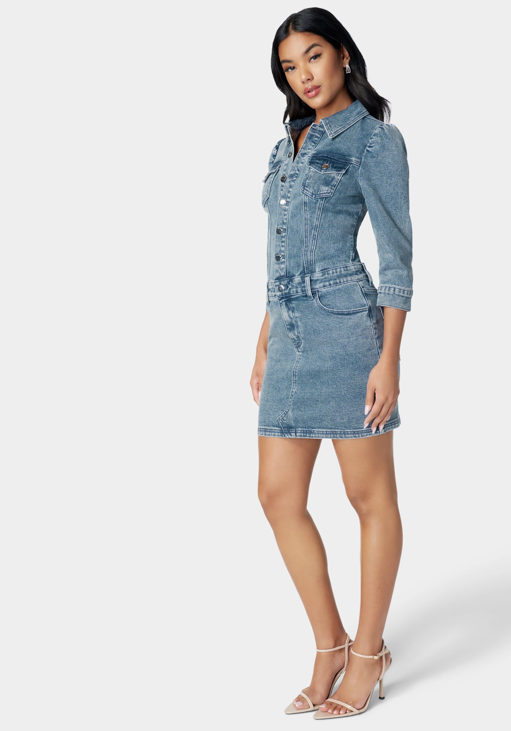 A charming denim dress combines timeless appeal with a casual. yet chic silhouette for undeniable style.