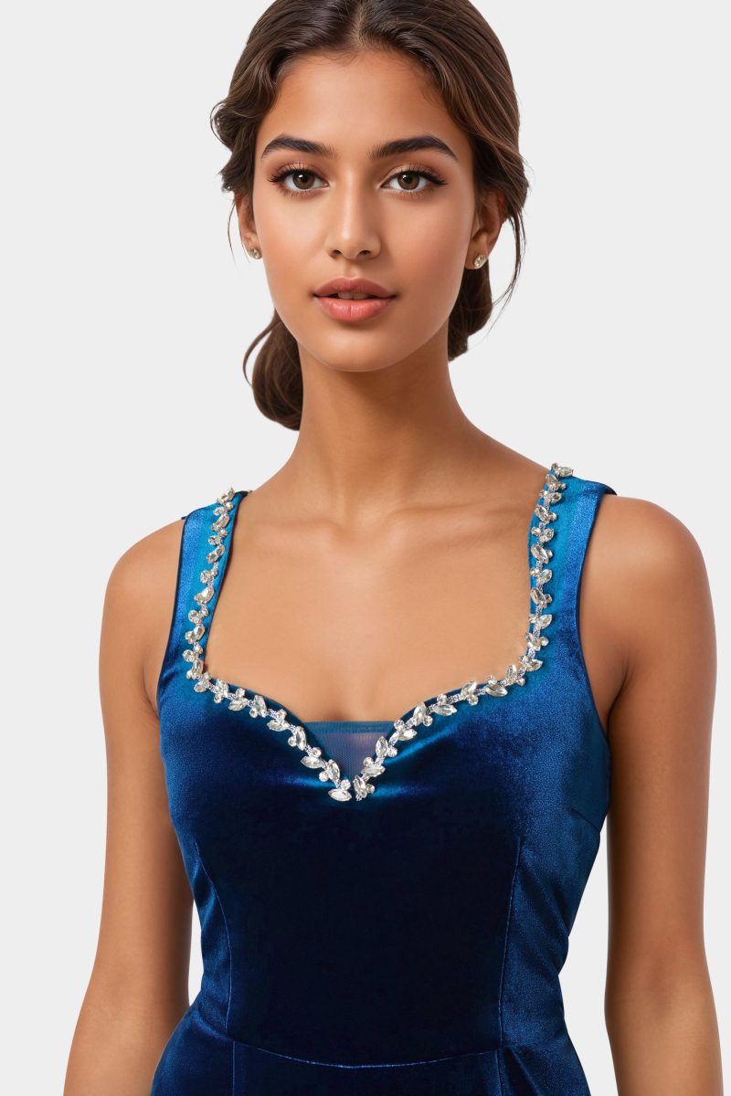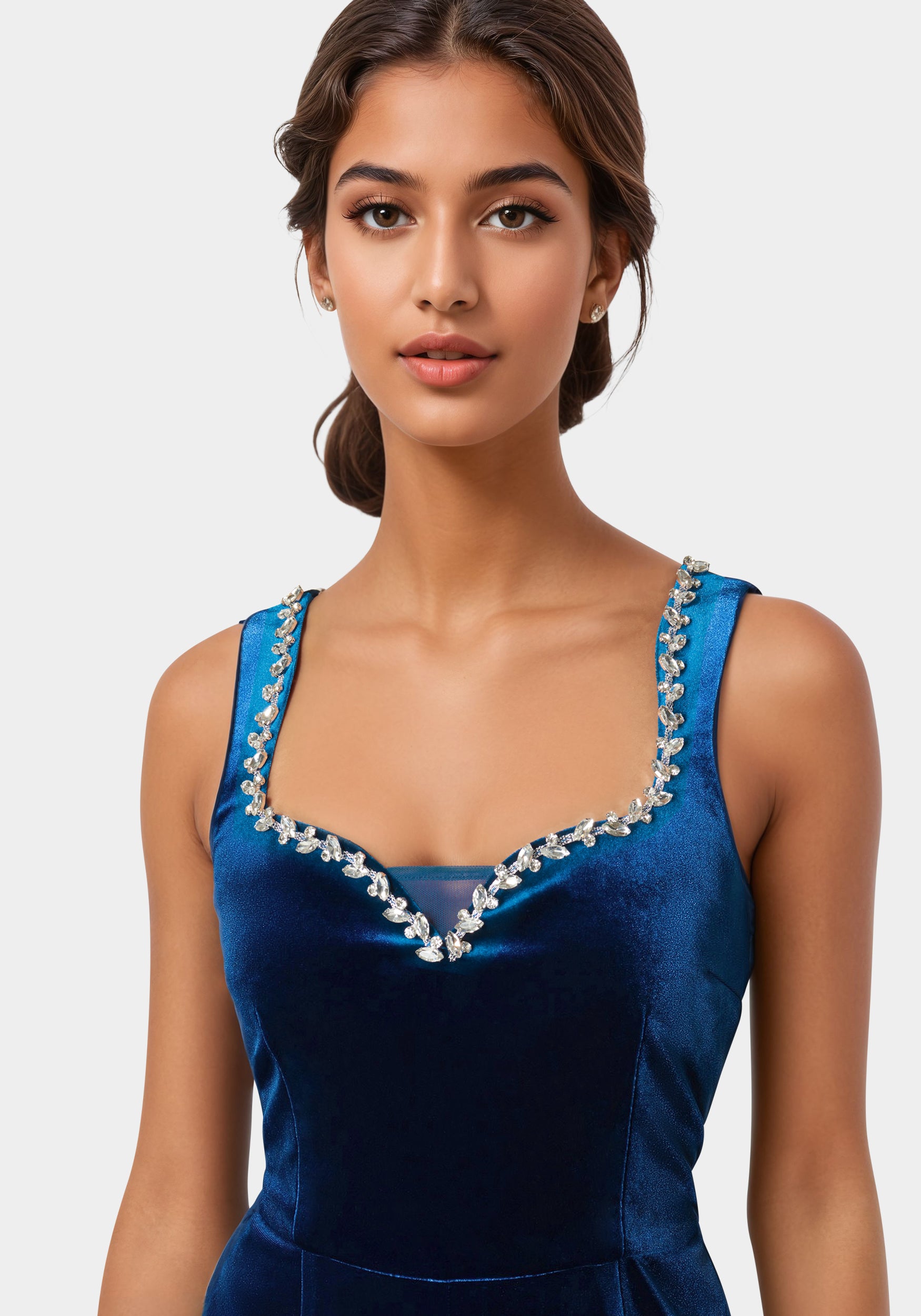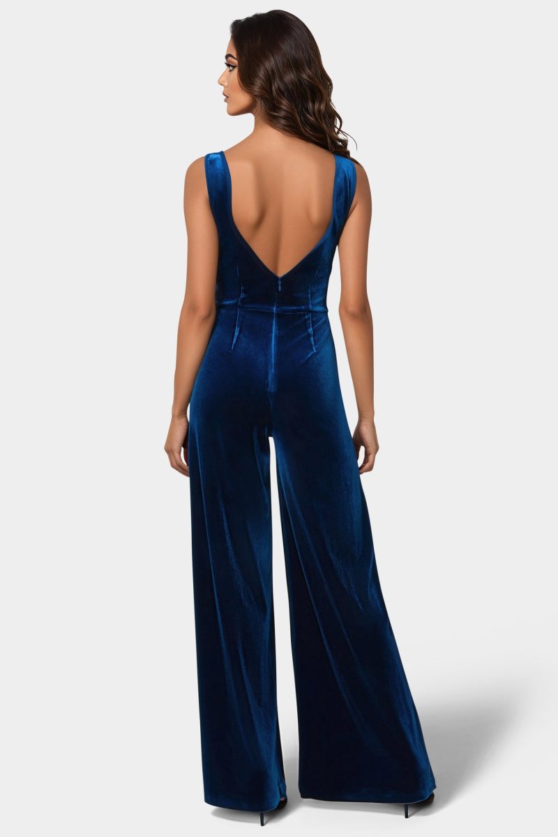 Elevate your ensemble with this luxurious velour bebe jumpsuit. Its sleek jewel neckline and dramatic wide-leg pants make it your go-to for an effortlessly elegant look.