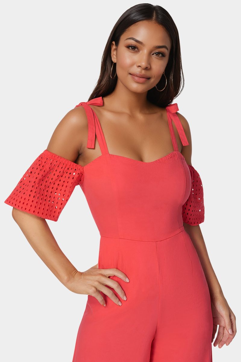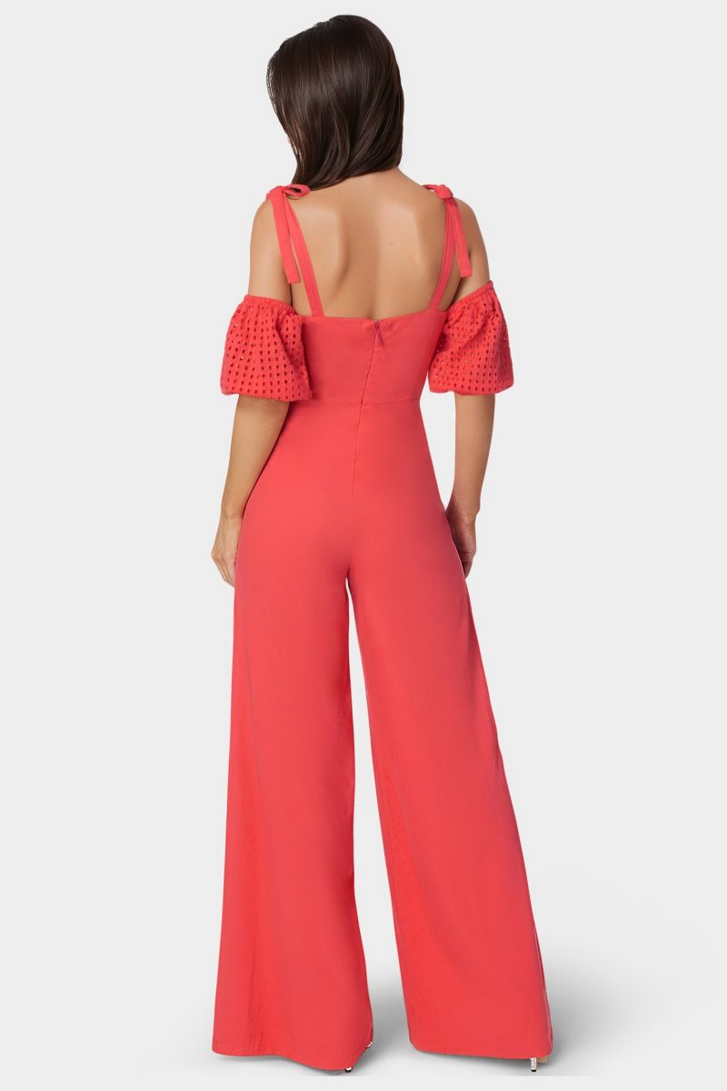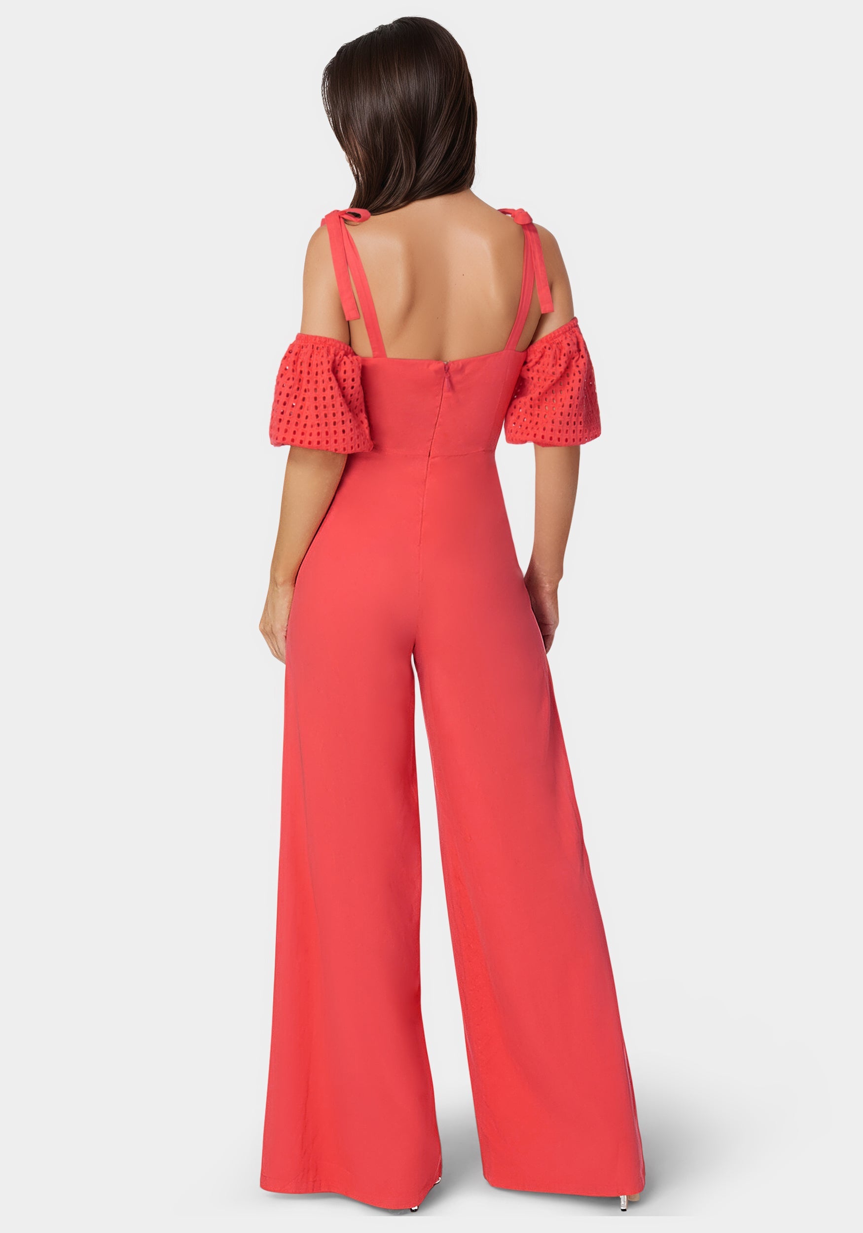 Embrace a sultry and vintage-inspired style with our Embroidered Cotton Puff Sleeve Full Wide Leg Jumpsuit. The embroidered details add a touch of allure. while the puff sleeves bring a playful touch. With a full wide leg silhouette and a flattering fit. you’ll captivate hearts and make a statement with your irresistible charm.