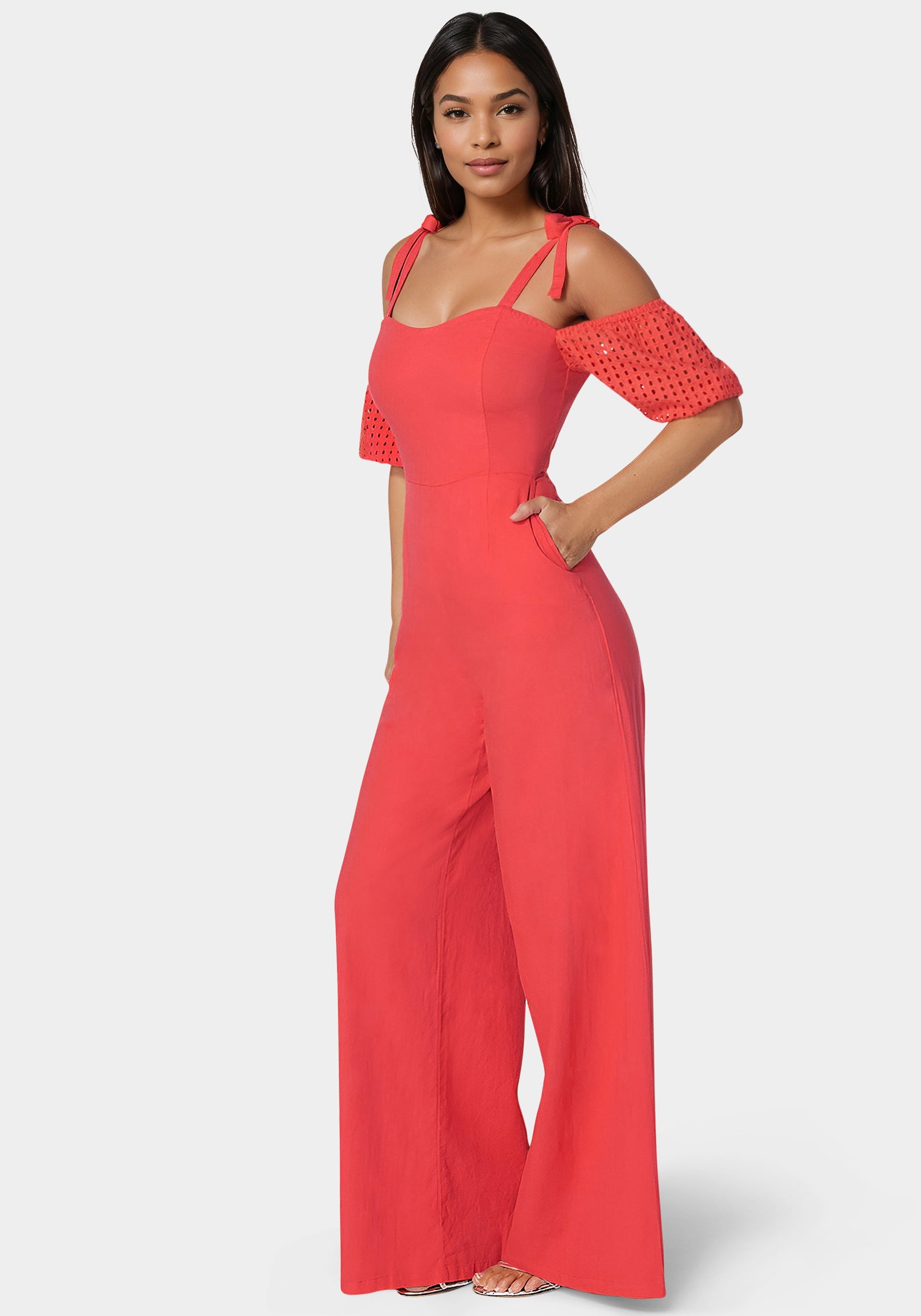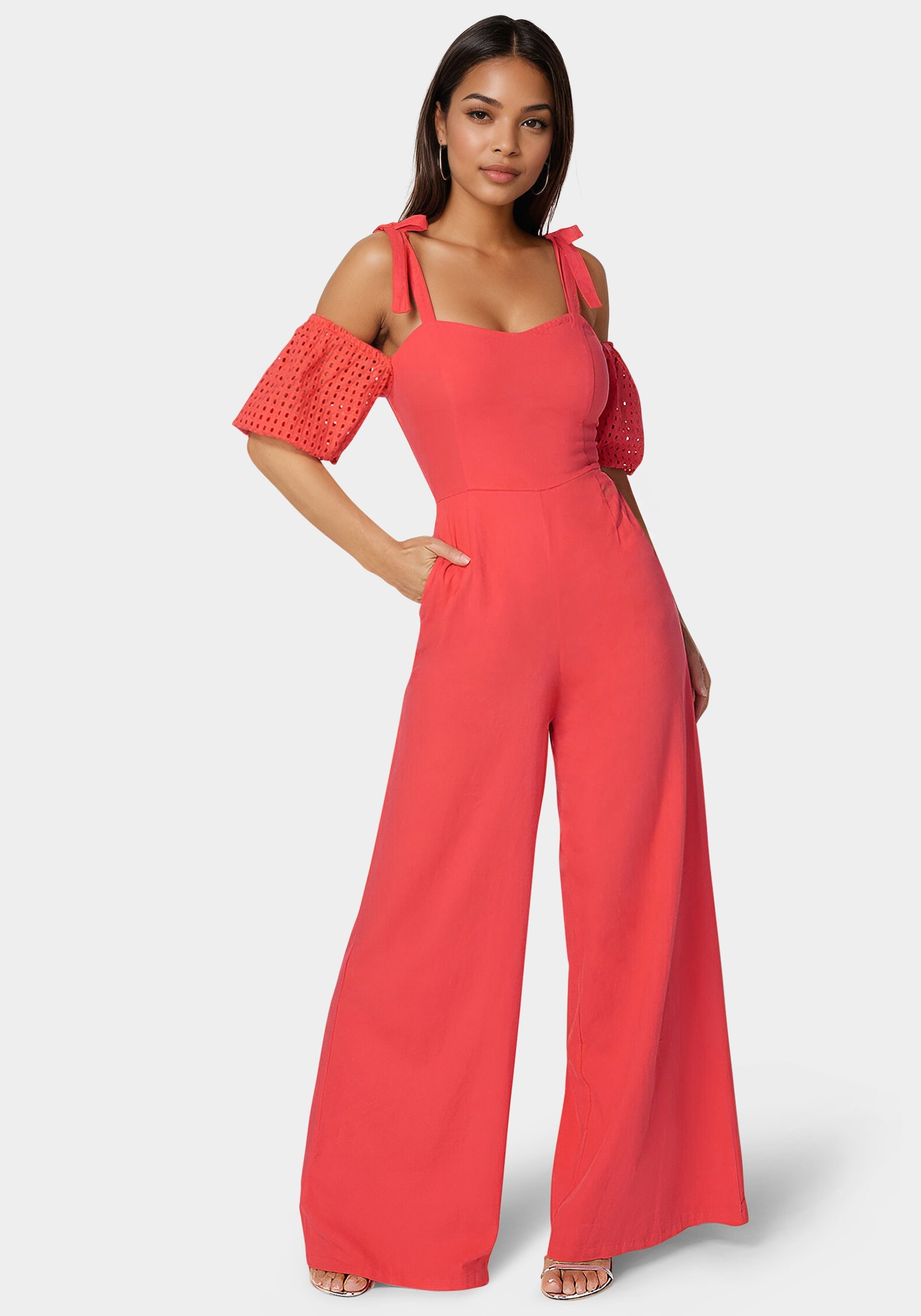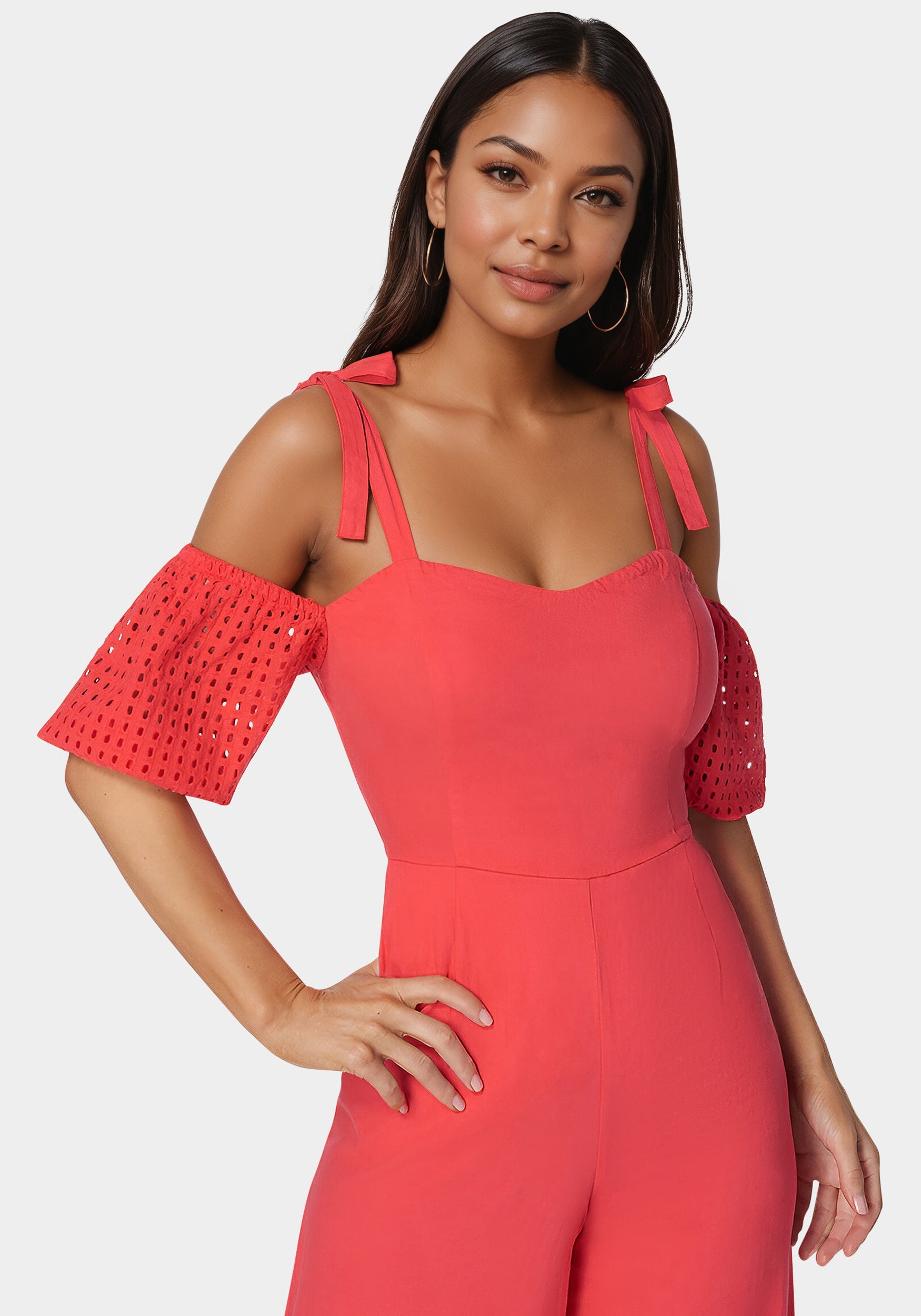 Embrace a sultry and vintage-inspired style with our Embroidered Cotton Puff Sleeve Full Wide Leg Jumpsuit. The embroidered details add a touch of allure. while the puff sleeves bring a playful touch. With a full wide leg silhouette and a flattering fit. you’ll captivate hearts and make a statement with your irresistible charm.