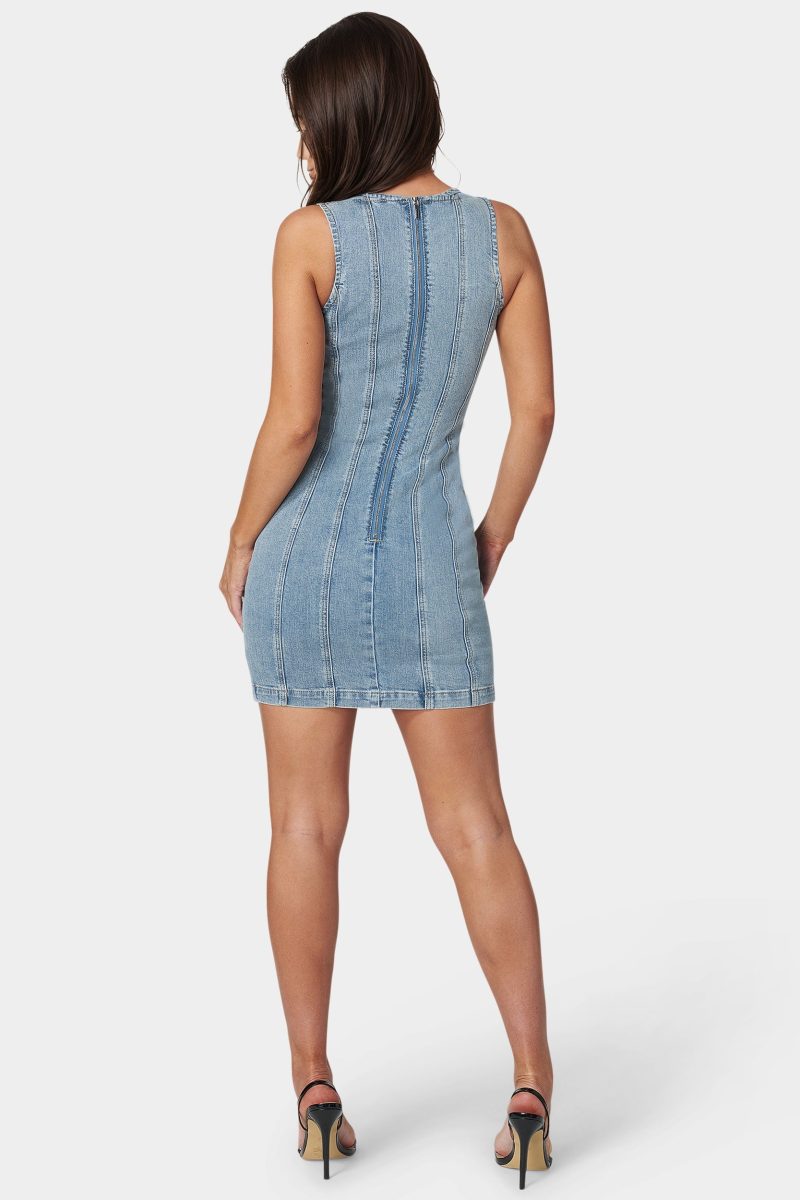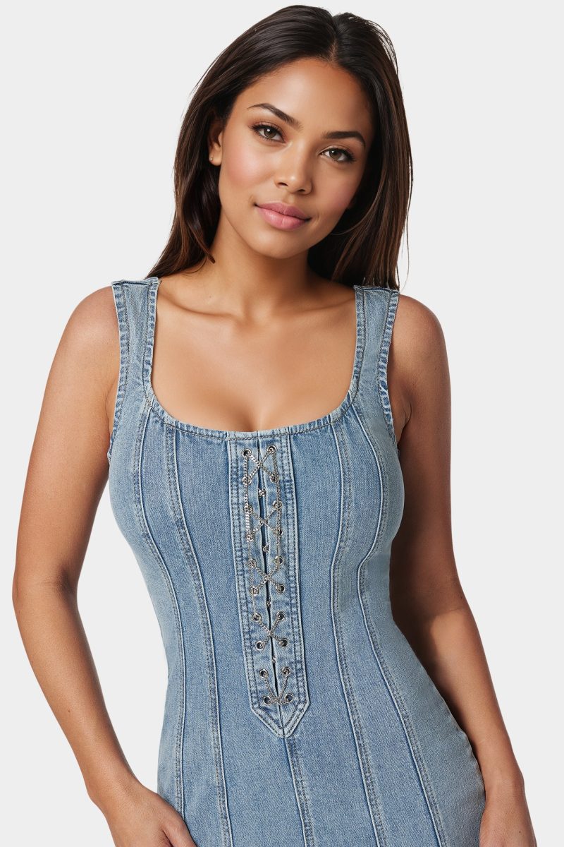 Snug in all the right places. this lace-up denim dress puts a trendy twist on classic style.