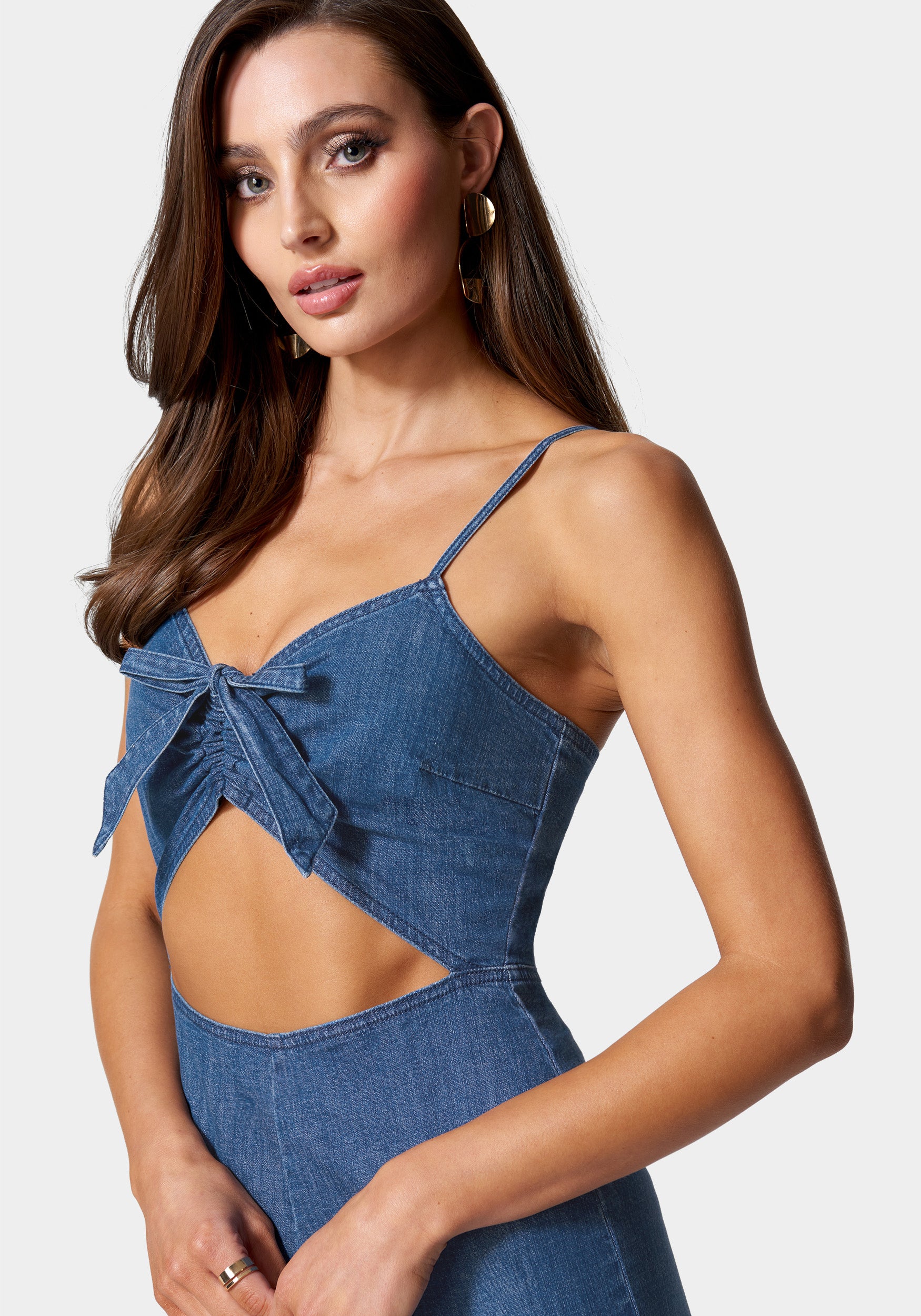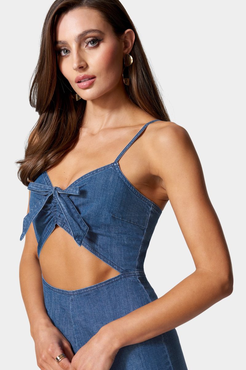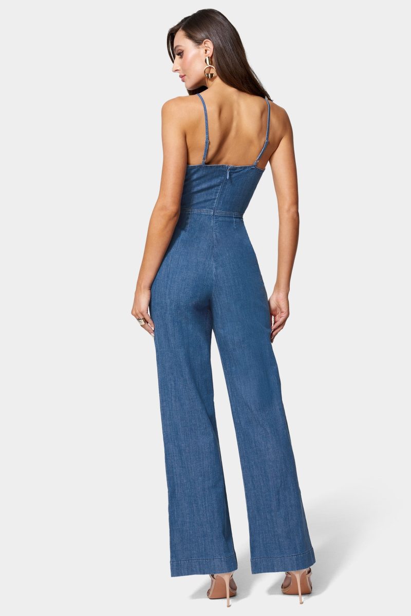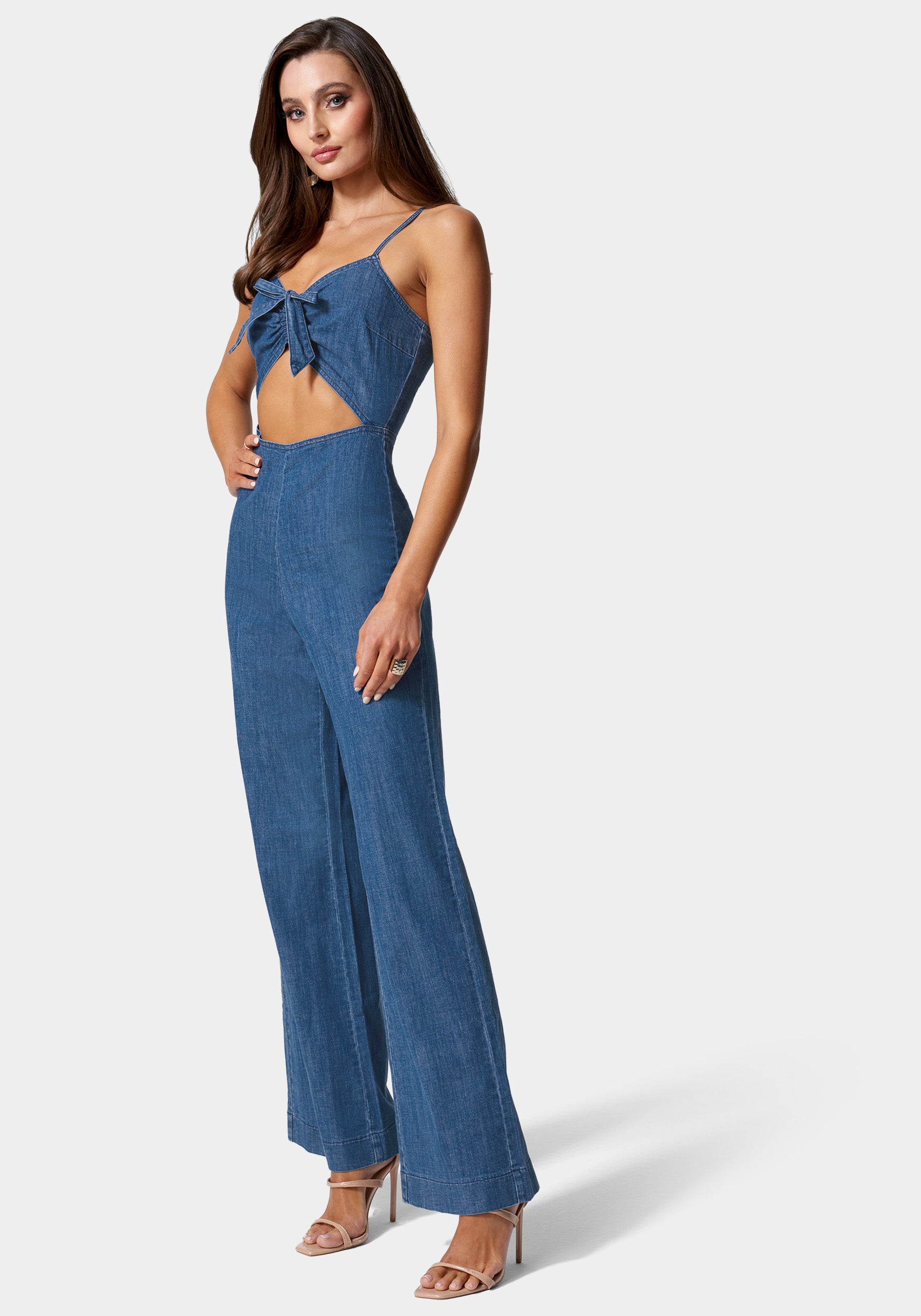 Cute and casual. this jumpsuit is designed with a ruched bodice. cut-out detail at the waist. and wide leg pants that provide an elegant look. Finished with adjustable cami straps and a back zipper for a perfect fit.