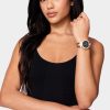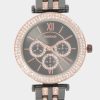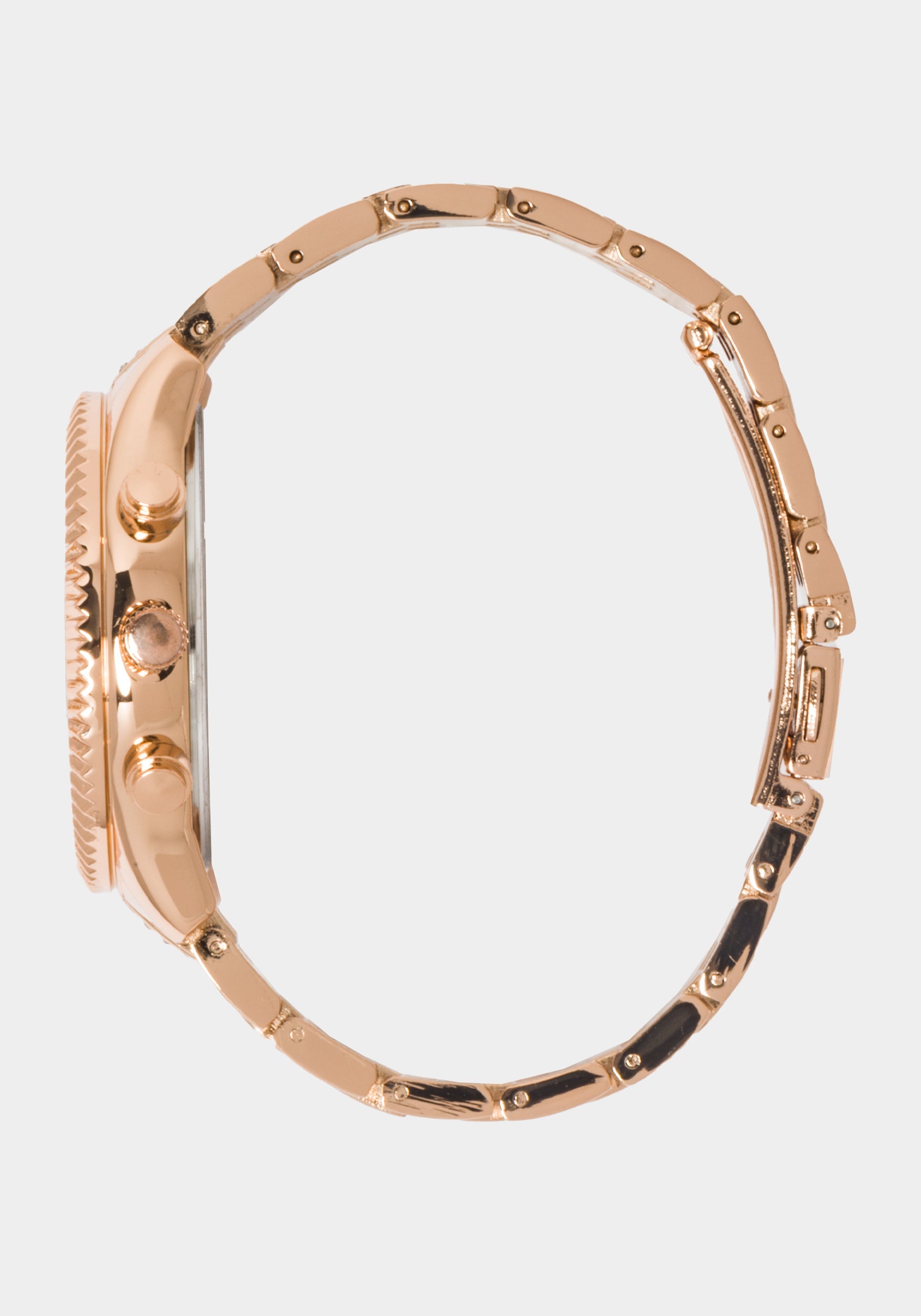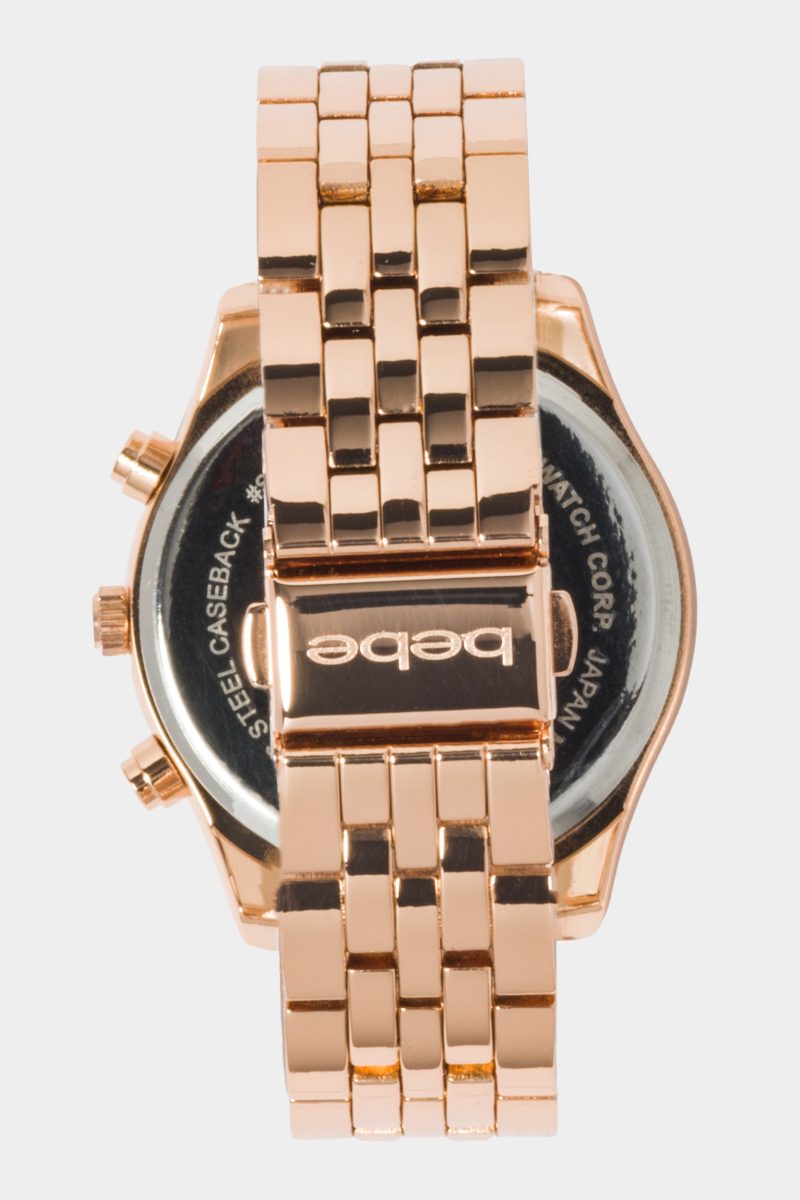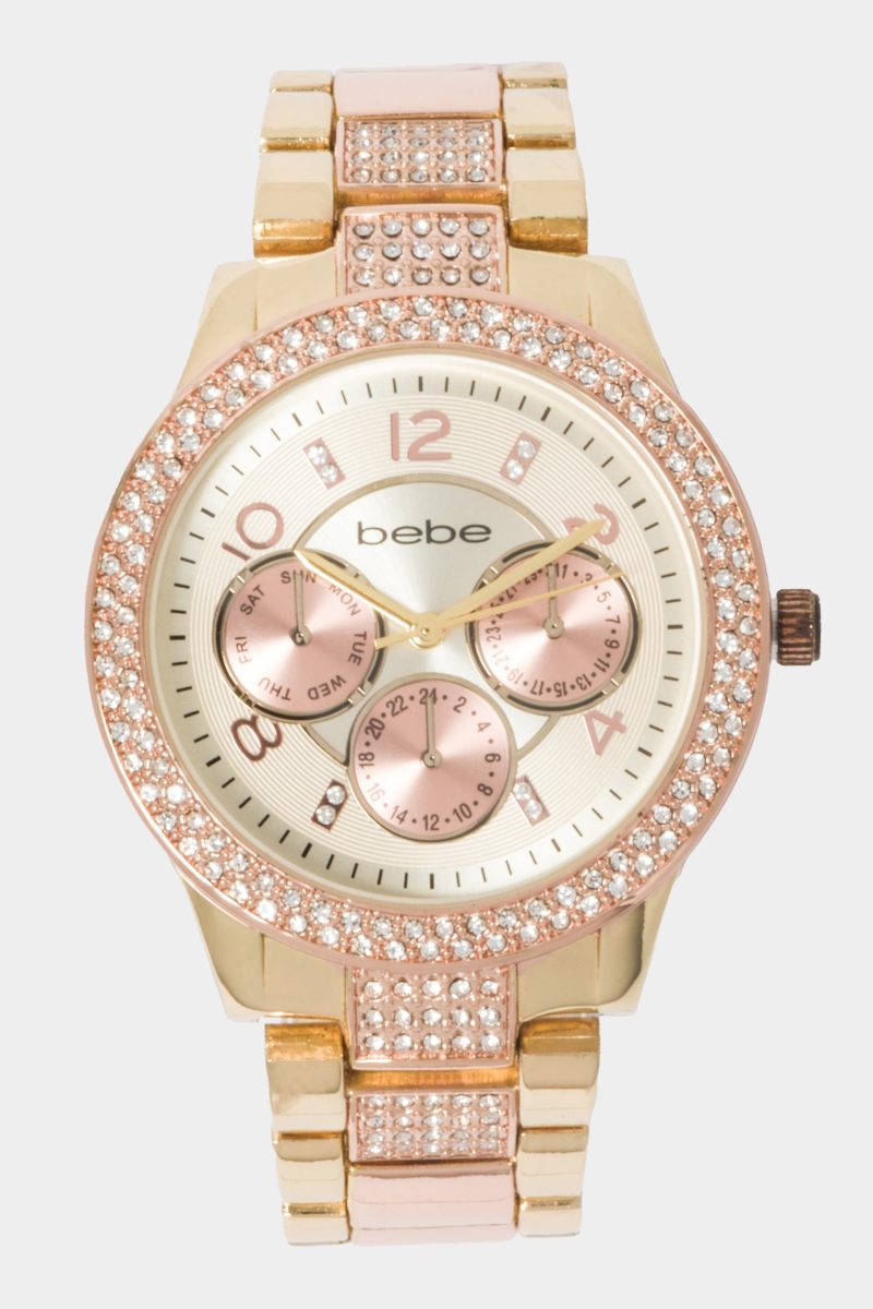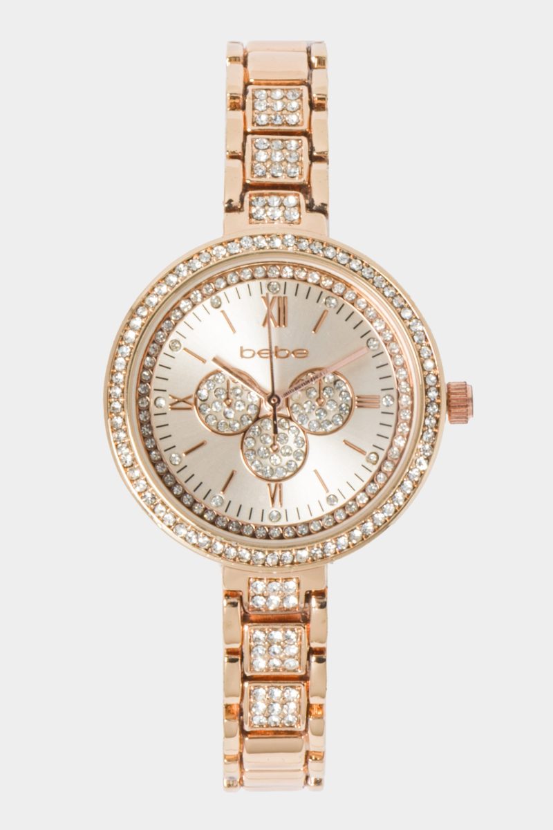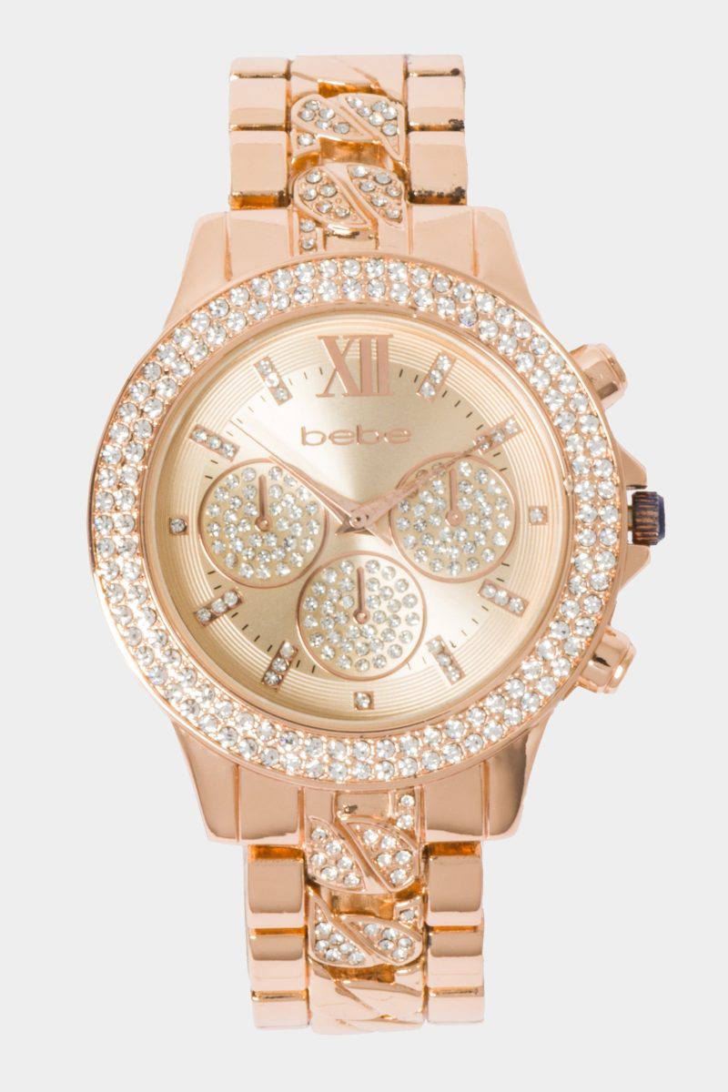 Distinctly luxurious. this rose gold-tone watch features a crystal-embellished bezel and dial with rose gold-toned hands. complete with clear pav?? crystals along the chain.