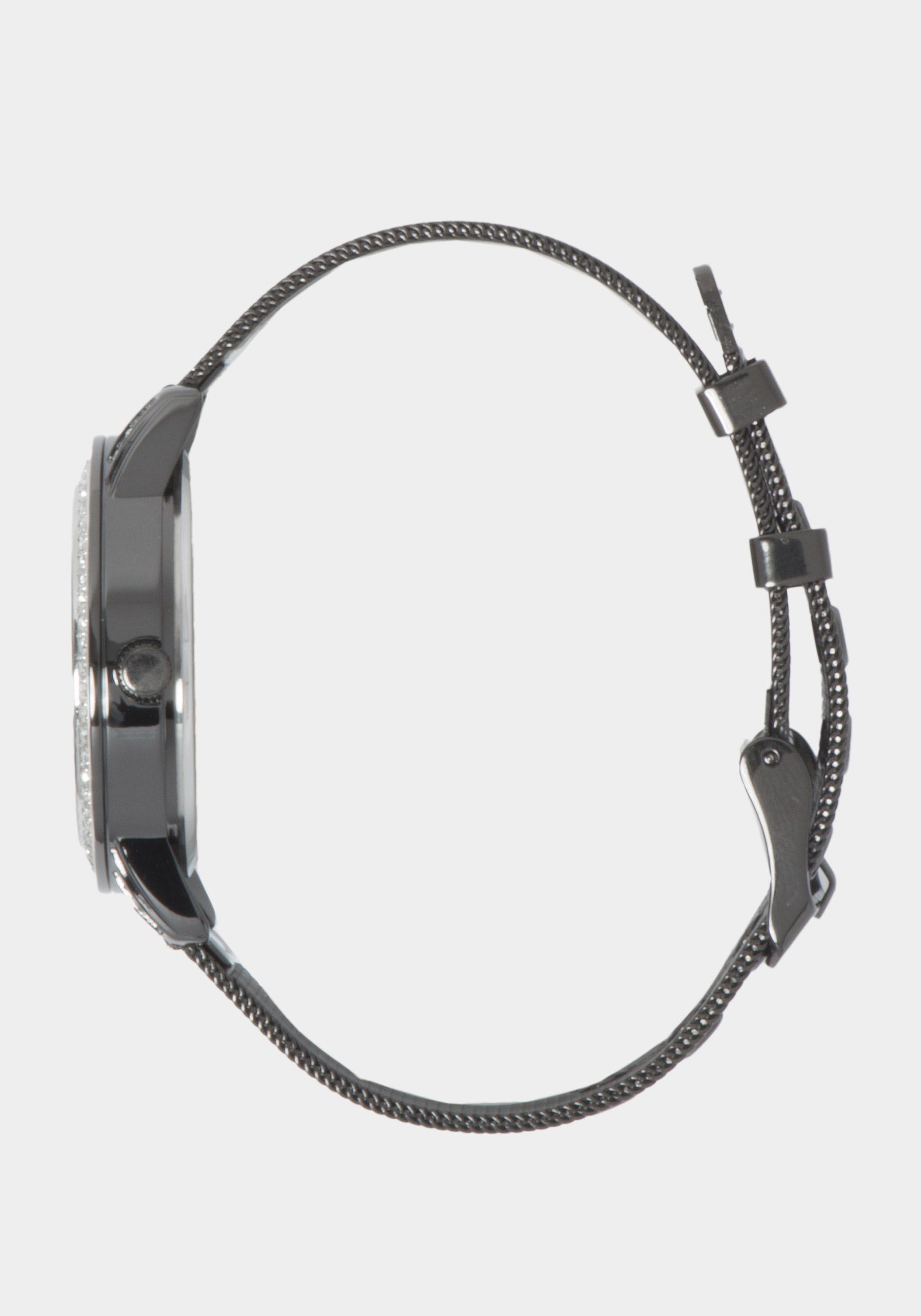 This versatile watch features a gunmetal tone and crystal bezel. It pairs well with any other piece of jewelry. making it the perfect accessory for any outfit.