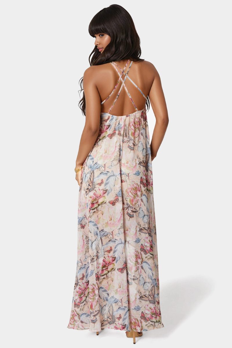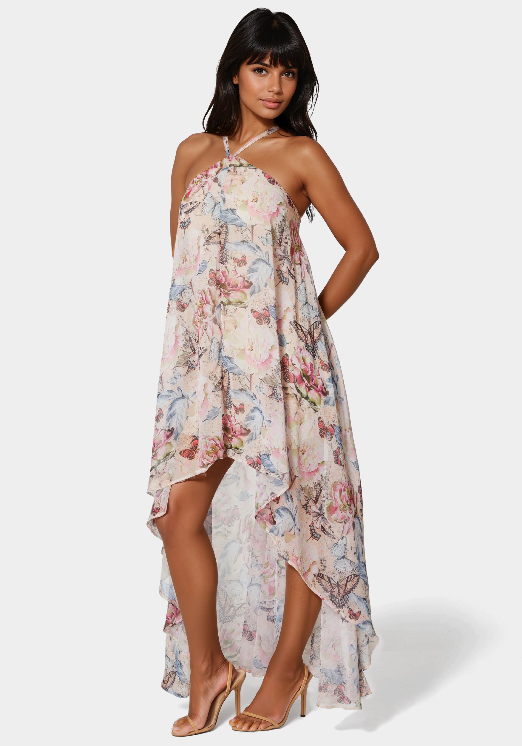 Breeze through special occasions with this high-low chiffon maxi that blends effortless movement with refined allure. Perfect for outdoor weddings or sunset soirées.