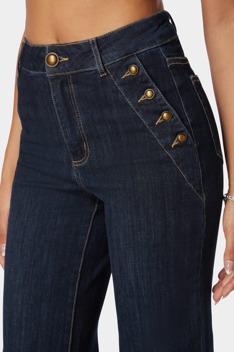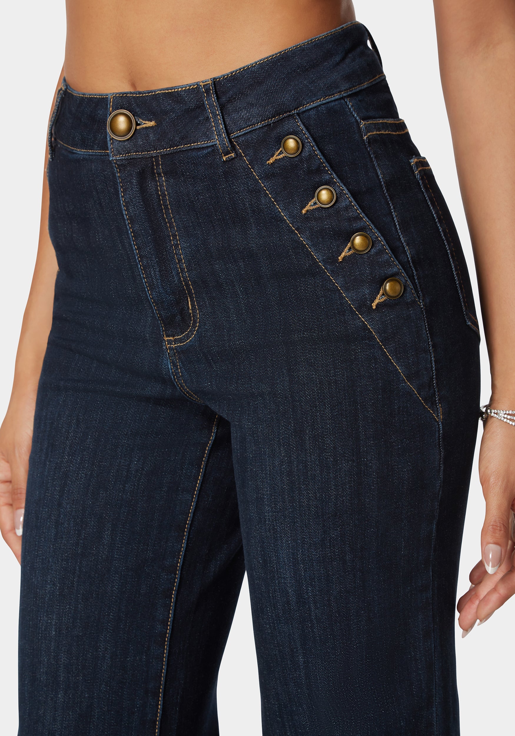 Channel retro vibes with a modern twist in the High Waist Button Detail Flared Leg Jeans. These jeans are a throwback to classic styles. enhanced with bold button detailing for a contemporary edge. The flared leg design ensures a flattering silhouette that pairs perfectly with platforms or boots.