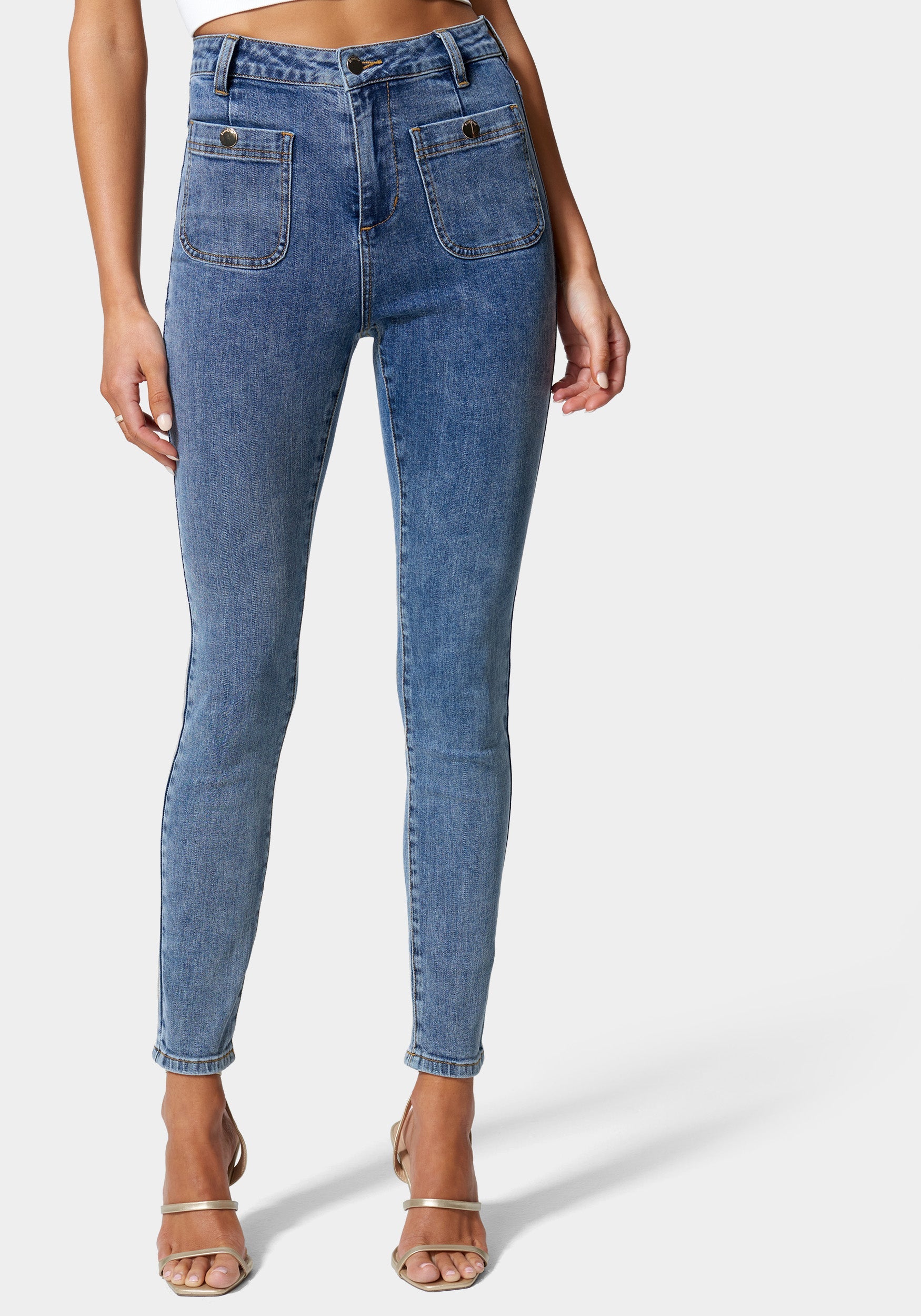 Wardrobe essential. this ultra-flattering skinny jean is made in our signature vintage stretch denim. complete with a high waist fit and patch pockets.