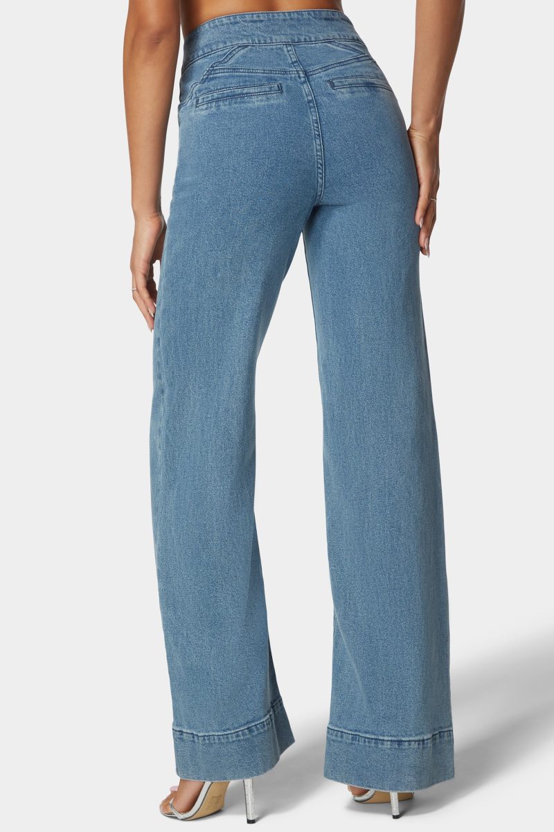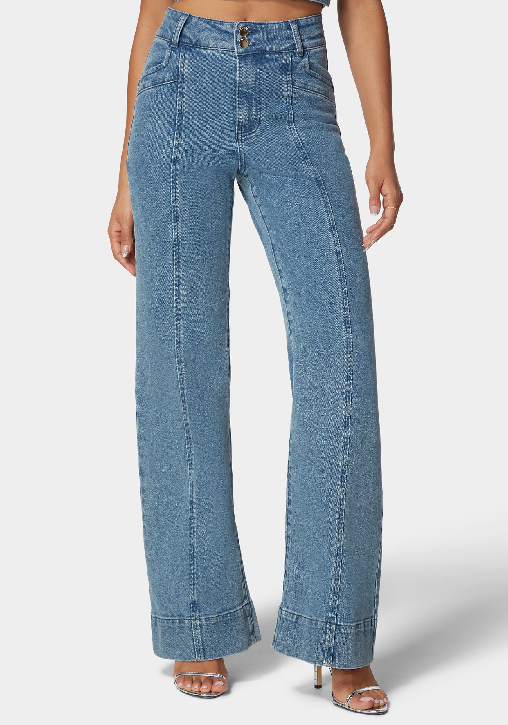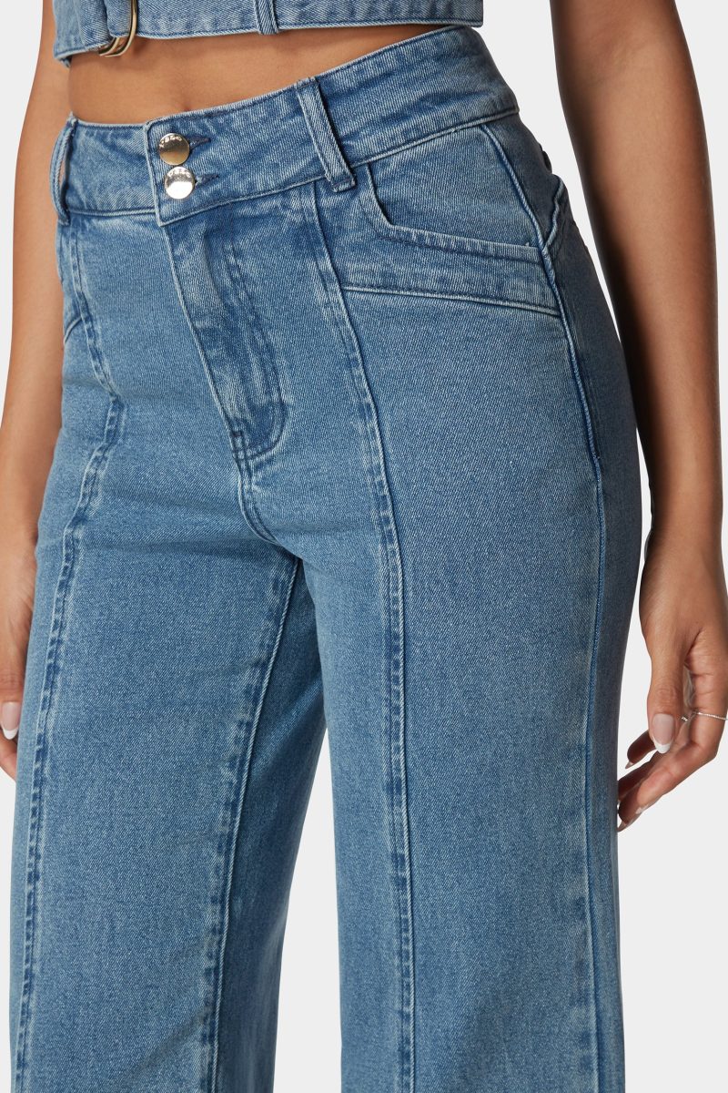 High Waist Seam Detail Ultra Wide Leg Jeans