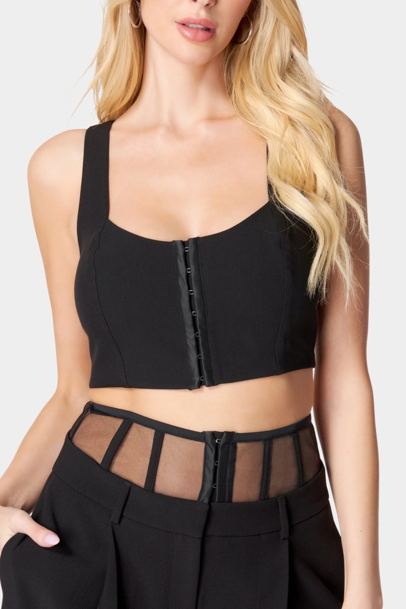 Unleash your inner trendsetter with our hook & eye front bustier top. This piece combines classic design with edgy undertones. creating a top that fits your figure just right.
