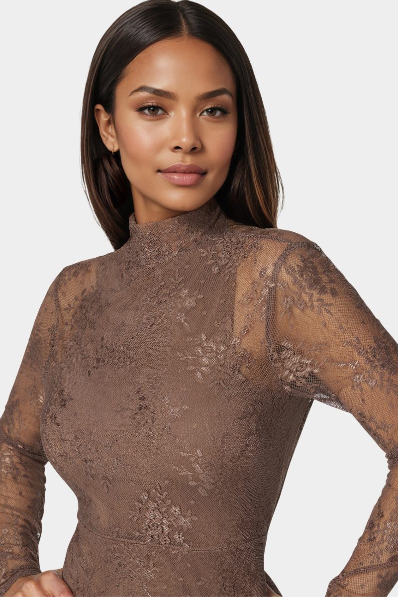 Elevate your evening look with sheer lace. A design that captivates ??effortlessly.