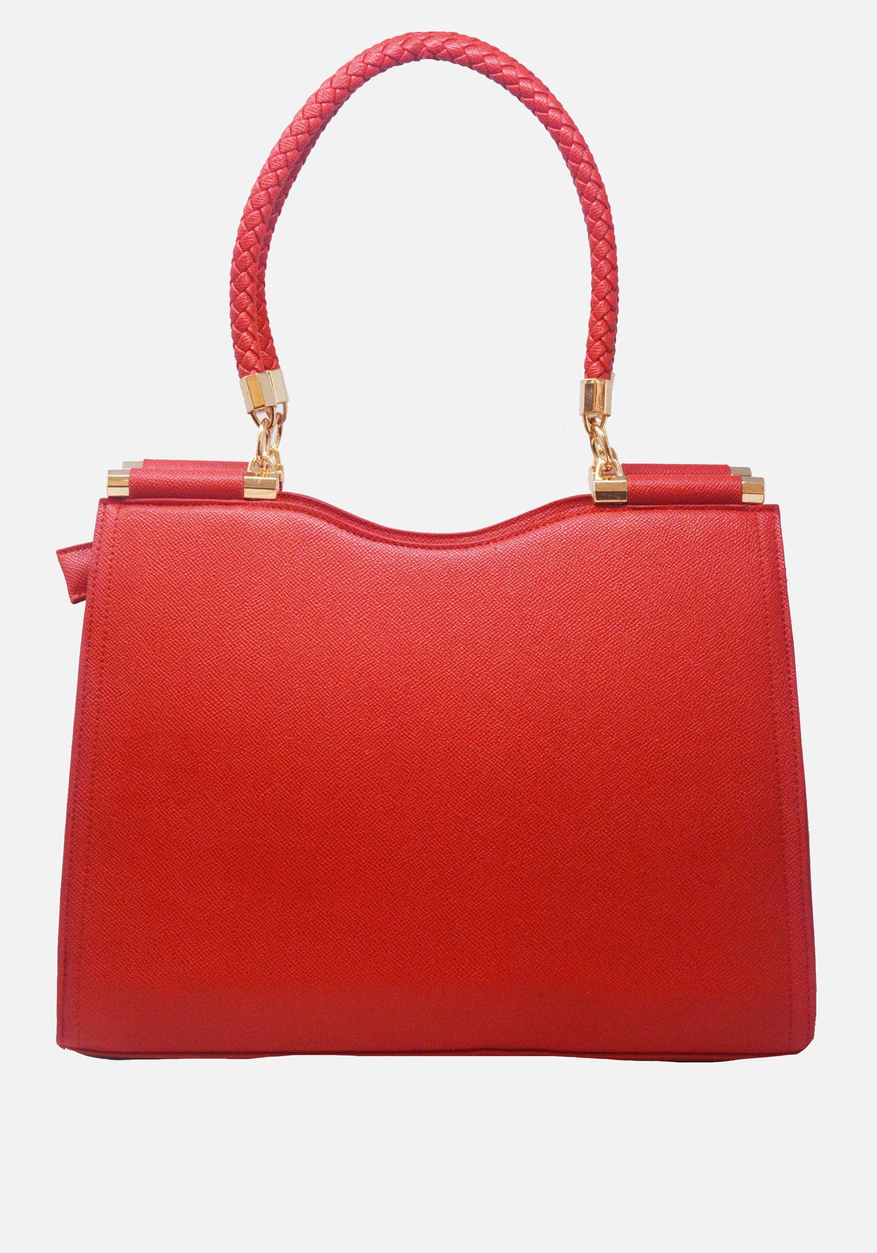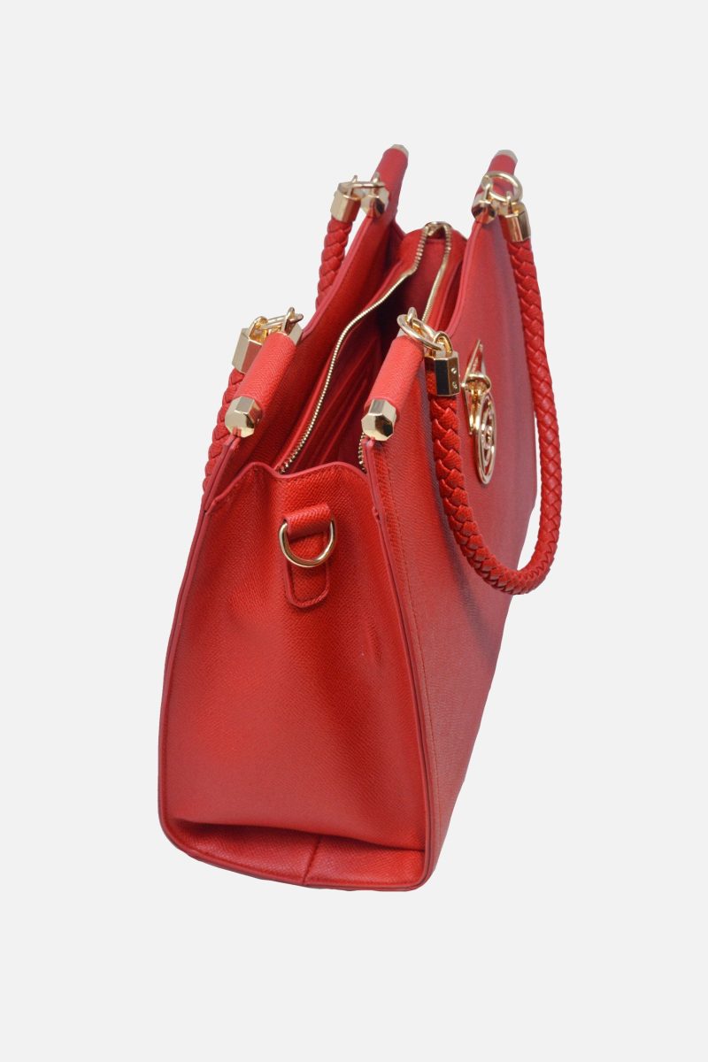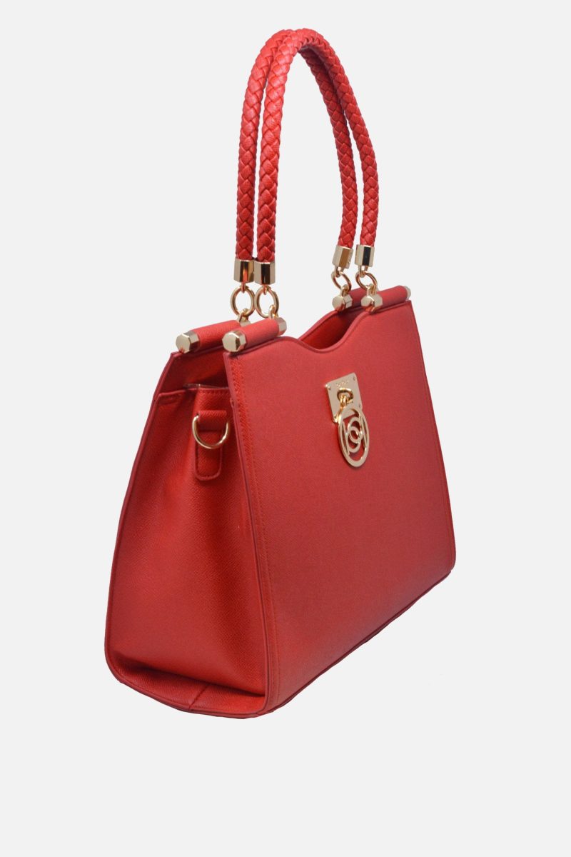 The perfect shopping companion is a stylish bag. This shopper bag features braided rope top handles. a detachable crossbody strap. and charm logo plate detail.