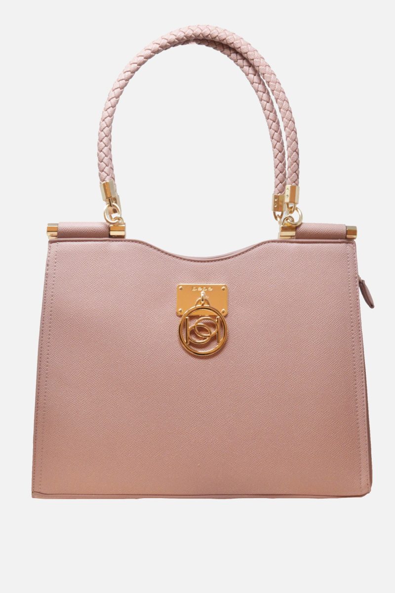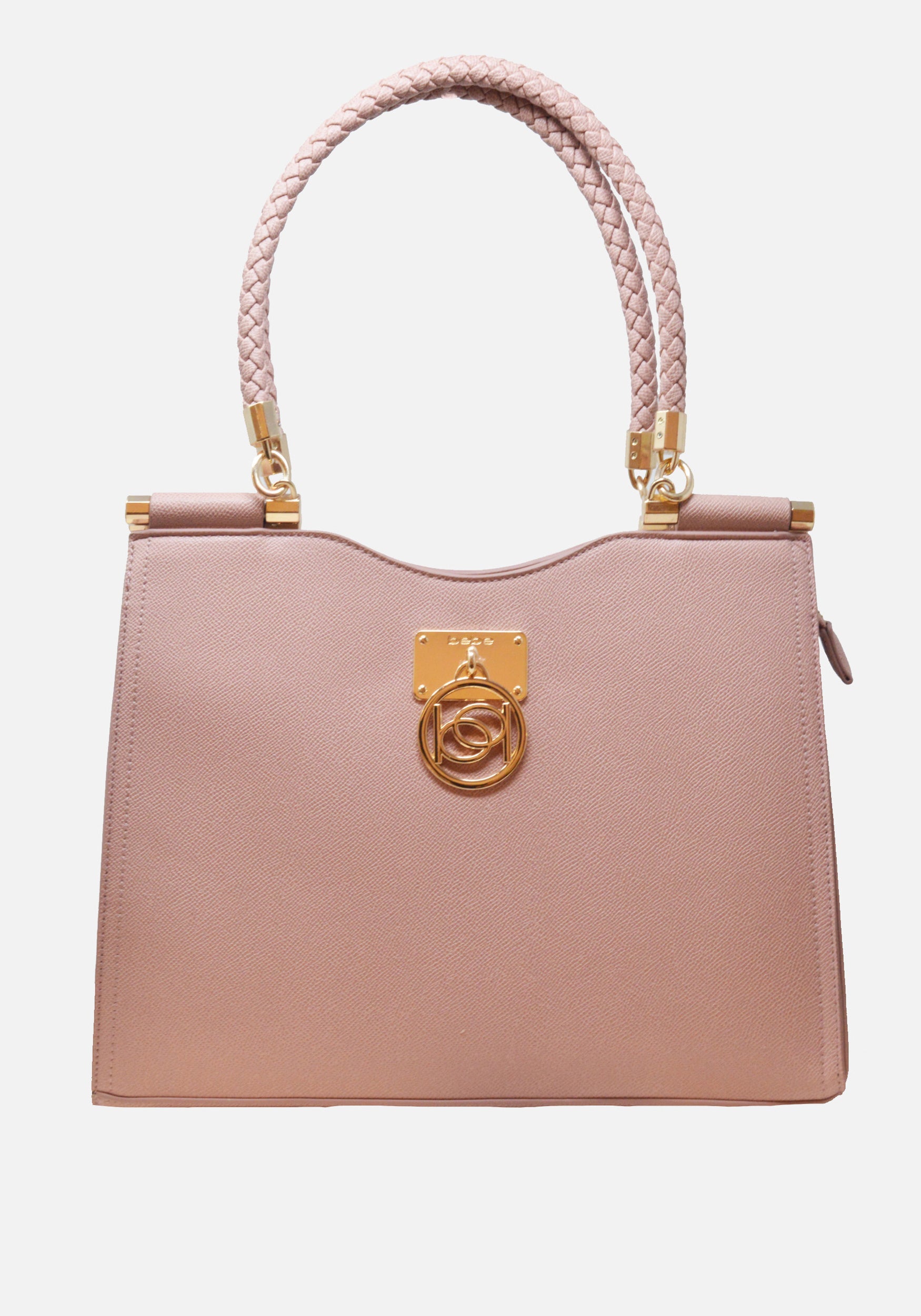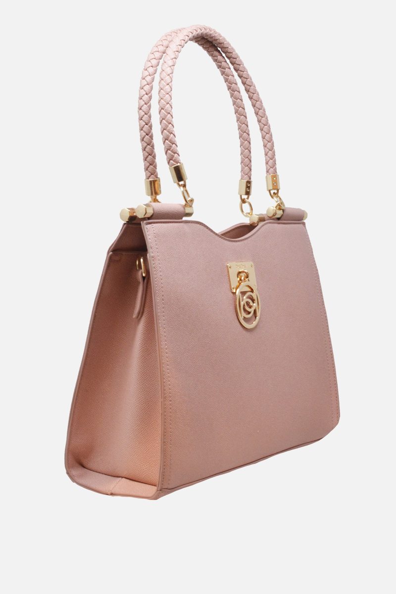 The perfect shopping companion is a stylish bag. This shopper bag features braided rope top handles. a detachable crossbody strap. and charm logo plate detail.