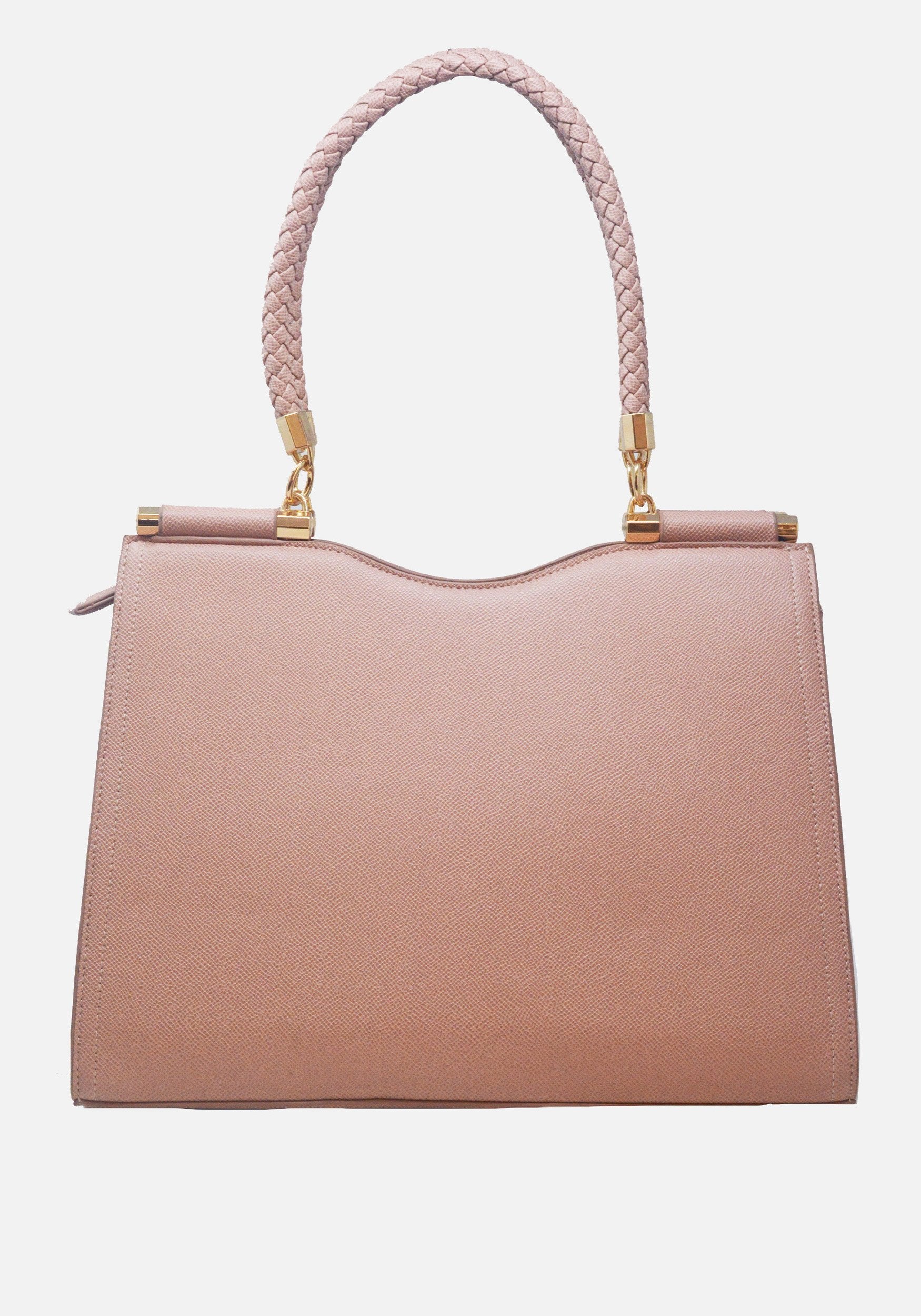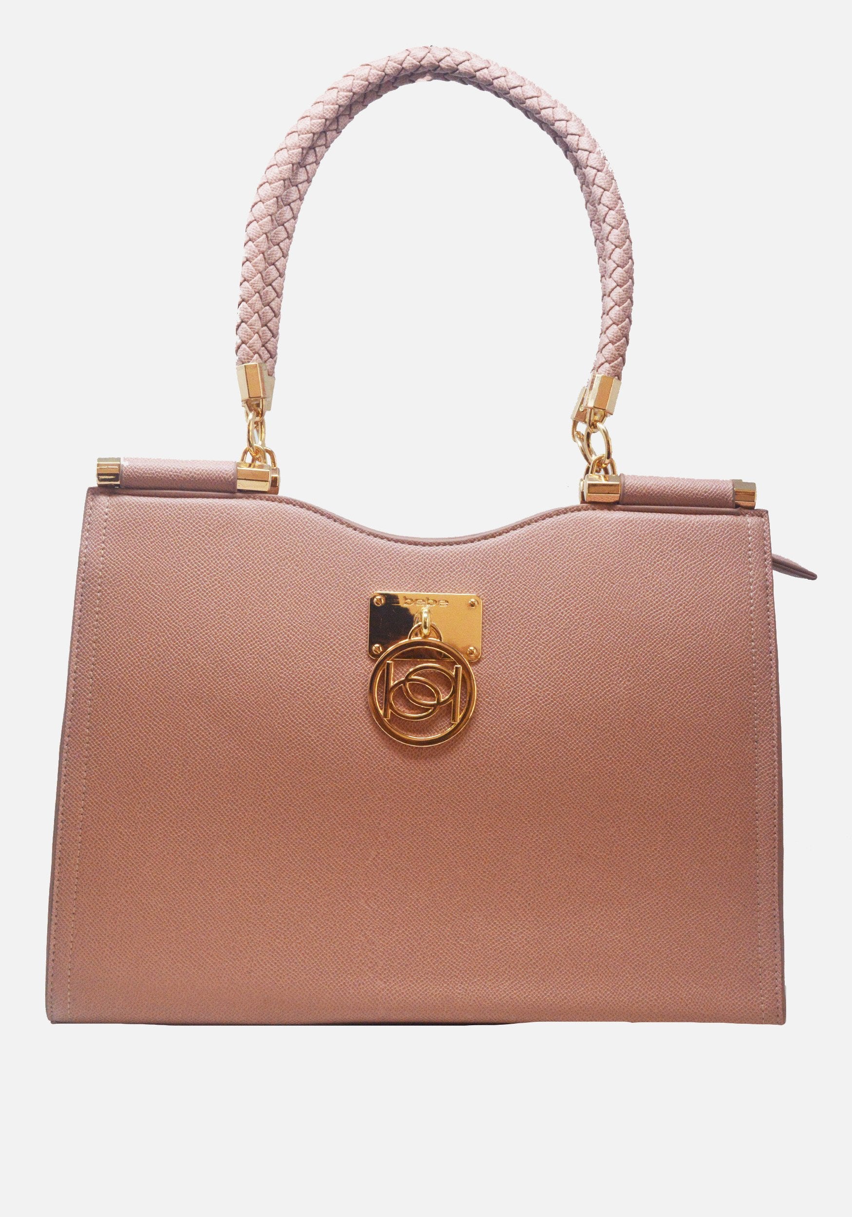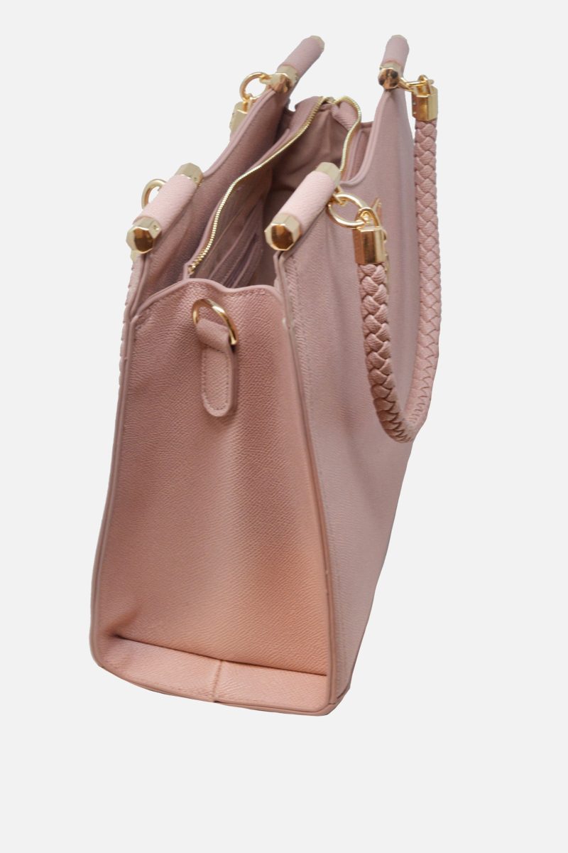 The perfect shopping companion is a stylish bag. This shopper bag features braided rope top handles. a detachable crossbody strap. and charm logo plate detail.