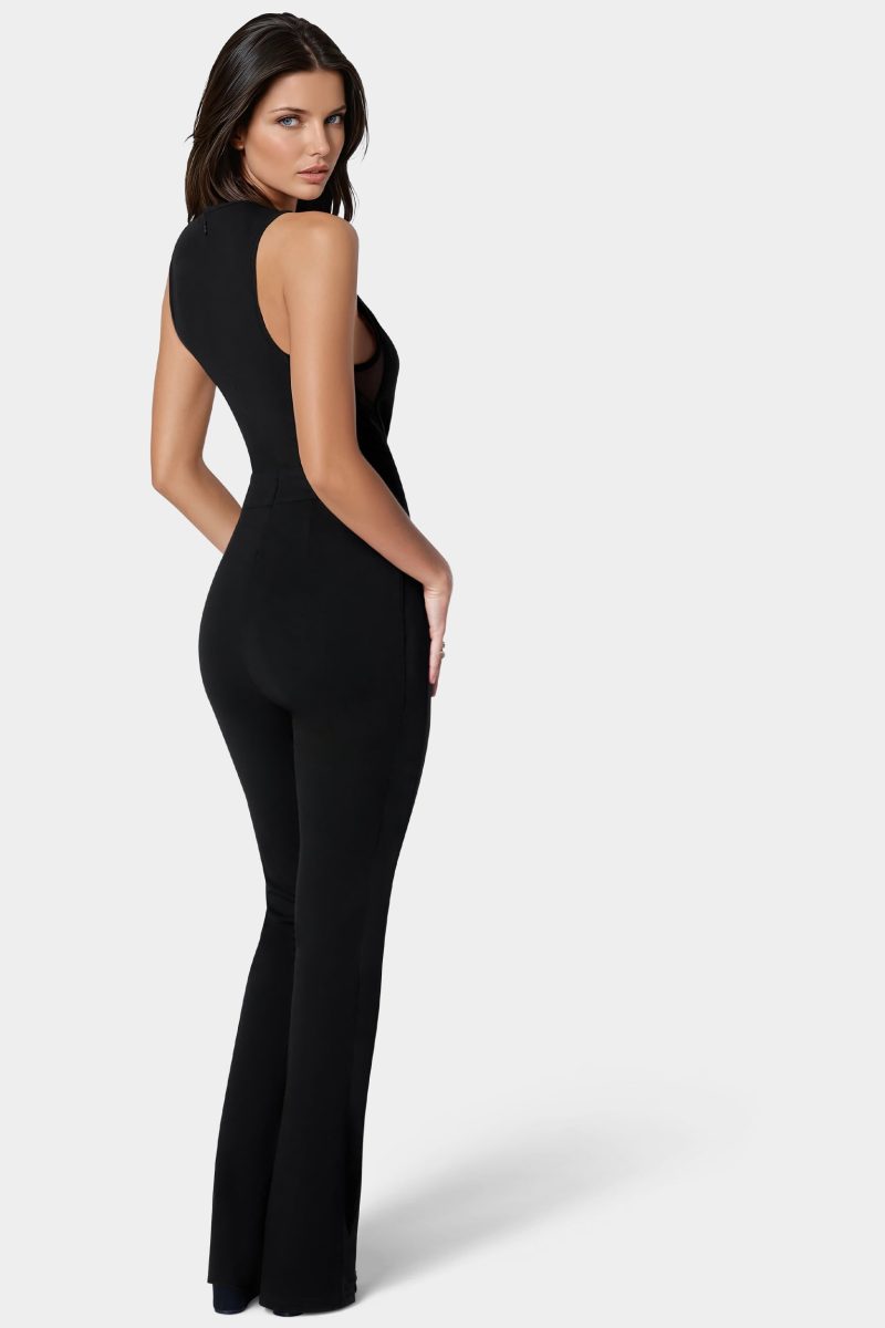 The knit illusion jumpsuit is a contemporary twist on classic style. This jumpsuit features a blend of soft knit fabric for comfort and an illusion design for an element of surprise. It creates a striking silhouette that plays with the concept of layering. providing a chic one-piece that makes getting dressed effortless.