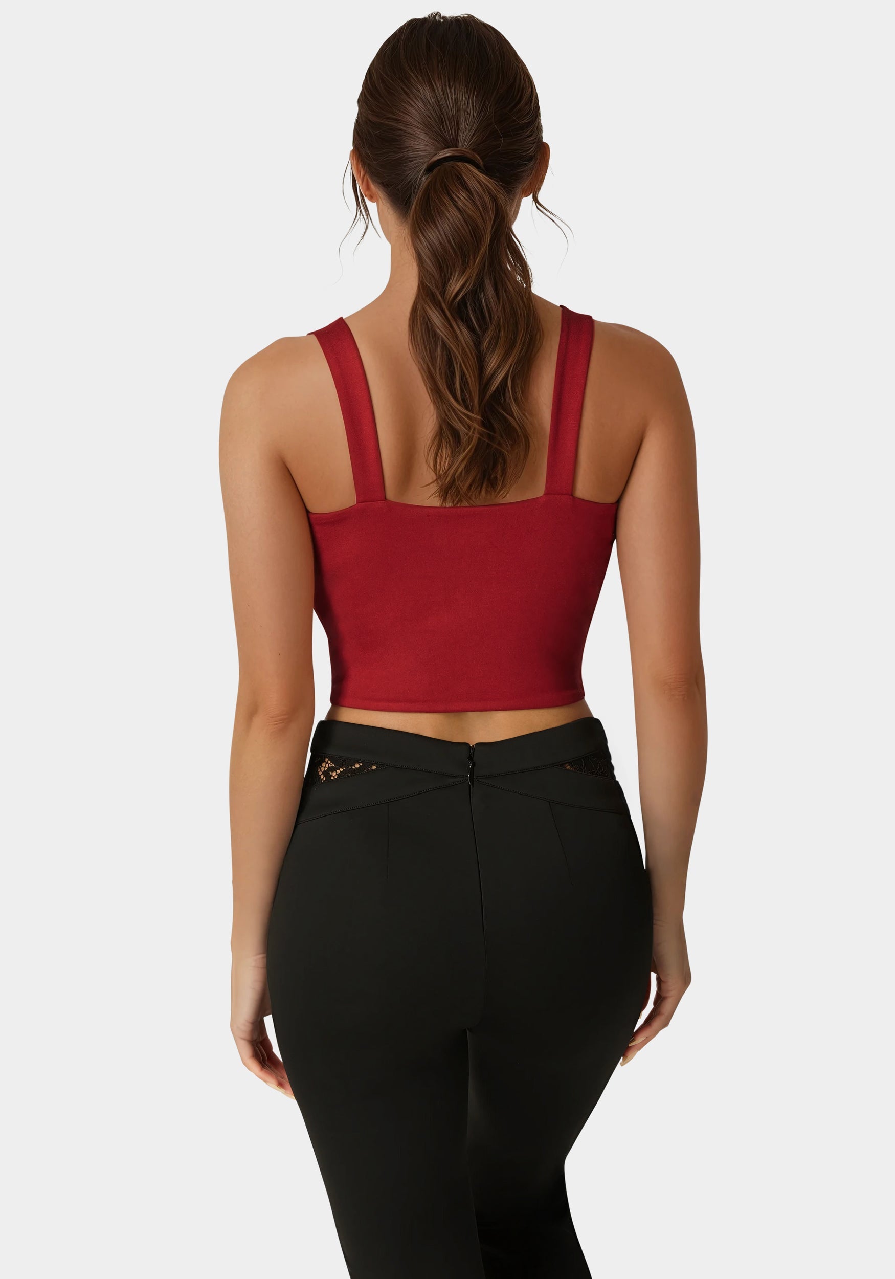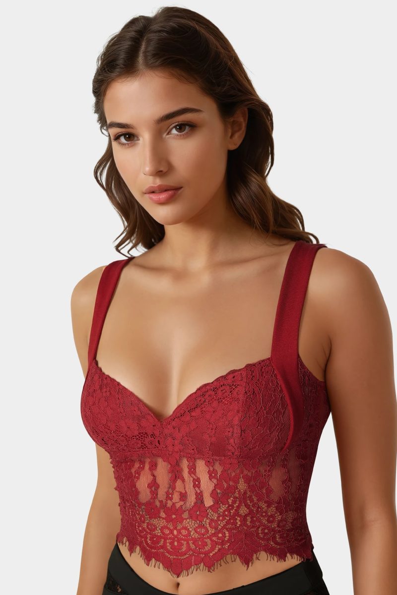 Dial up the drama with this red lace corset – a classic piece with a bold twist.
