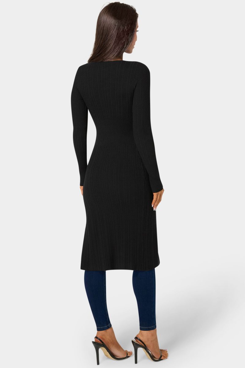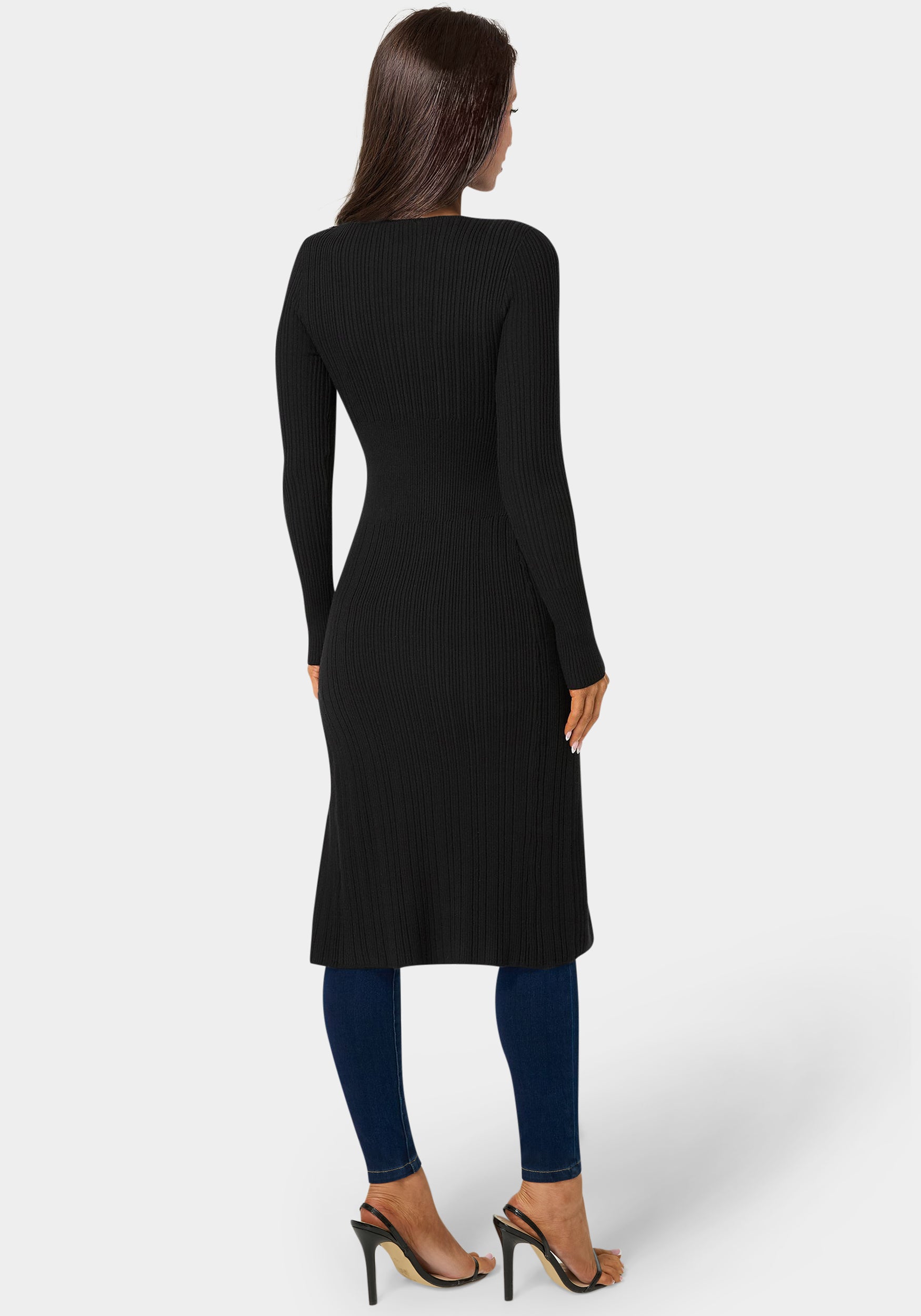 A side slit adds a modern twist to this long body sweater; ideal for fashionable layering.