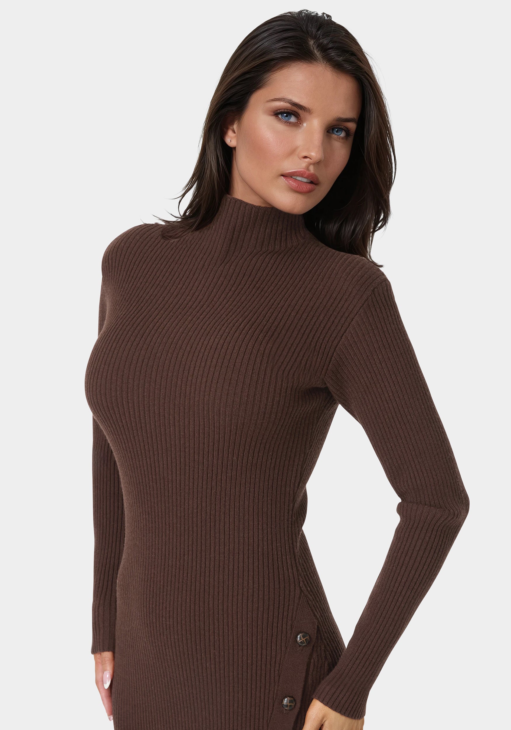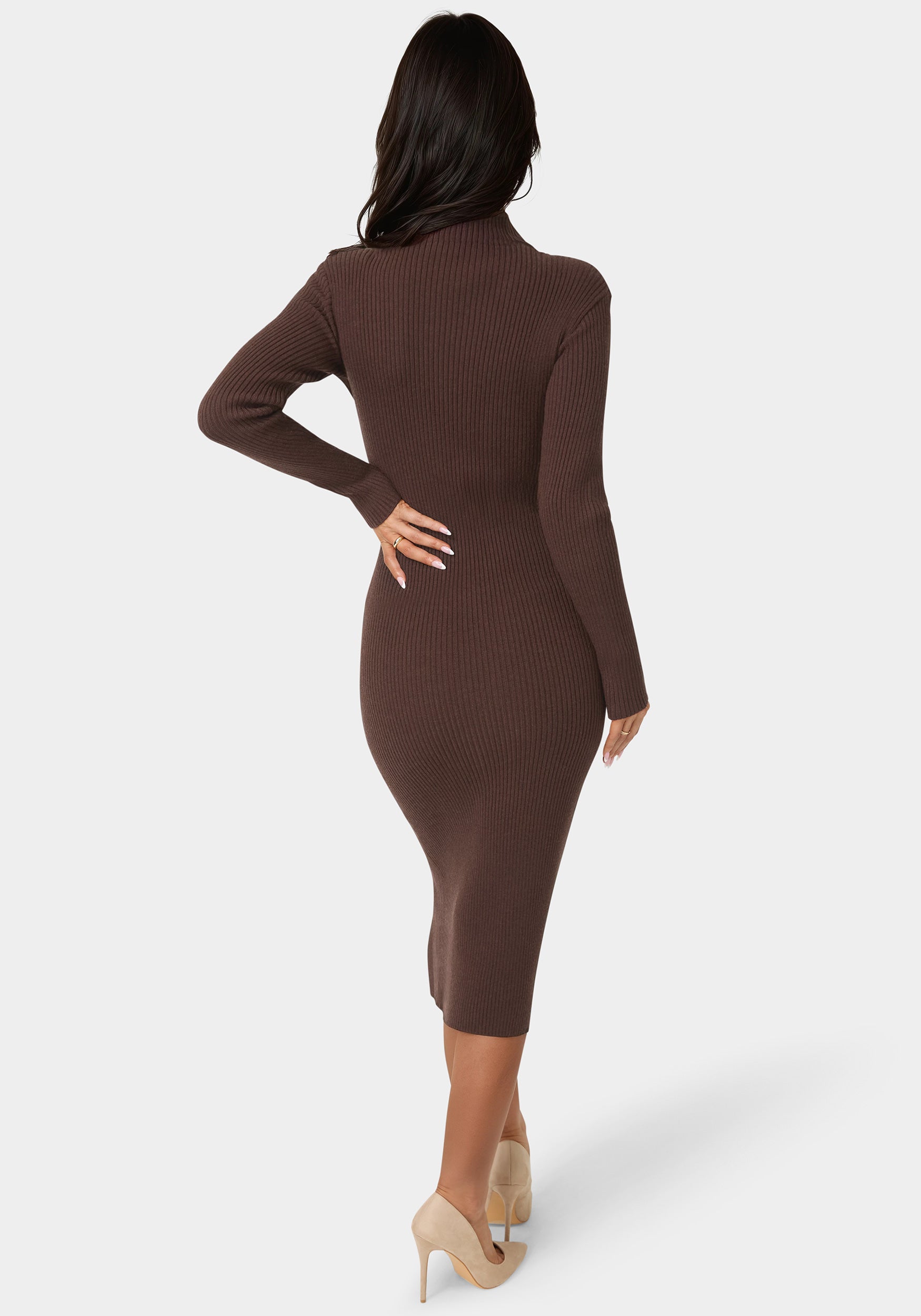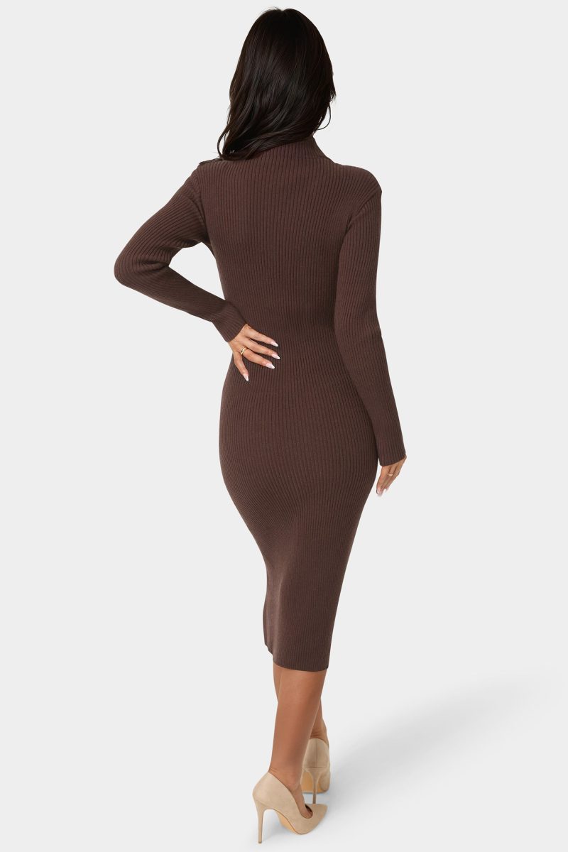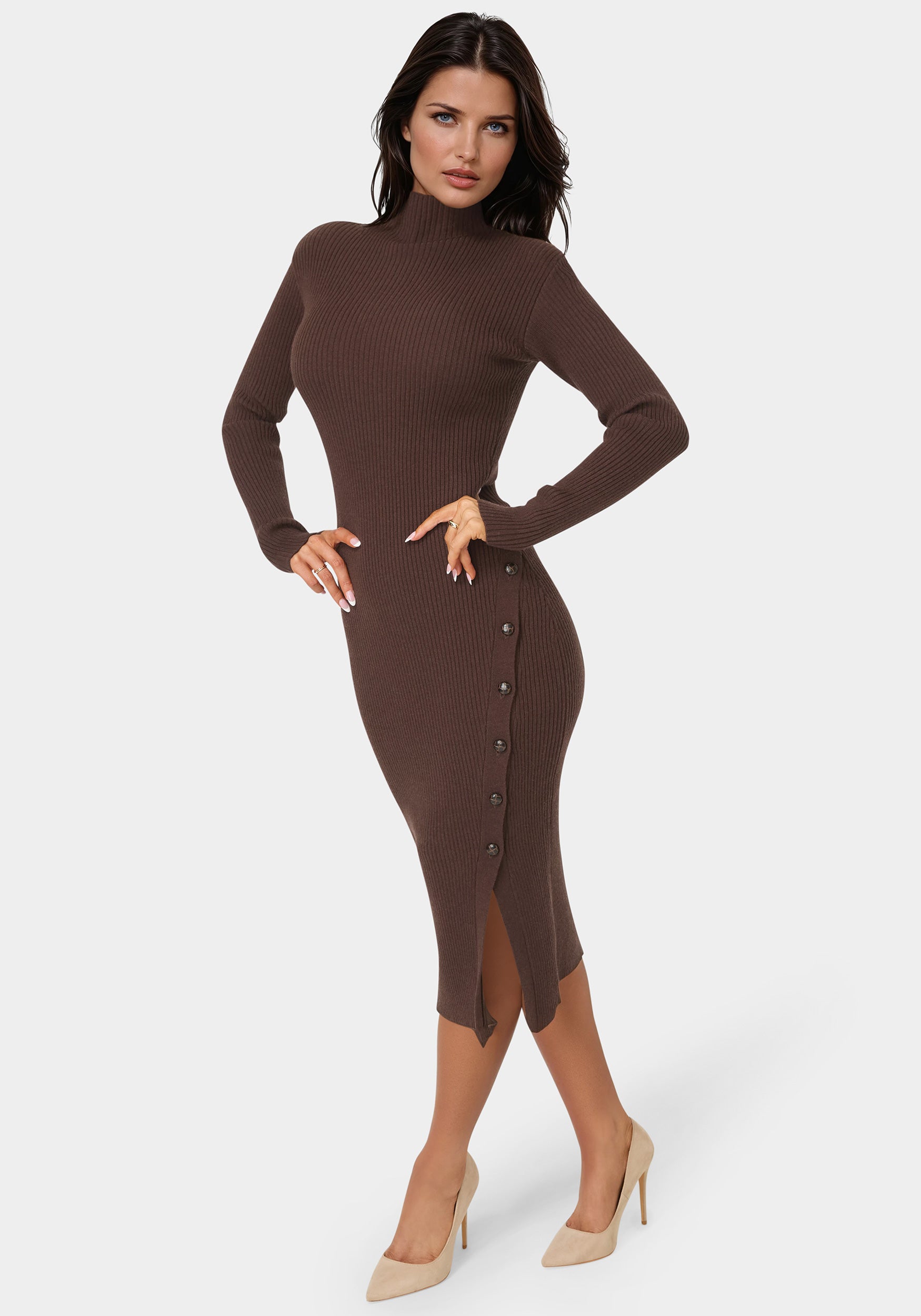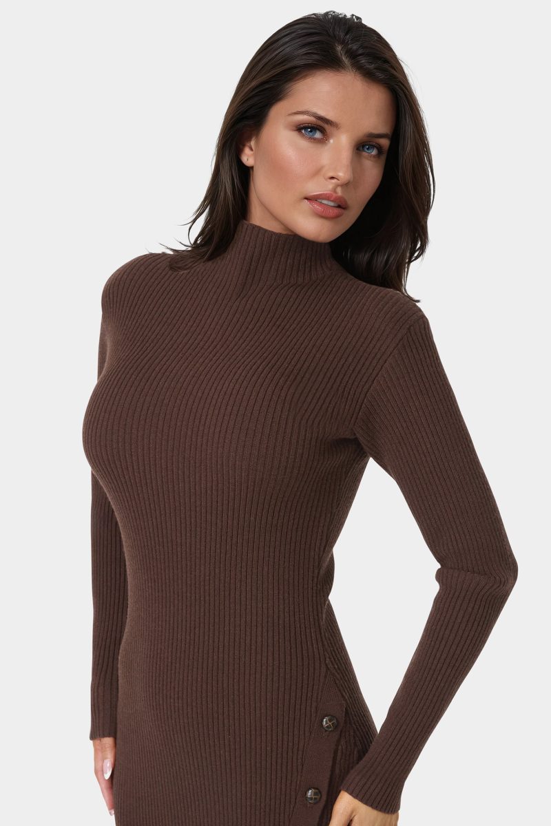 This long-sleeve mock neck sweater midi offers refined warmth; ideal for cool-weather outings or daytime occasions.