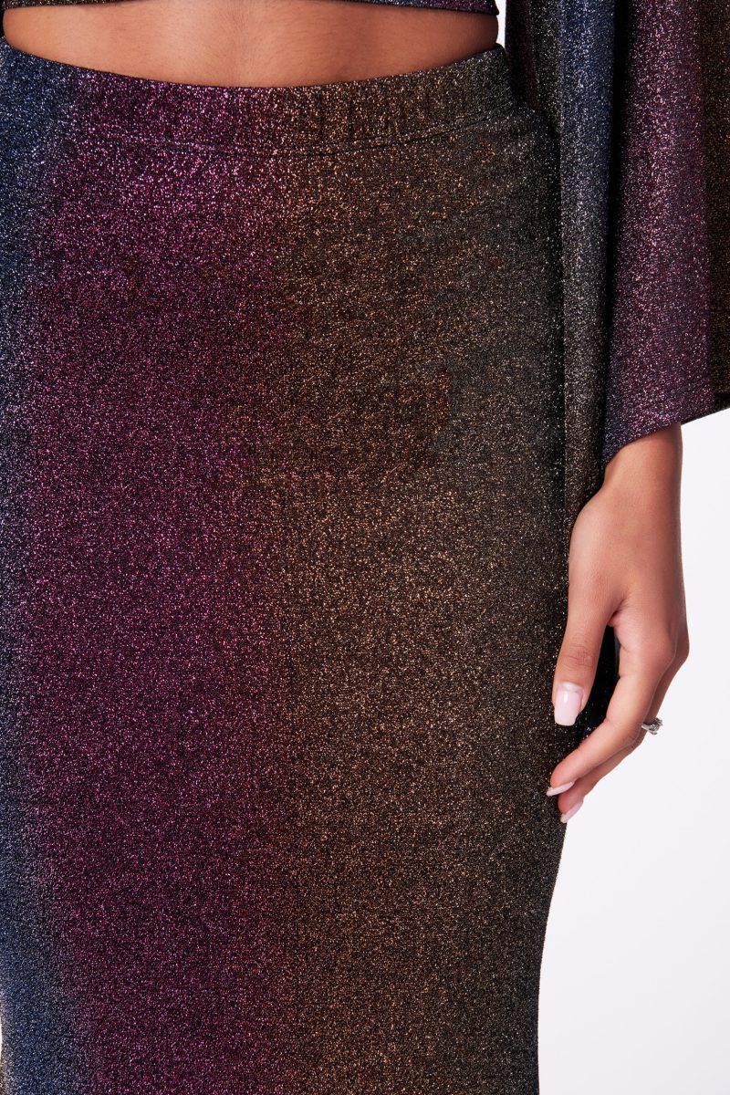 Infuse your wardrobe with a touch of whimsy with this mermaid ombre knit skirt. The captivating ombre finish mimics the enchanting hues of a mermaid’s tail. adding a magical touch to any outfit. The figure-flattering knit material gracefully follows your curves. then flares out at the hem to create a charming mermaid silhouette.