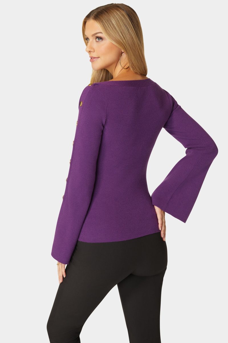 Off Shoulder Bateau Snapped Slit Sweater