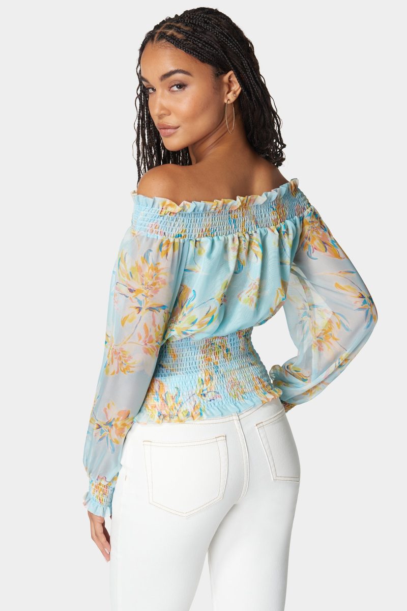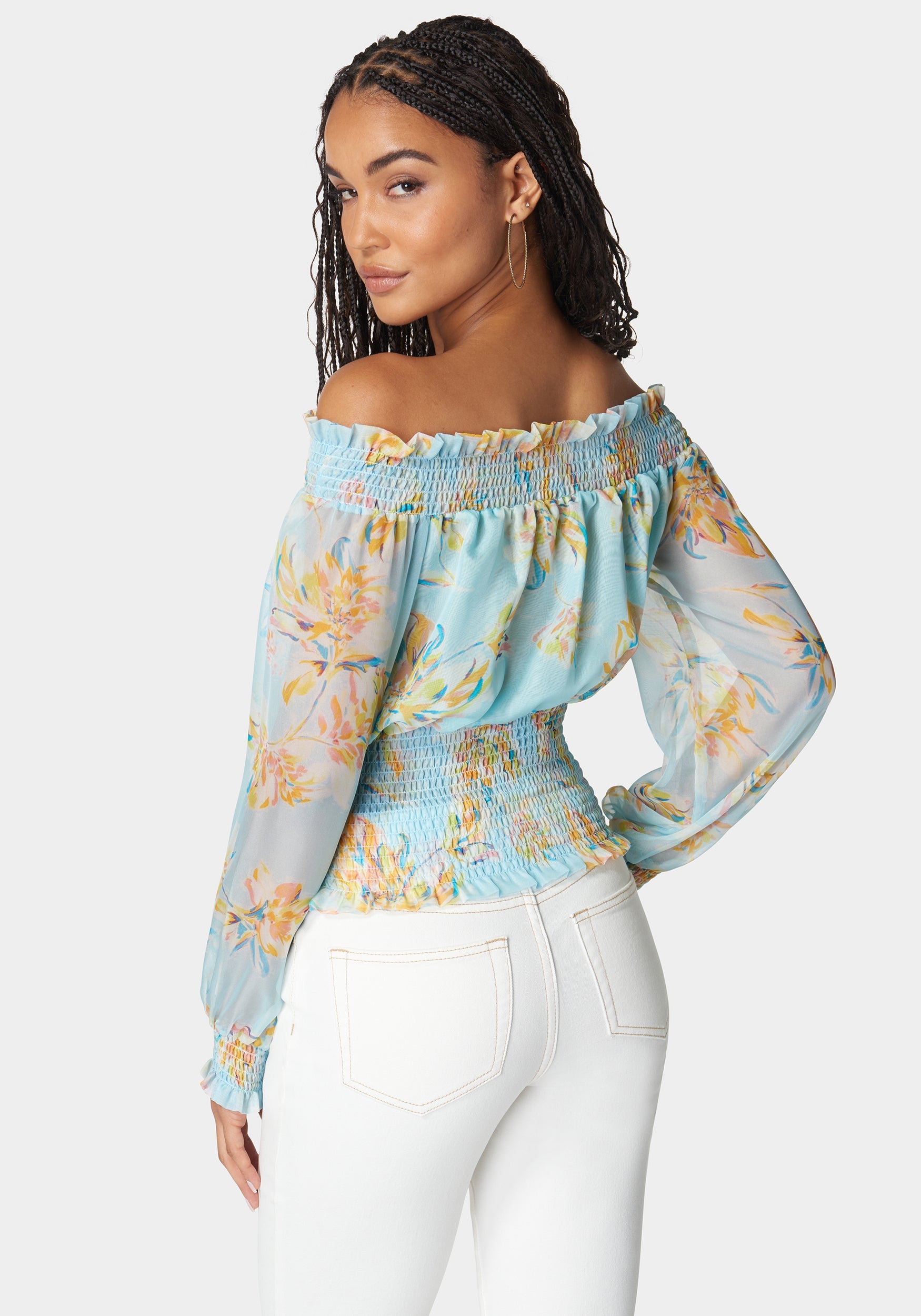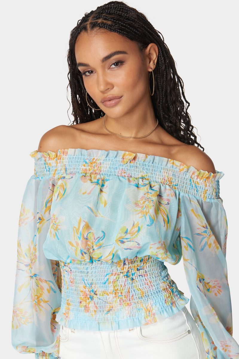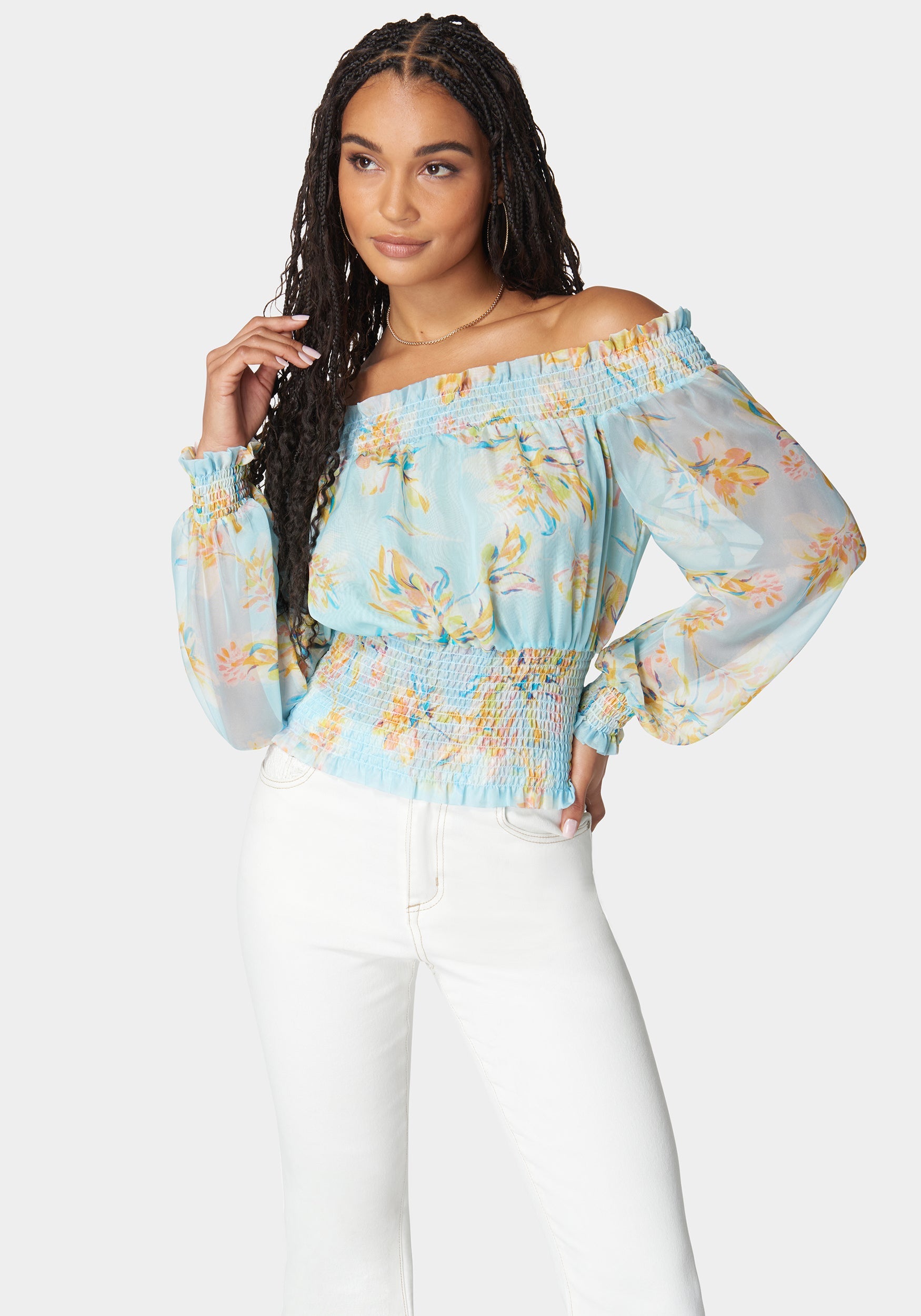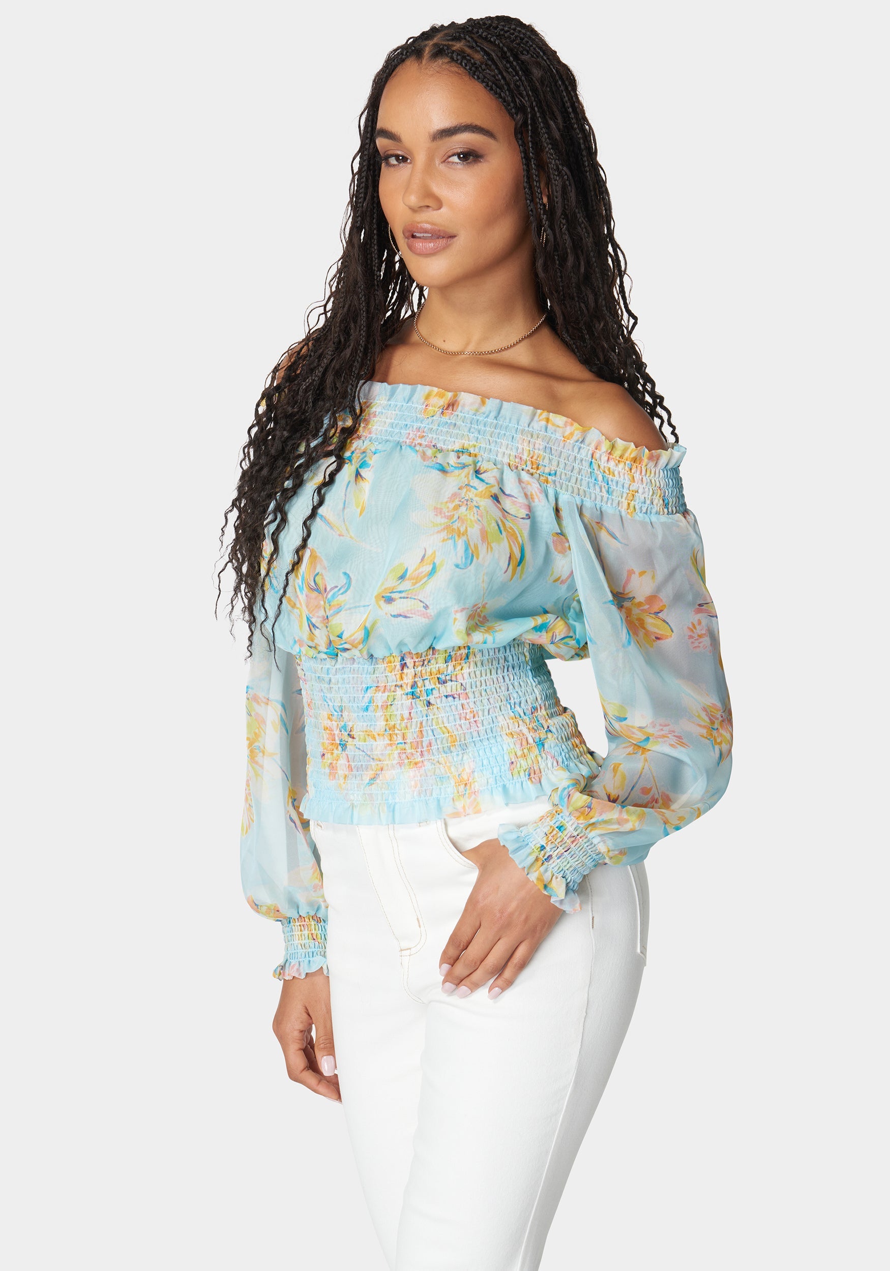This airy piece features a smocked bodice that flatters every figure. coupled with an off-shoulder design that whispers of elegance.