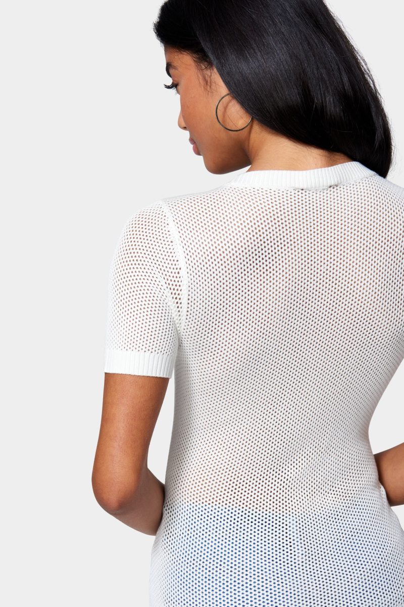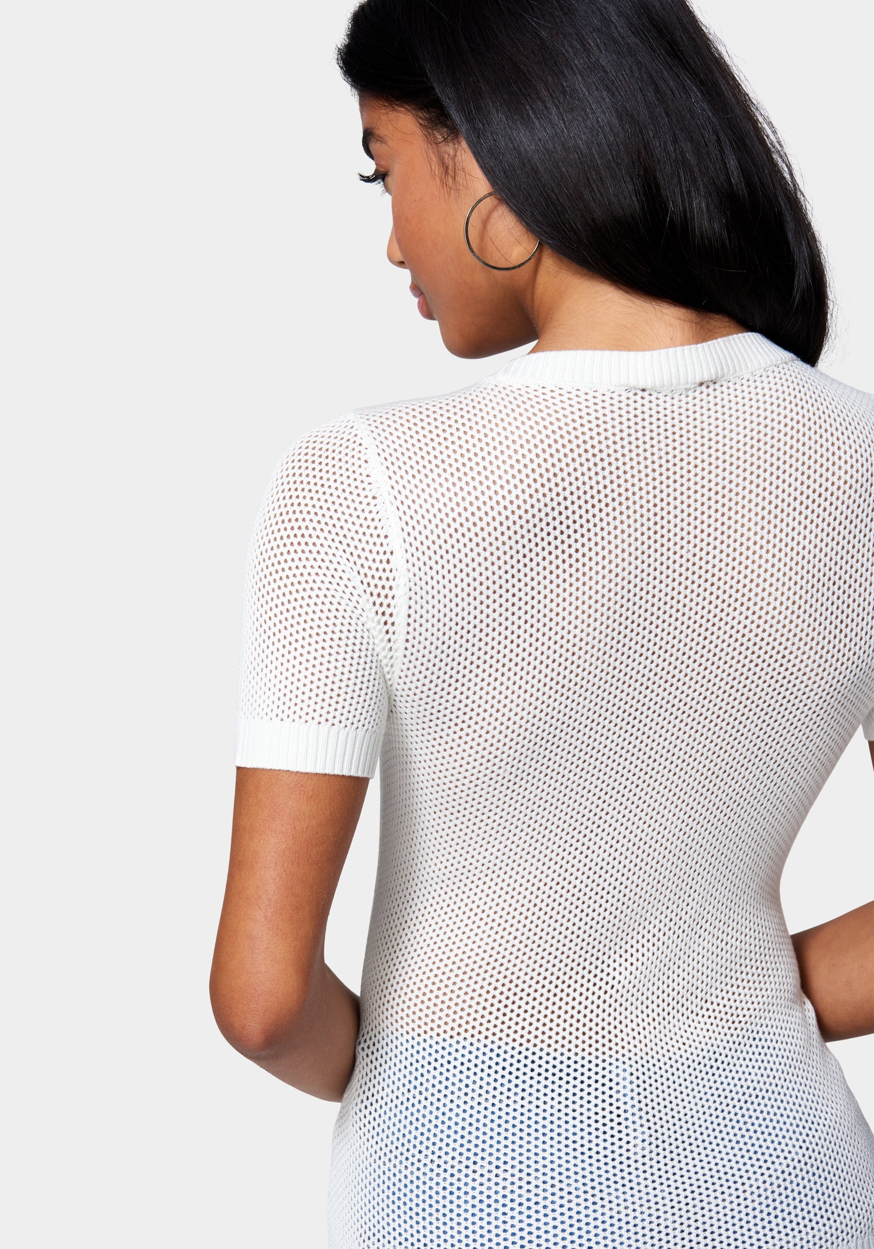 Soft and sensual. this breezy open-knit sweater features short sleeves. a scoop neckline. and a body-hugging fit for the perfect warm-weather layer.