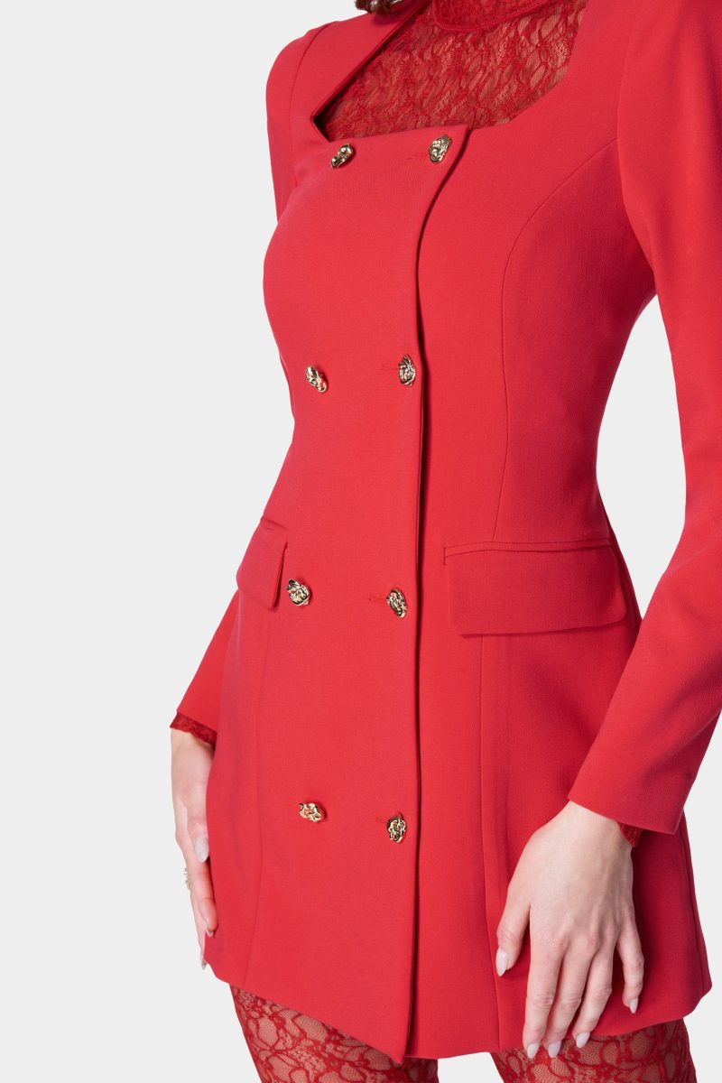 Make a bold statement with our Open Neck Tailored Blazer in Salsa. The exposed neckline adds a sultry touch to the classic tailored silhouette. making it perfect for any evening occasion.