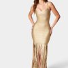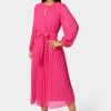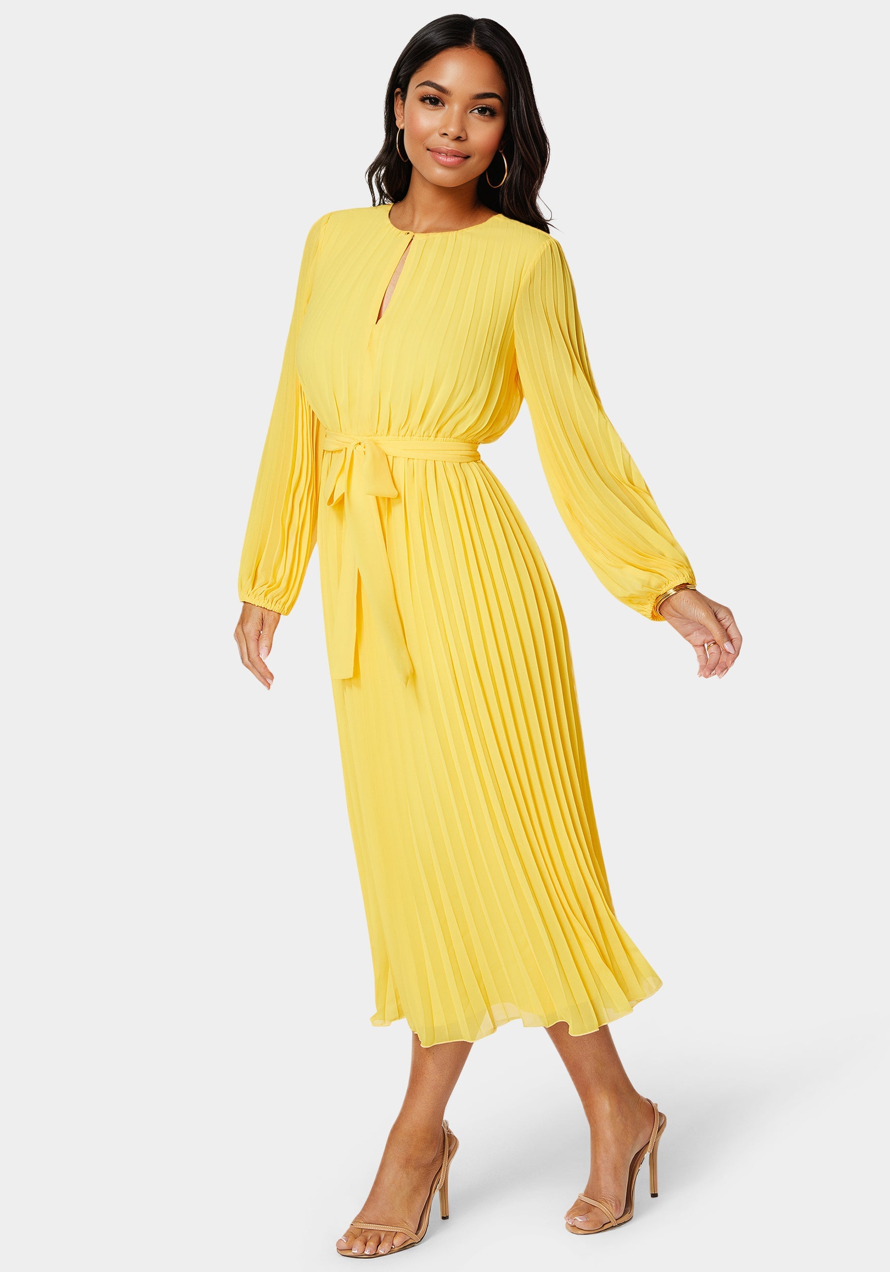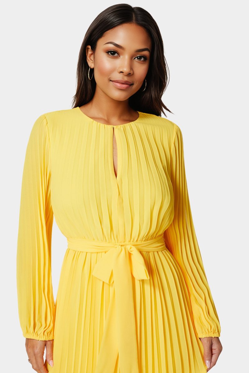 Own the room in this pleated gown with long sleeves and a self-tie belt. A keyhole neckline adds subtle intensity to its timeless. formal edge.