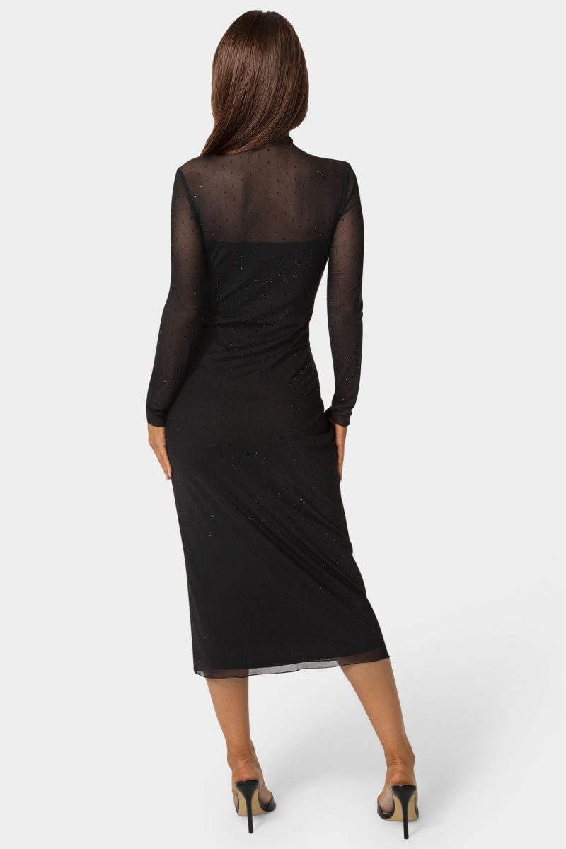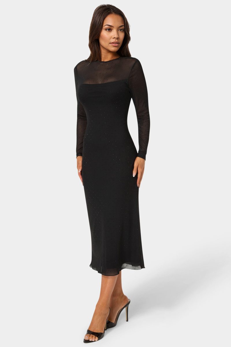 Rhinestone Mesh Long Sleeve Maxi Dress