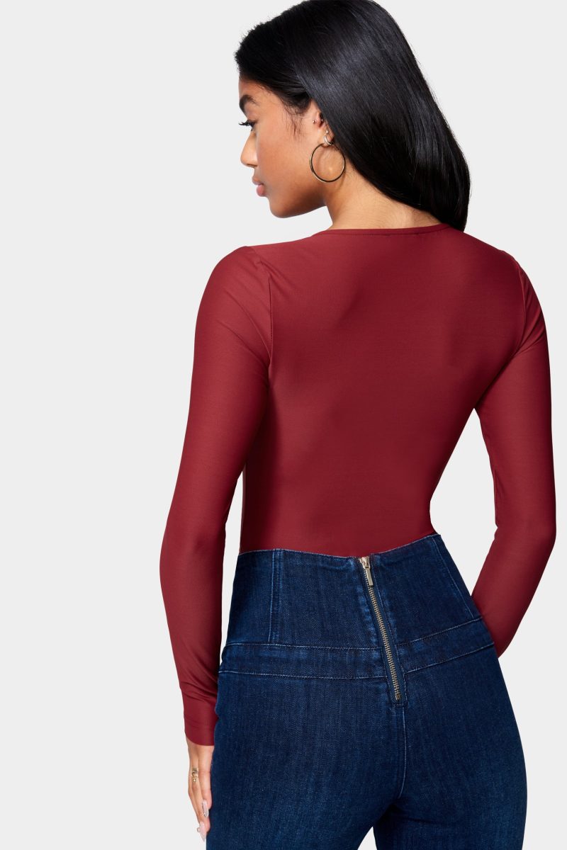 In a sleek pull-on style. this bodysuit features an edgy ring cutout detail. V-neck. and long sleeves for a casual yet polished look.