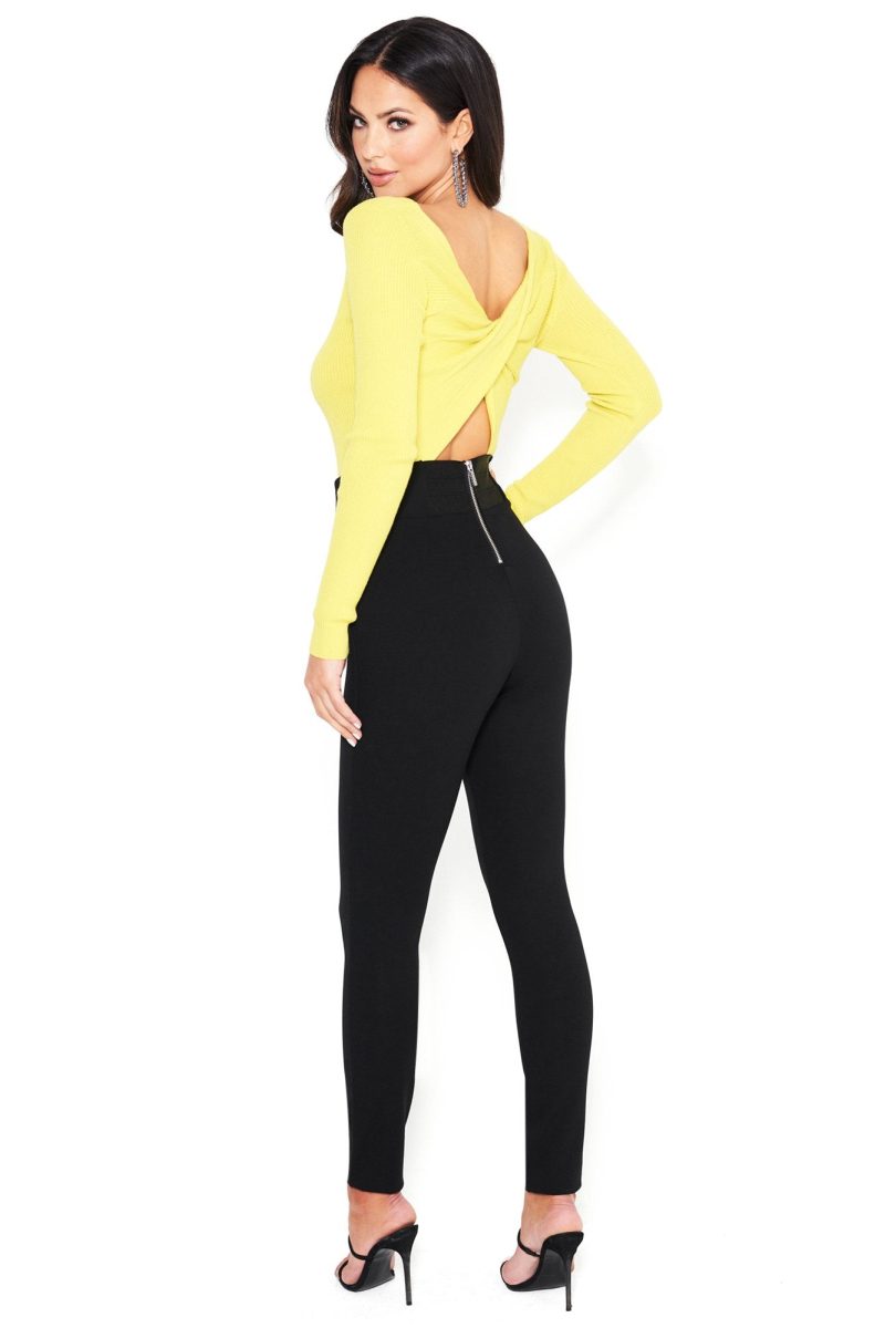 These leggings look fancy in a satiny jersey. and the high-waisted design makes legs look miles long. Exposed back zip.