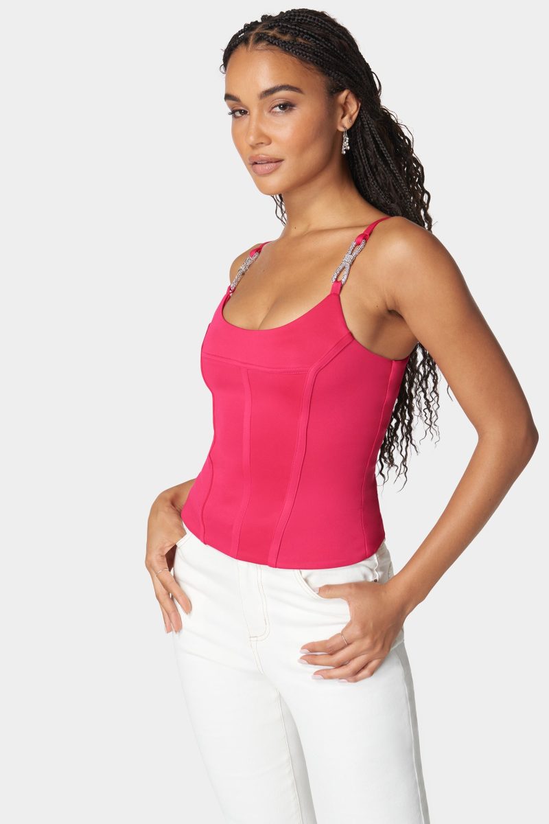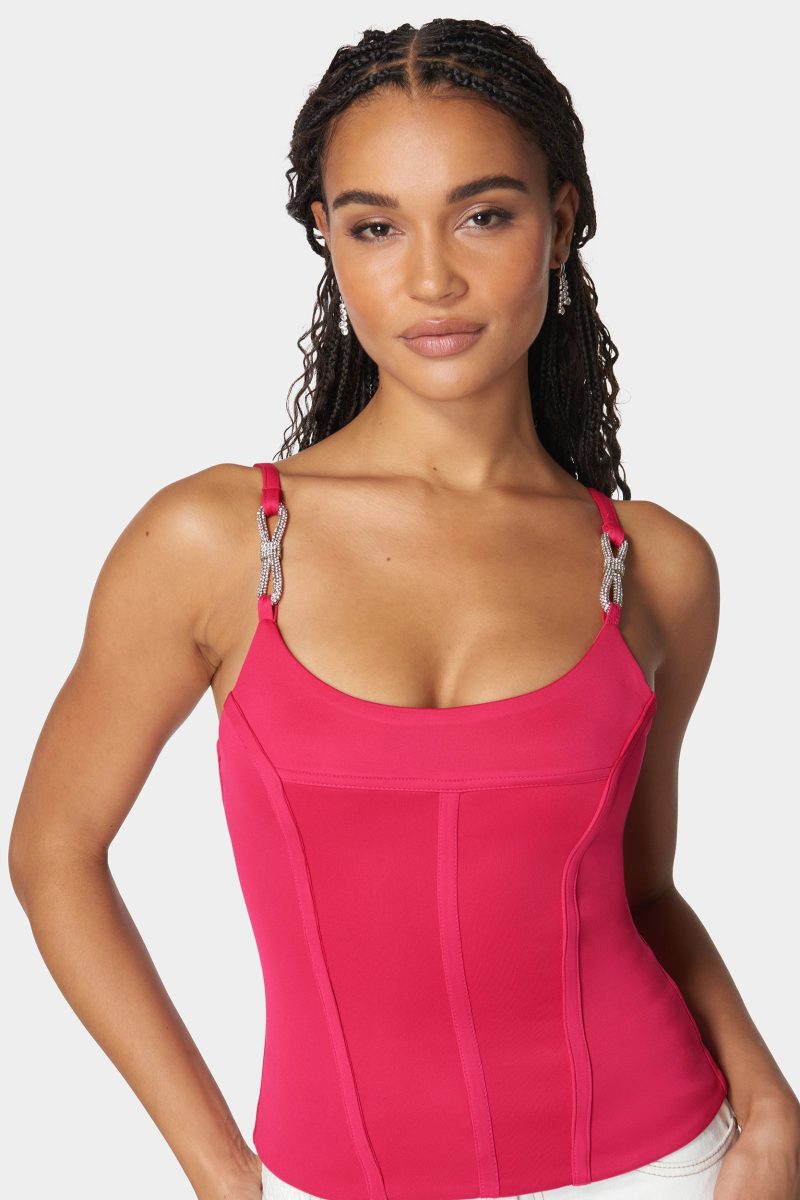 Scoop Neck Jewel Strap Bustier Knit Top