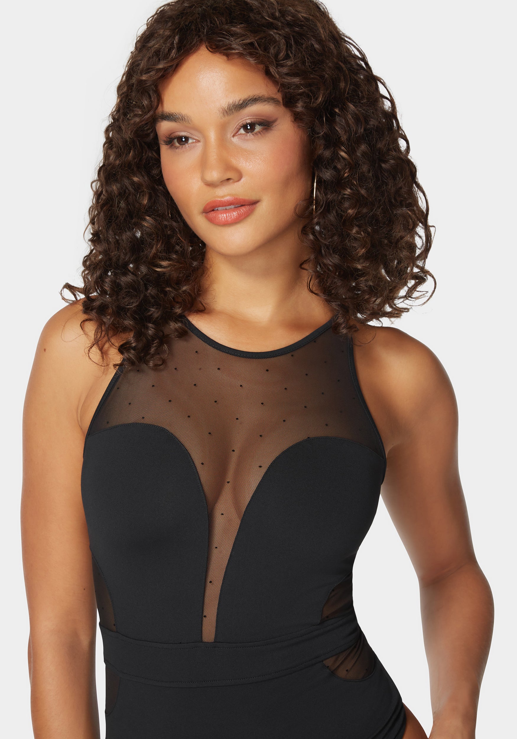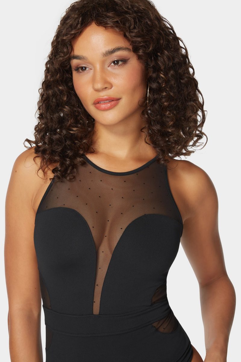 - 87% Nylon. 13% Spandex; Swiss Dot Combo: 90% Polyester. 10% Spandex