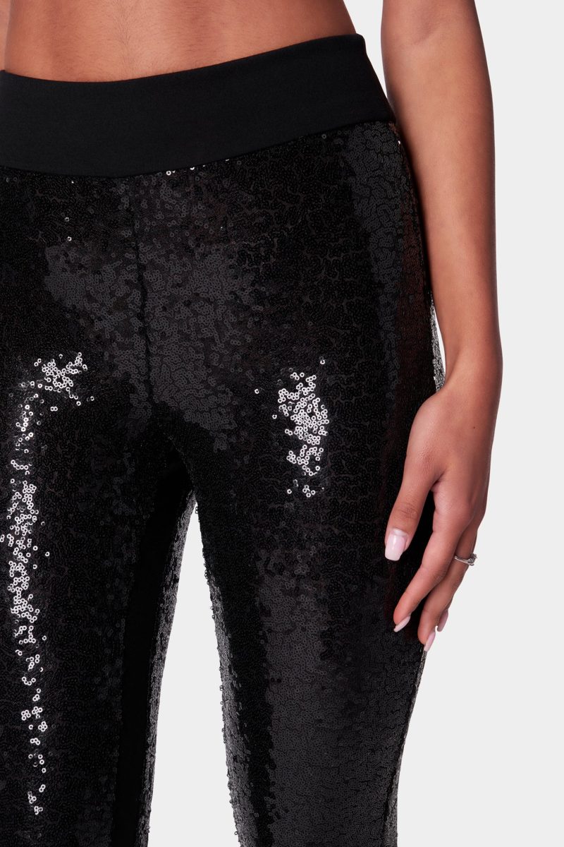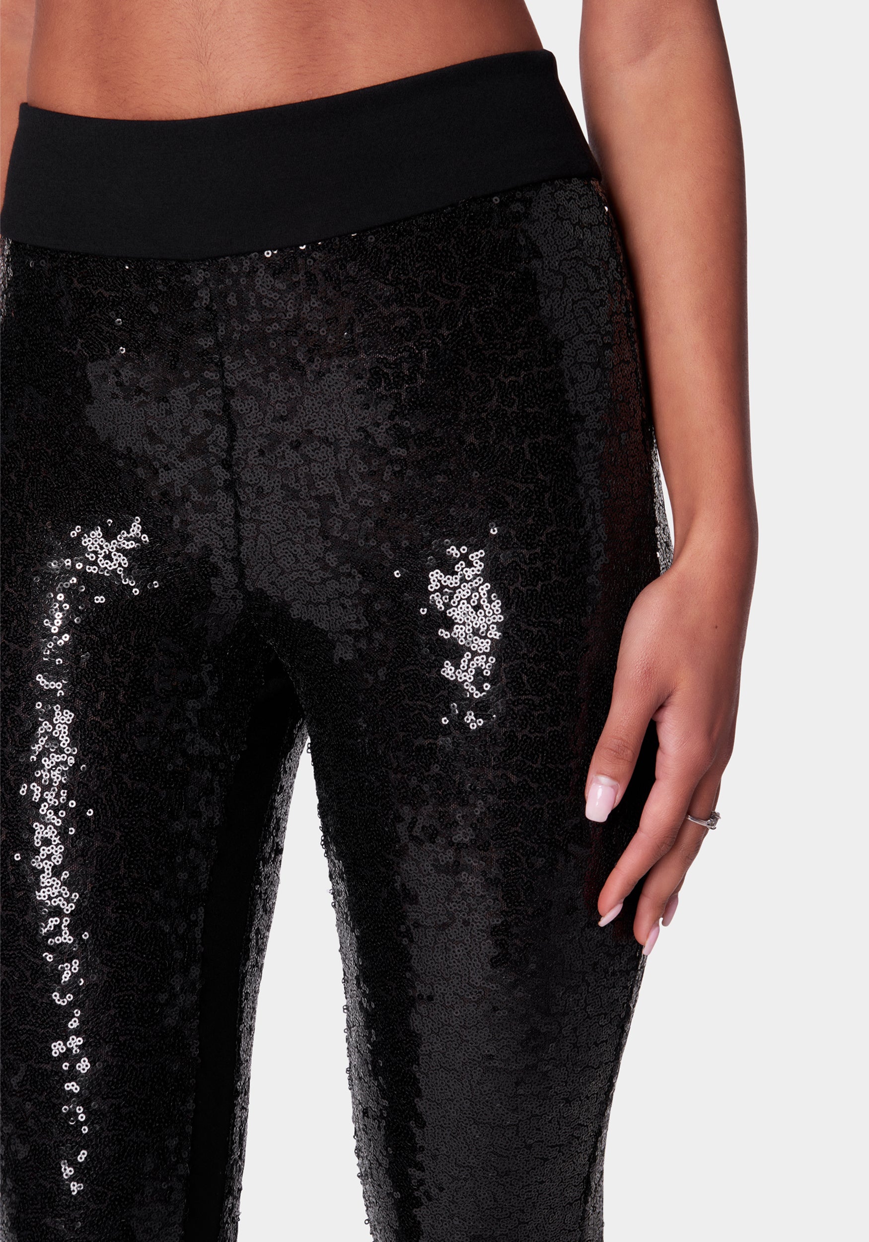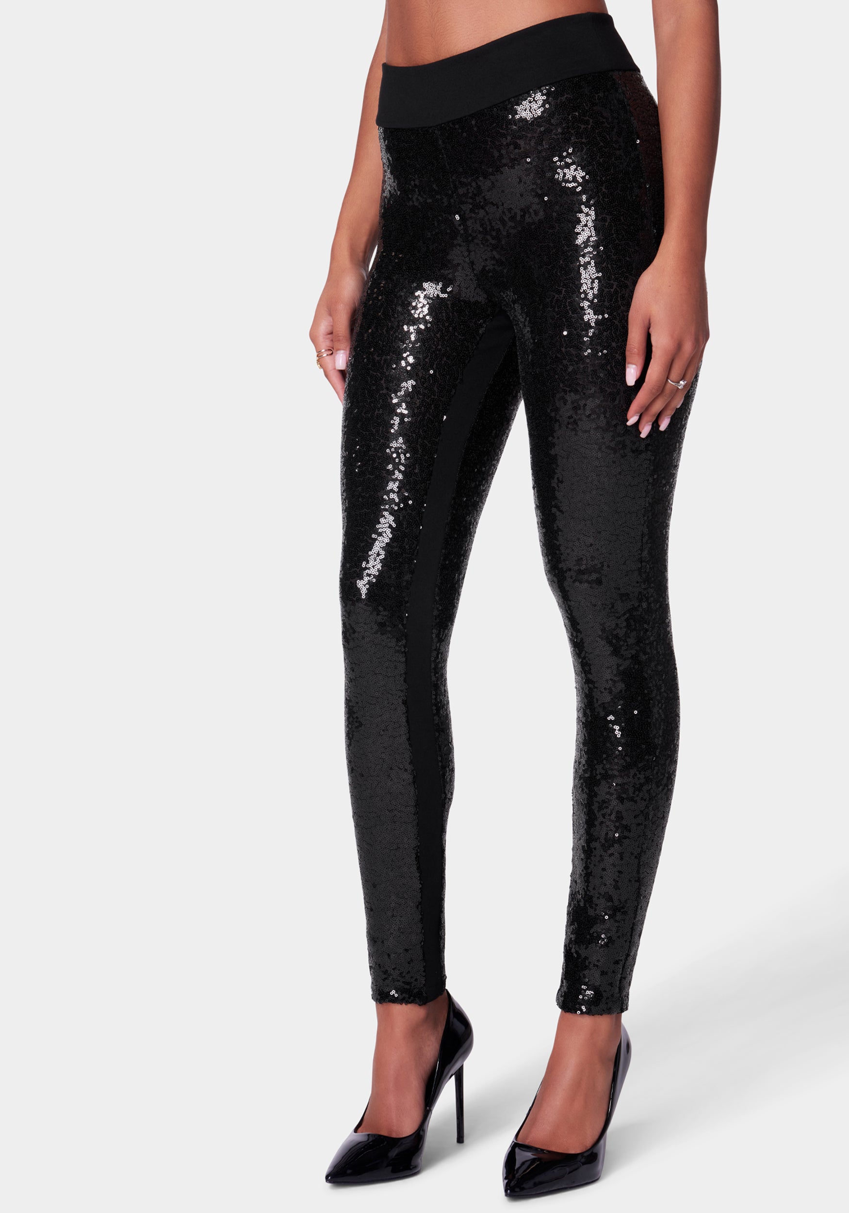 Stand out in the crowd with these sequin tuxedo stripe leggings. The glamour of sequins. combined with the subtle and sporty elegance of a tuxedo stripe. makes these leggings a must-have in your fashion arsenal. Perfect for pairing with your favorite oversized sweater for a chic daytime look. or dressing up with a sleek blazer for a night on the town.