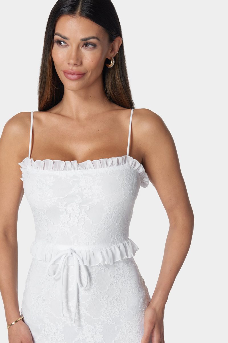 Add a darling touch to your wardrobe with our Smock Ruffle Maxi Dress. This captivating dress features a smocked bodice that accentuates your figure. while the ruffle detailing adds a touch of romance and allure.