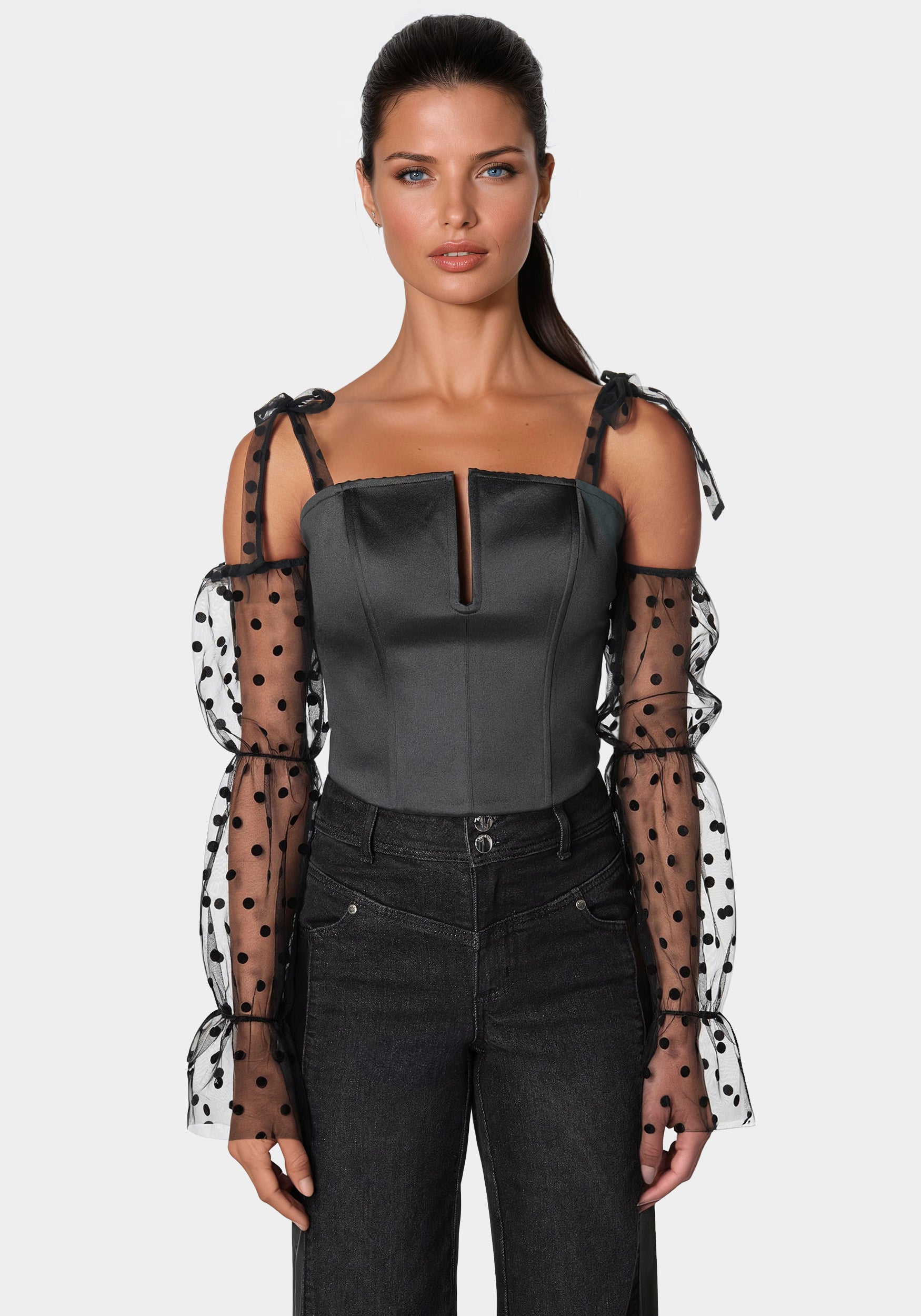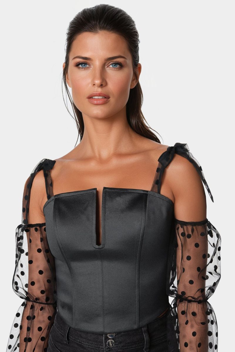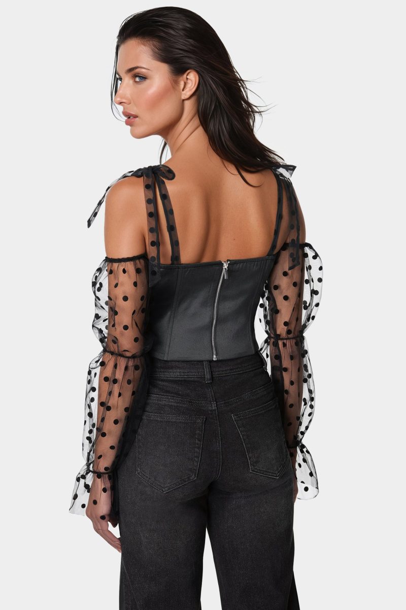 - Polka-Dot Sheer Sleeves Front Slit