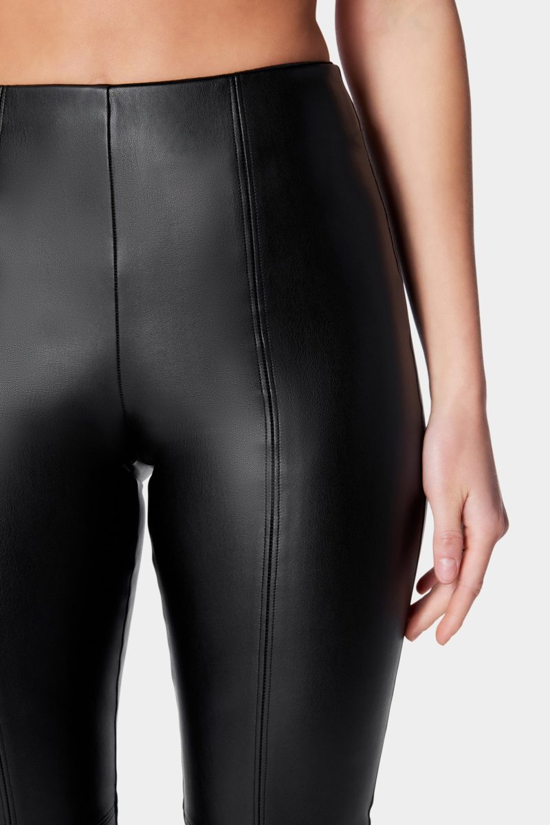Elevate your look with our vegan leather high waist slim leg pant. A perfect blend of luxury and comfort. these pants are crafted from high-quality vegan leather. offering a splash of sophistication to your wardrobe. The high waist cut paired with the slim leg design provides a flattering silhouette that fits seamlessly with any outfit. Ideal for those who value style and sustainability.