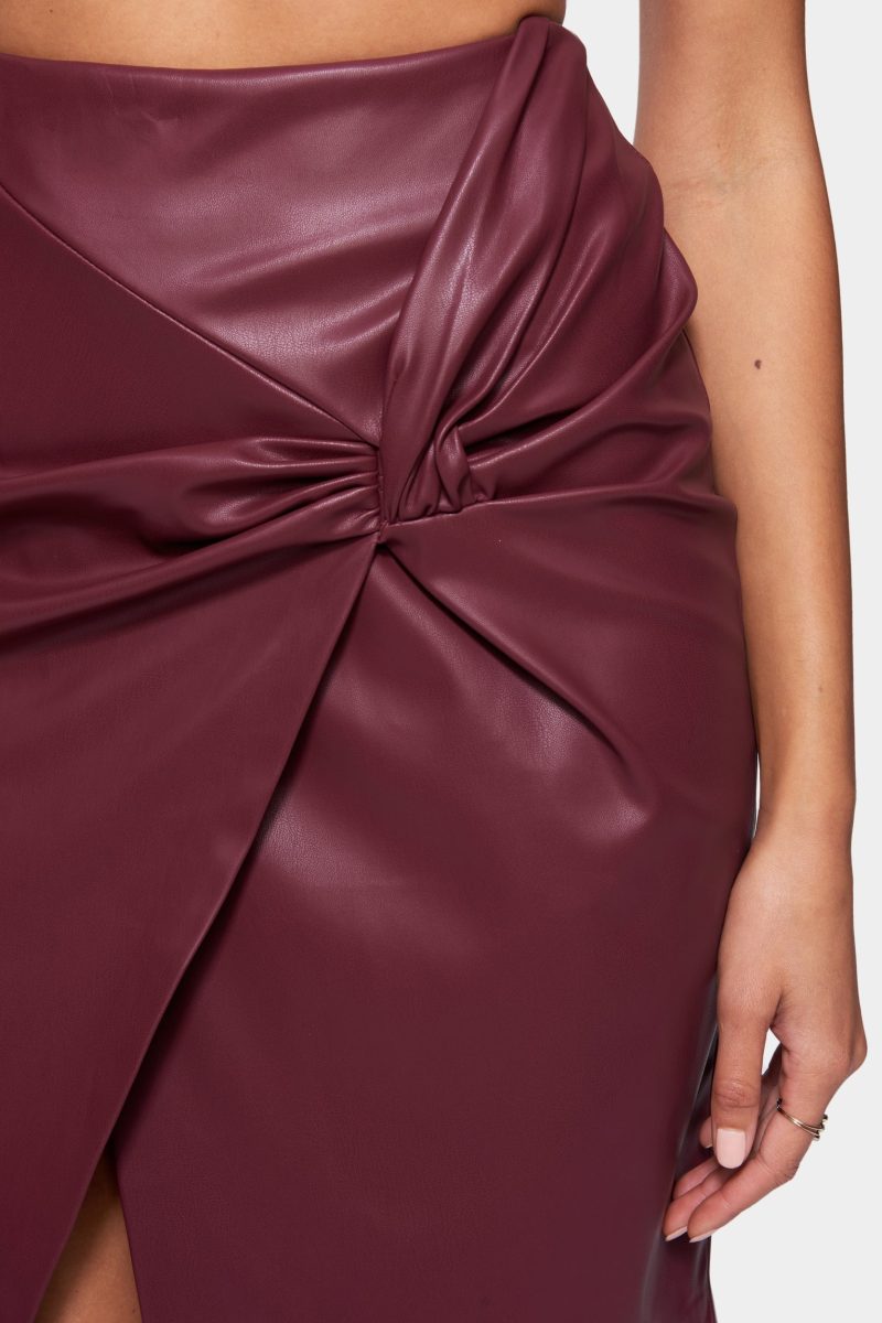 Vegan Leather Knot Front Skirt