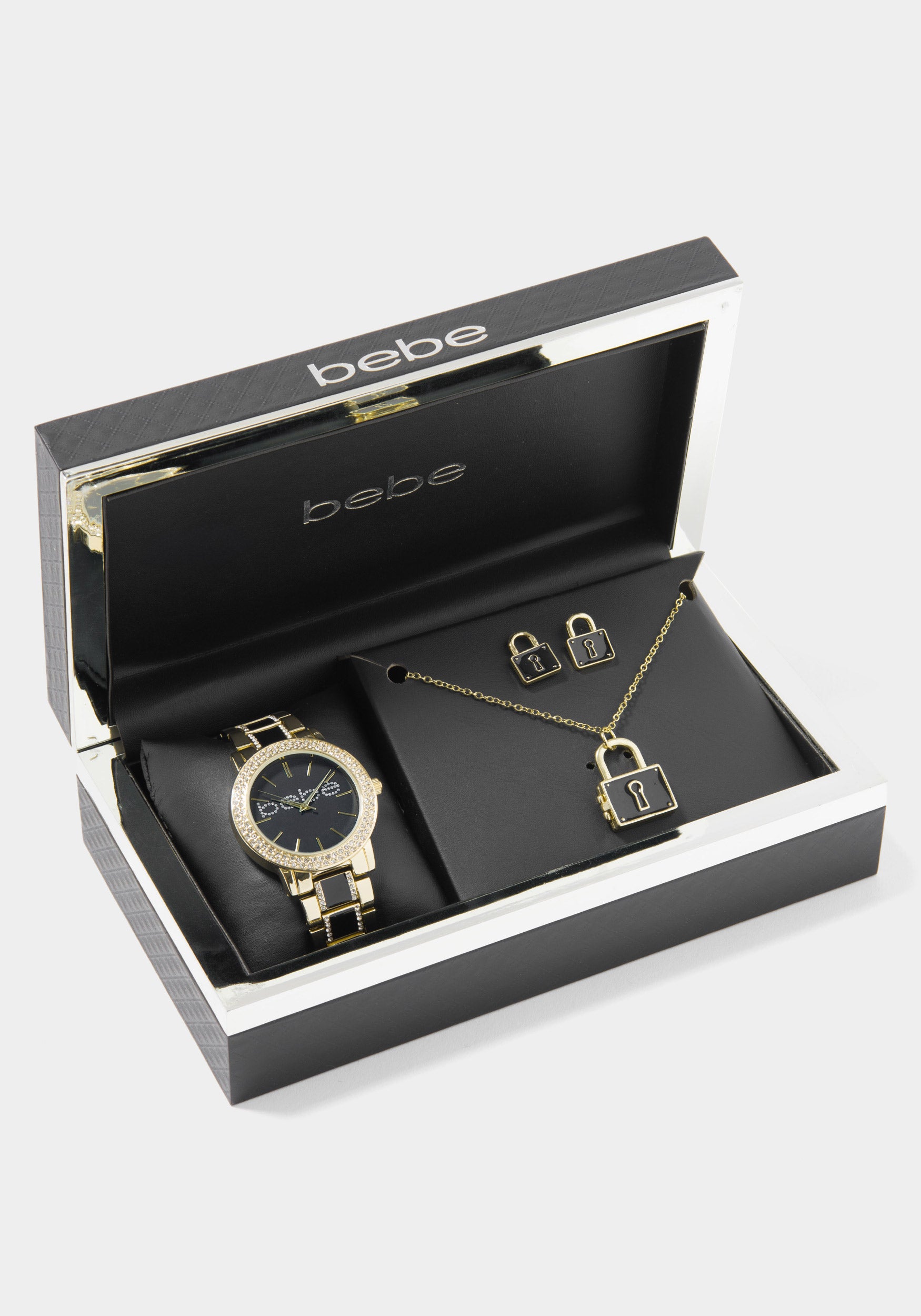 Elevate your look in one step: a sleek watch. locket. and earring set for instant. coordinated elegance.