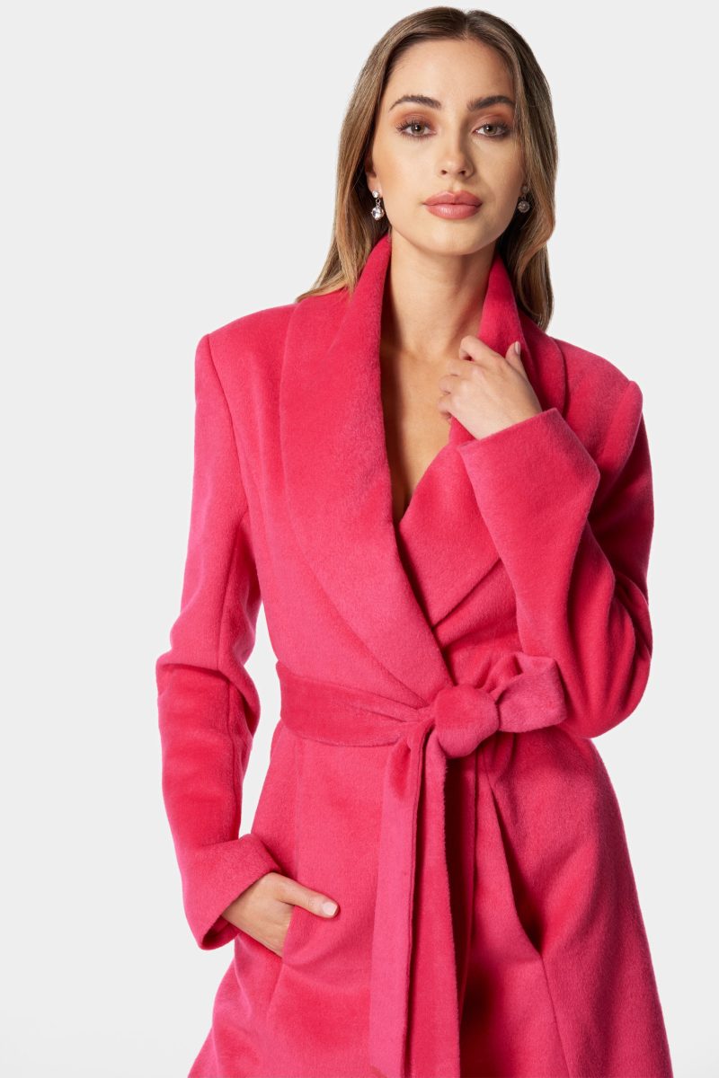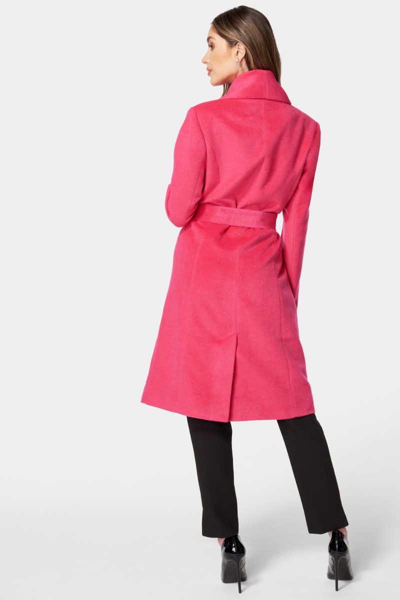 Wrap yourself in luxury with our Wool Blended Shawl Collar Wrap Coat in Raspberry Sorbet. The vibrant color and soft wool blend fabric exude a sultry elegance. while the shawl collar adds a touch of sophistication. Perfect for staying cozy and stylish during the colder months.