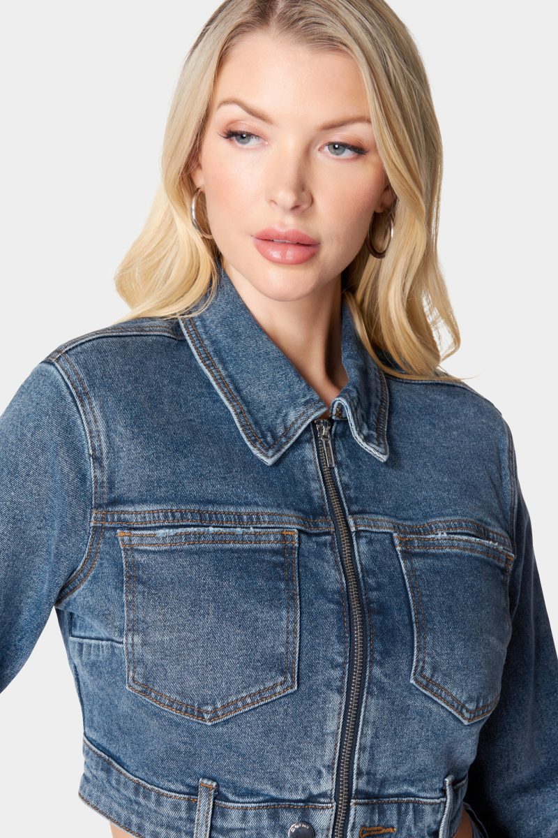 Step into casual chic with our zip front patch pocket denim jacket. This jacket features a practical zip front and patch pockets design. providing both style and convenience.